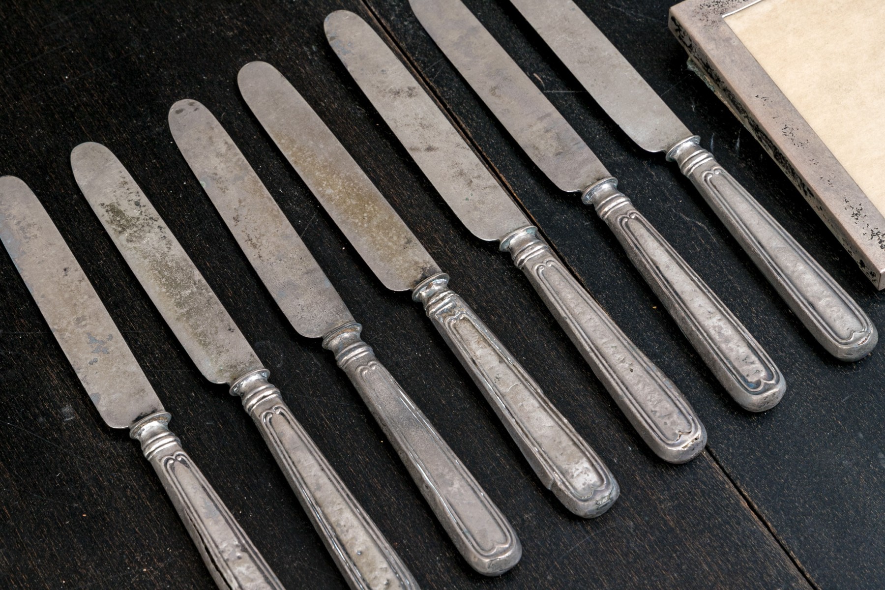 Condition: As is. All with heavy tarnish, some with loose handles, four of the dinner knives have blades that are broken in half and lost. See images as they are part of the condition report.