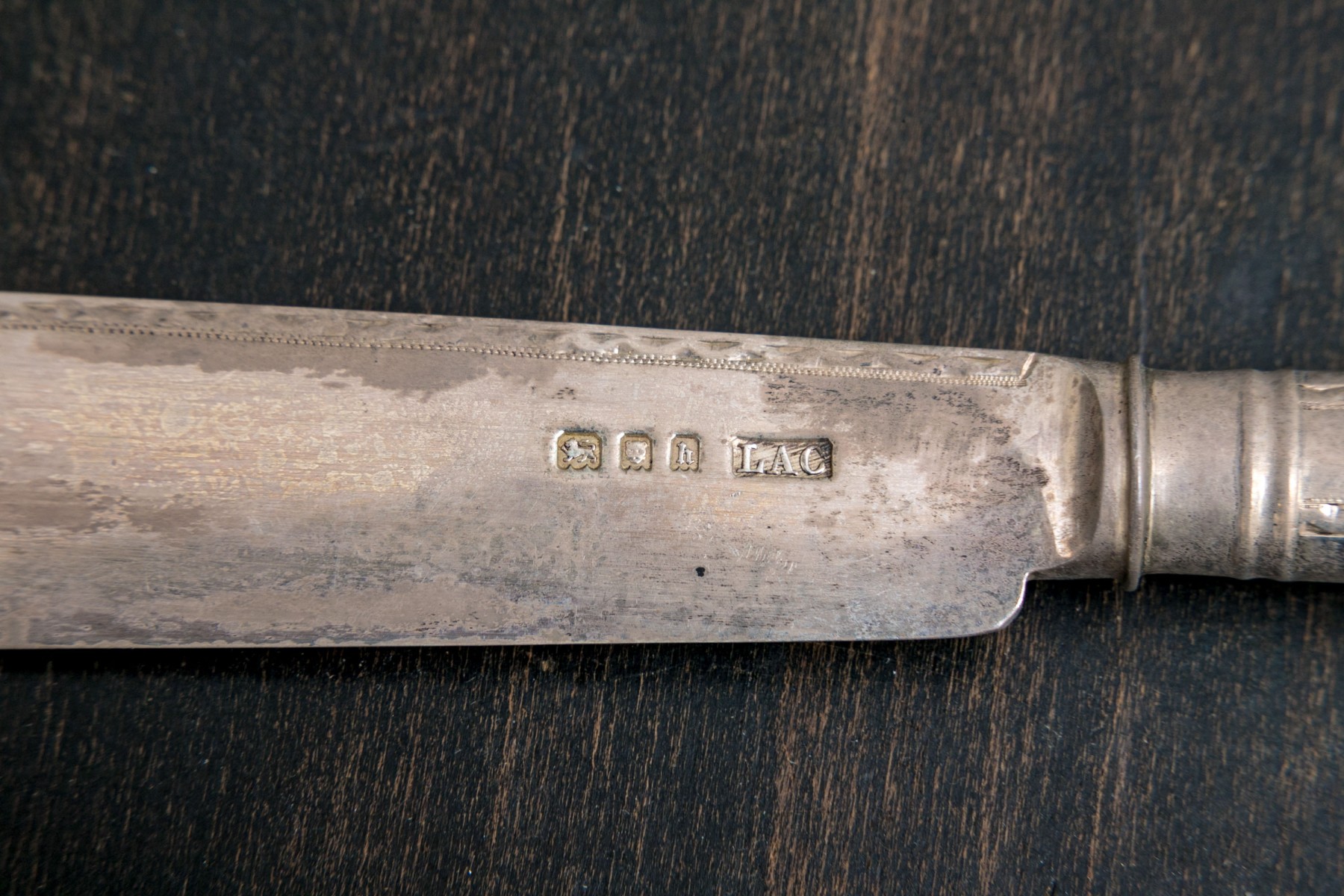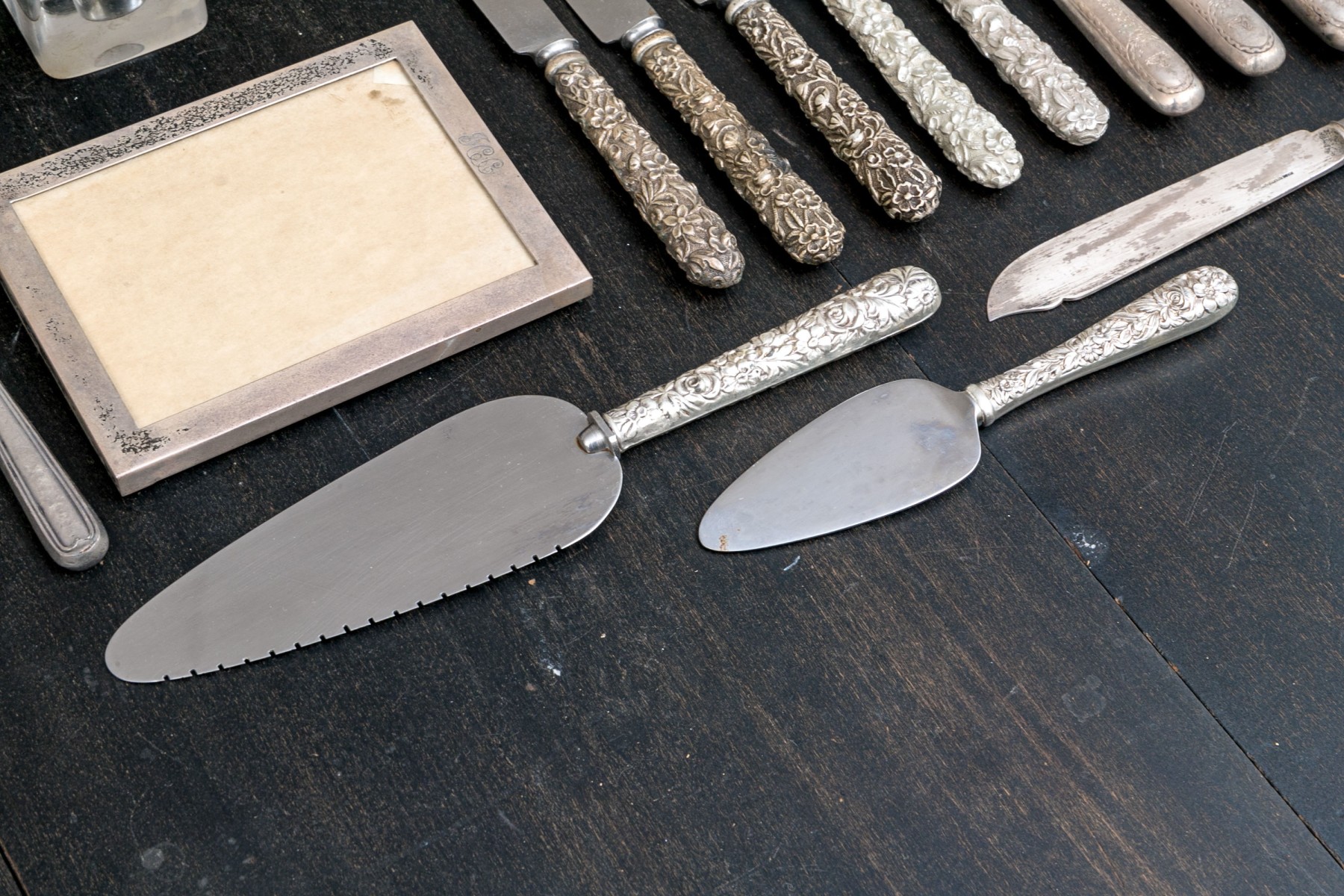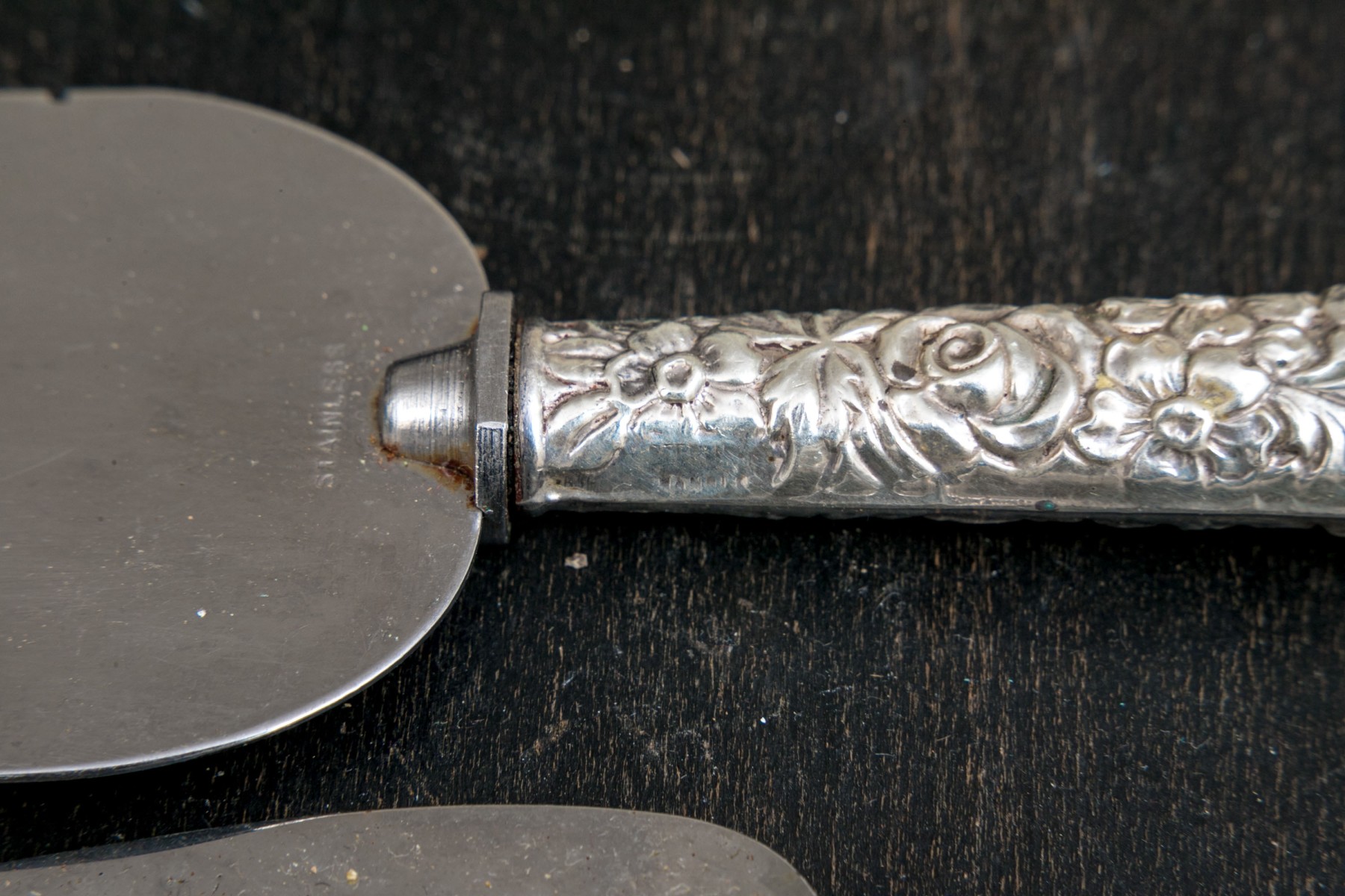 - 2 S Kirk & Son Sterling handle stainless blade slices, 9 3/4" L longest