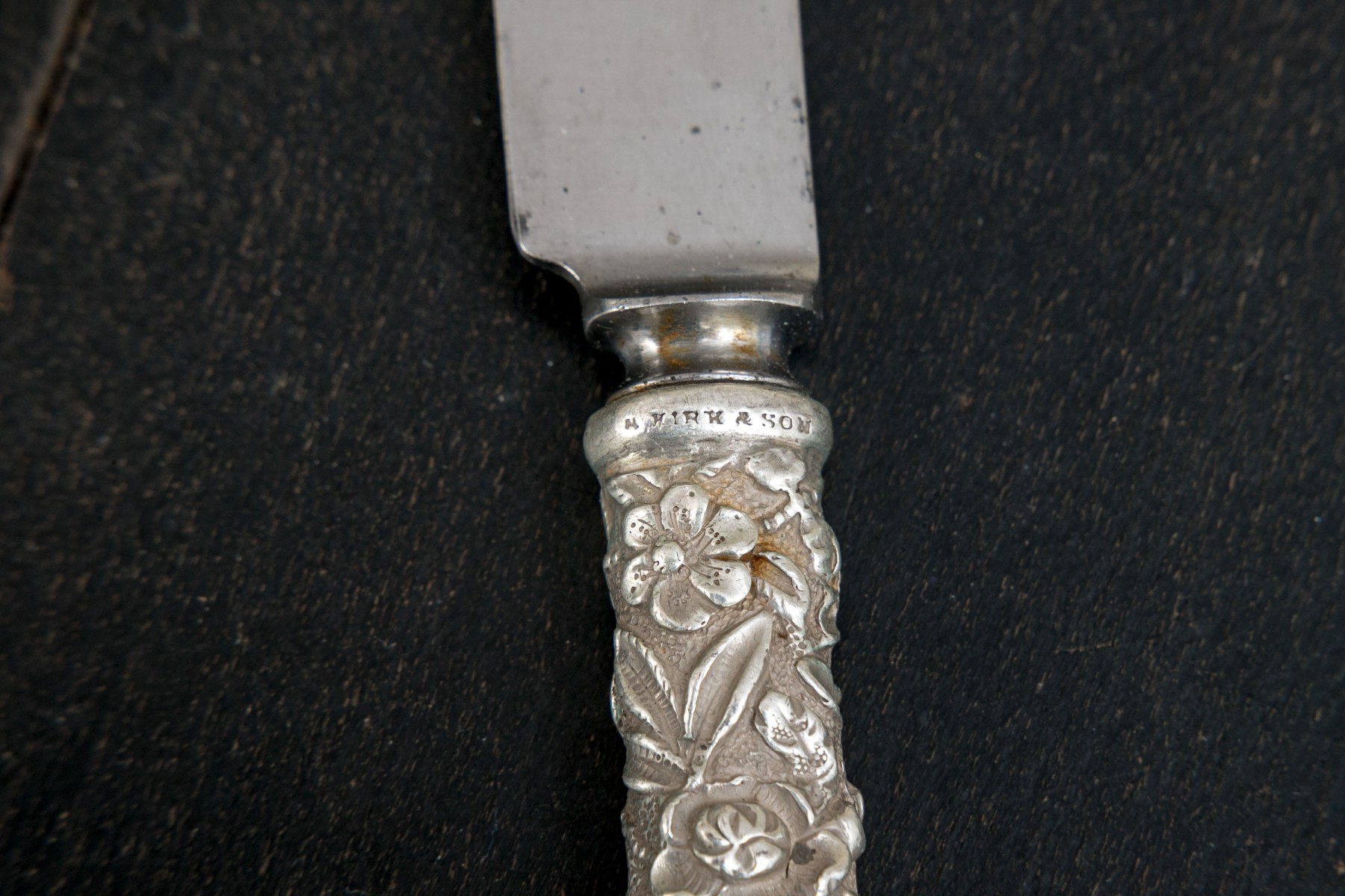 - 5 S Kirk & Son Sterling handle stainless blade knives, 8 3/4" L