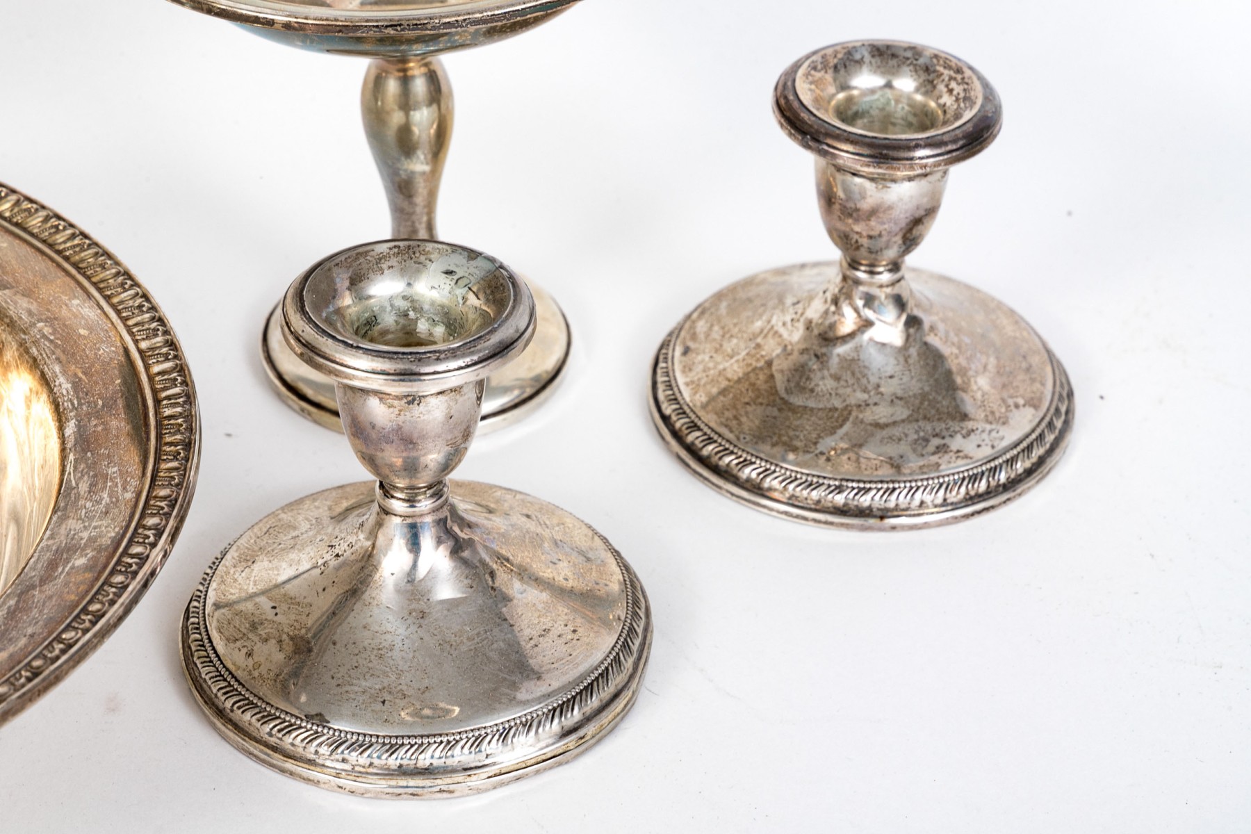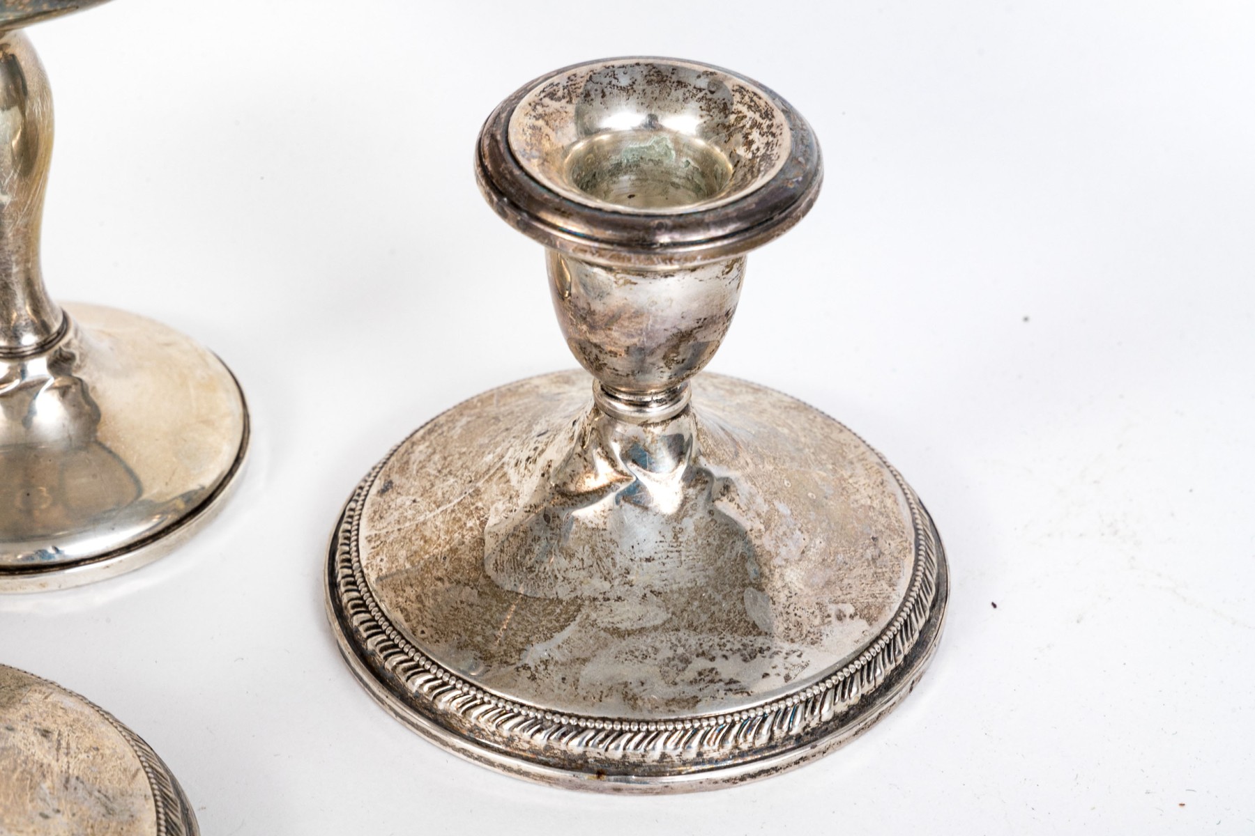 - A pair of Cartier Sterling Cement Filled weighted candlesticks, 4" H x 4" DIA