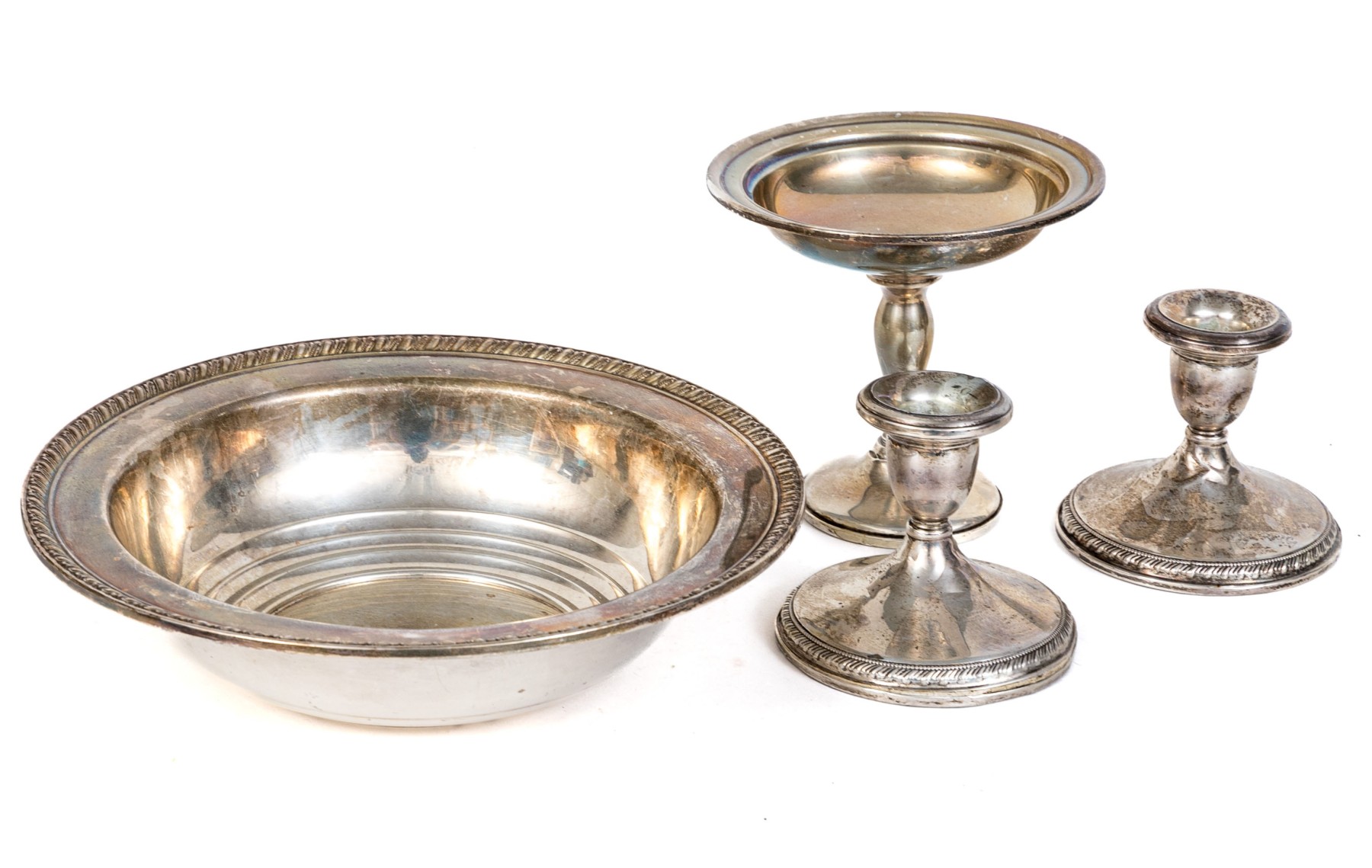 - Newport Sterling Cement Filled footed compote bowl, 5 x 5 1/2" DIA