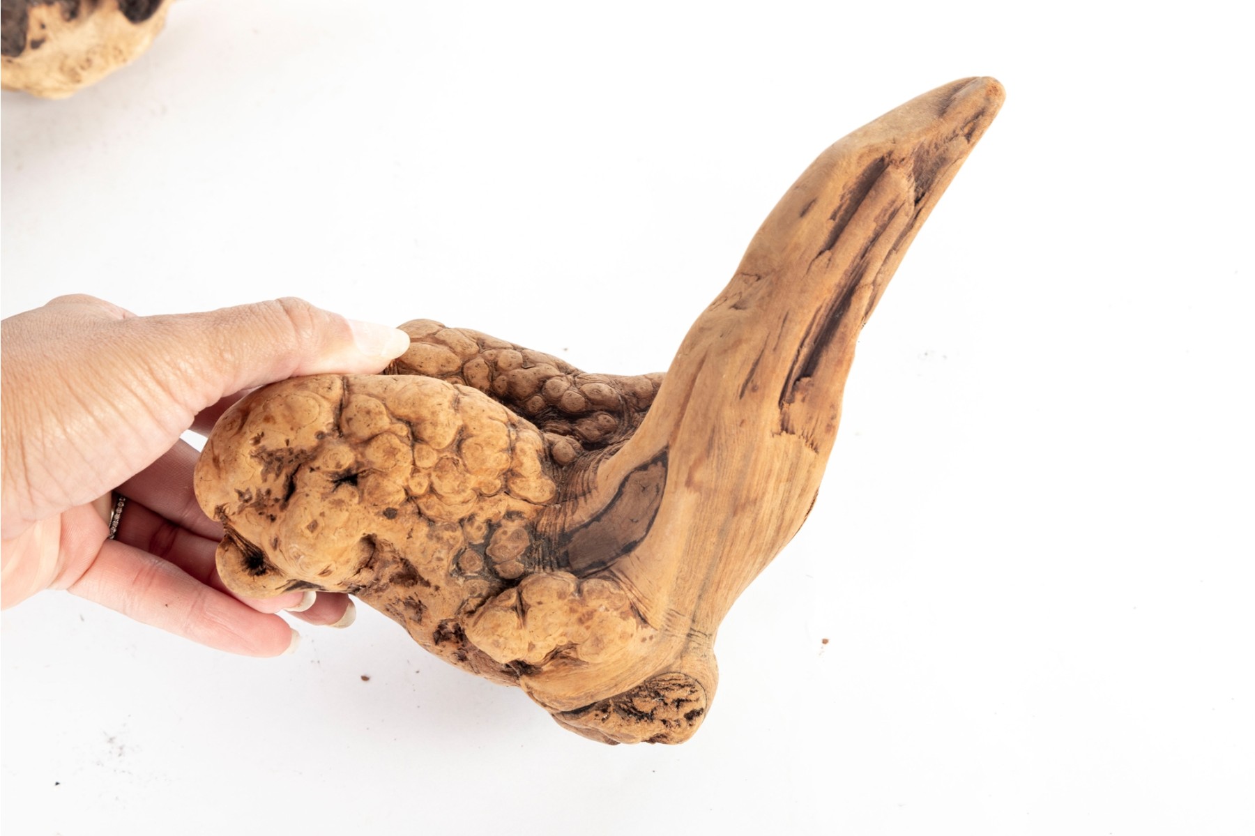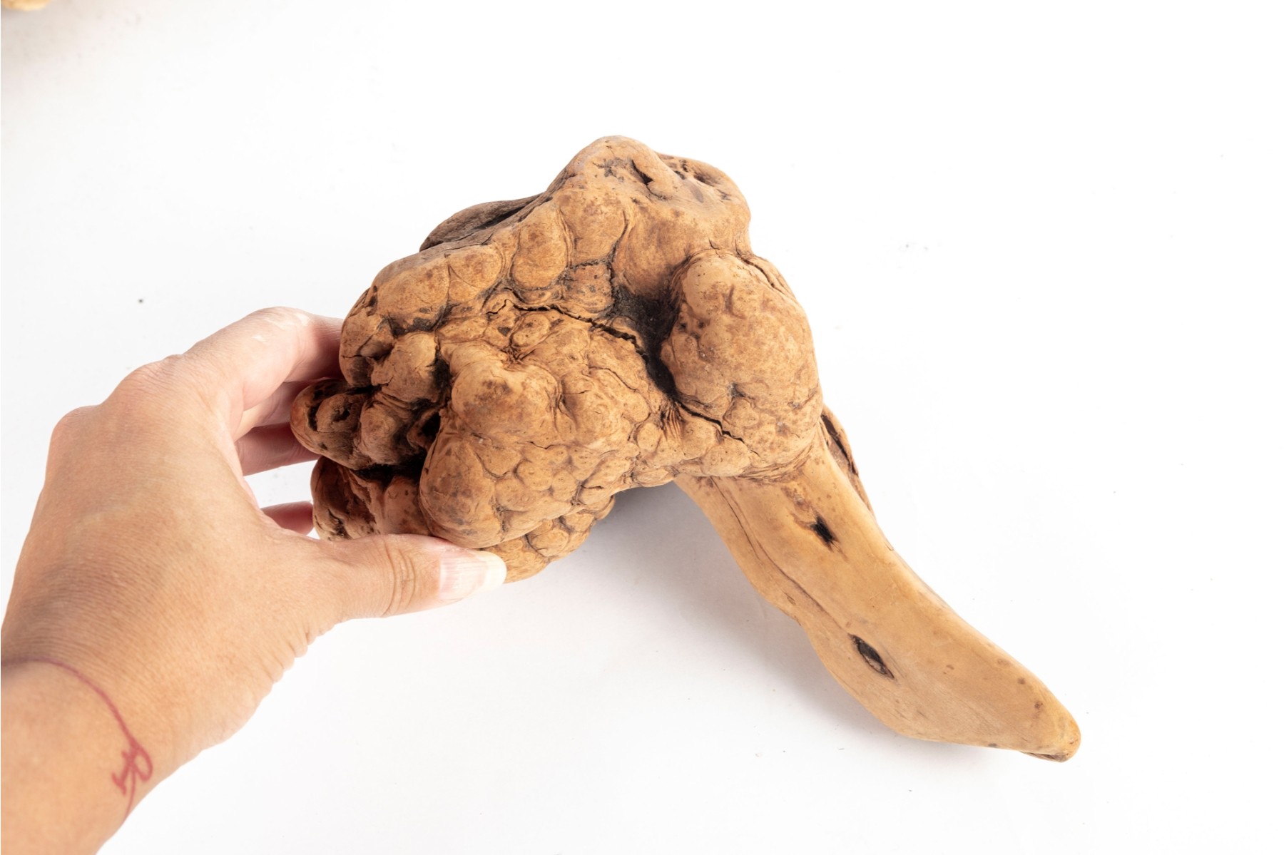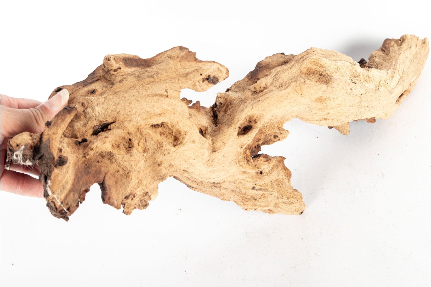 Group of natural driftwood burl wood pieces with unique organic forms and rich grain patterns. Each piece varies in shape and texture, showcasing natural knots, twists, and cavities.