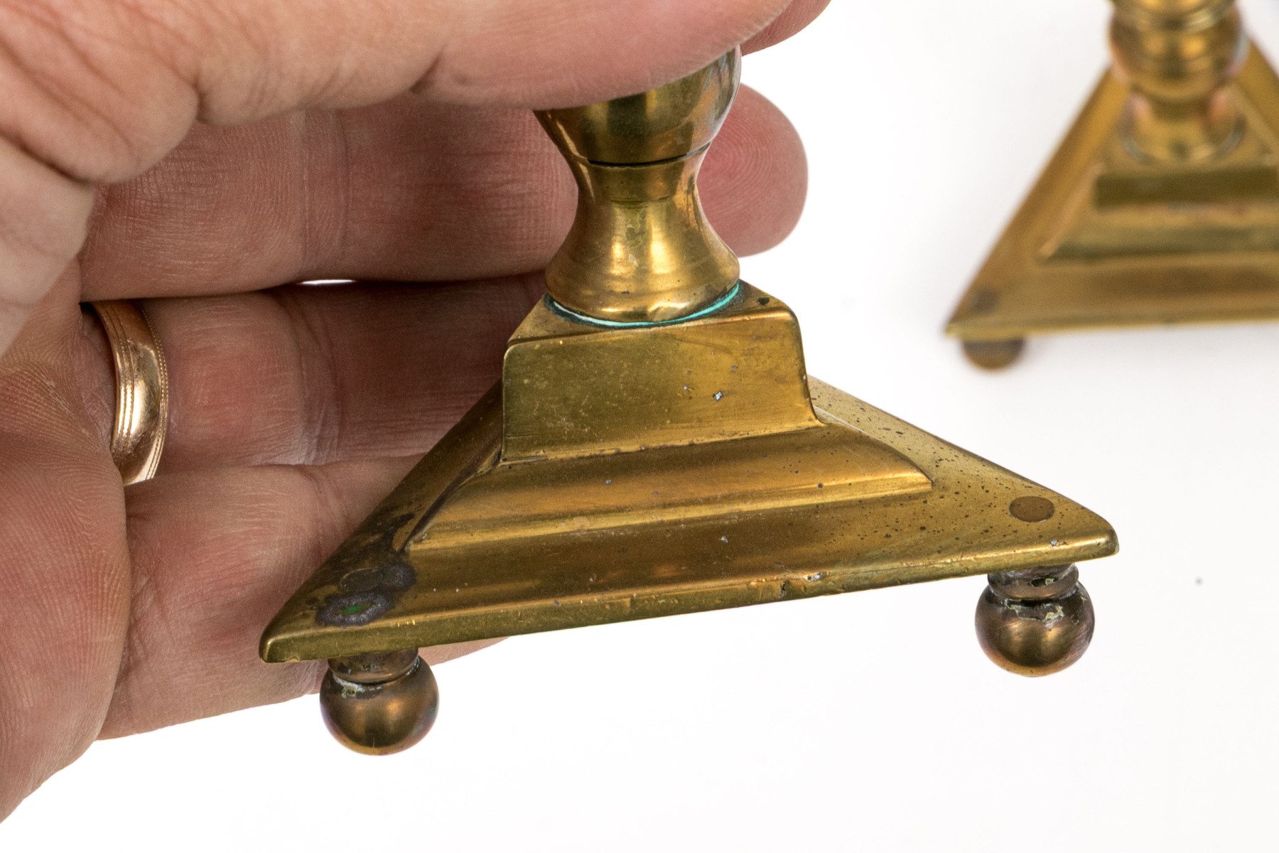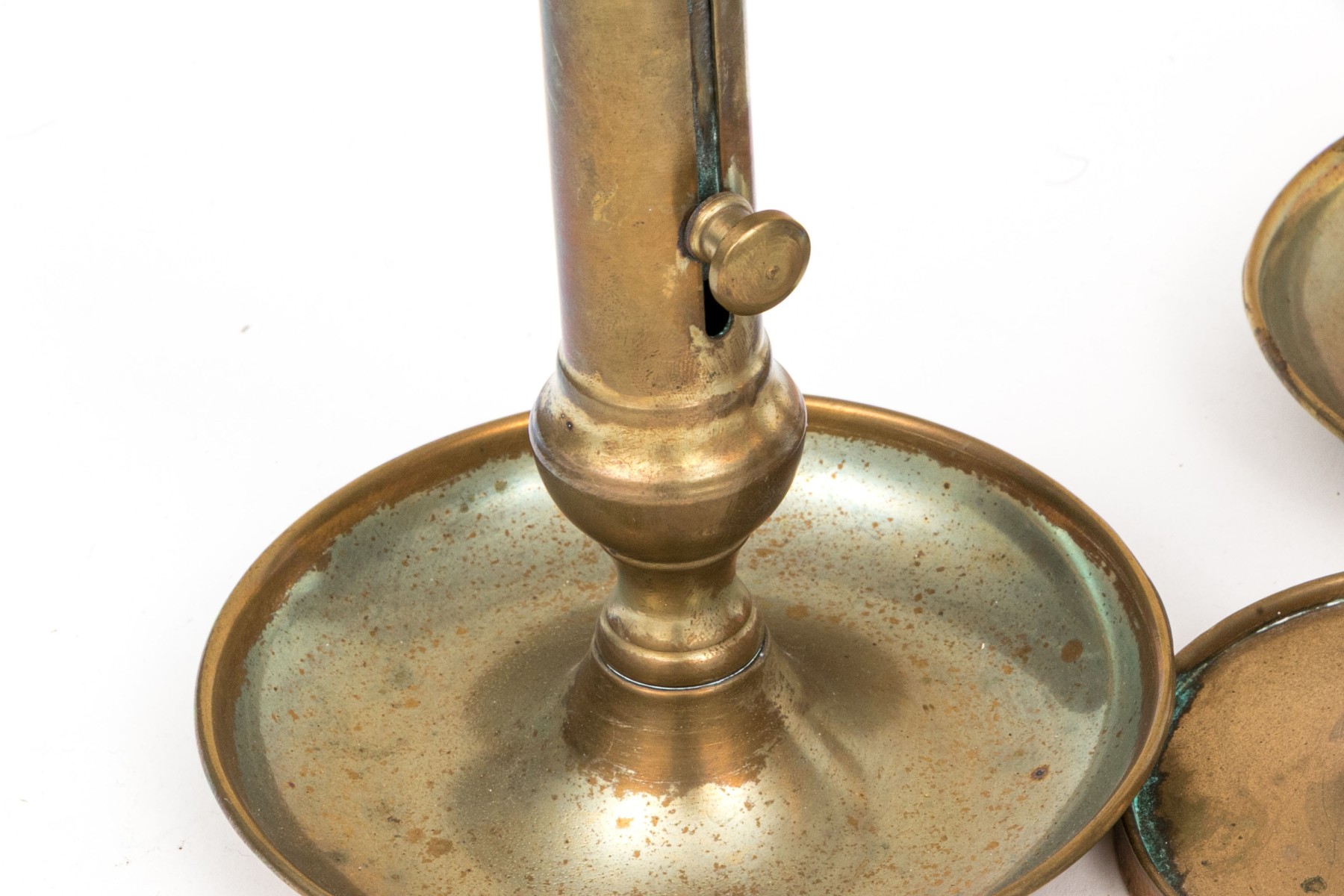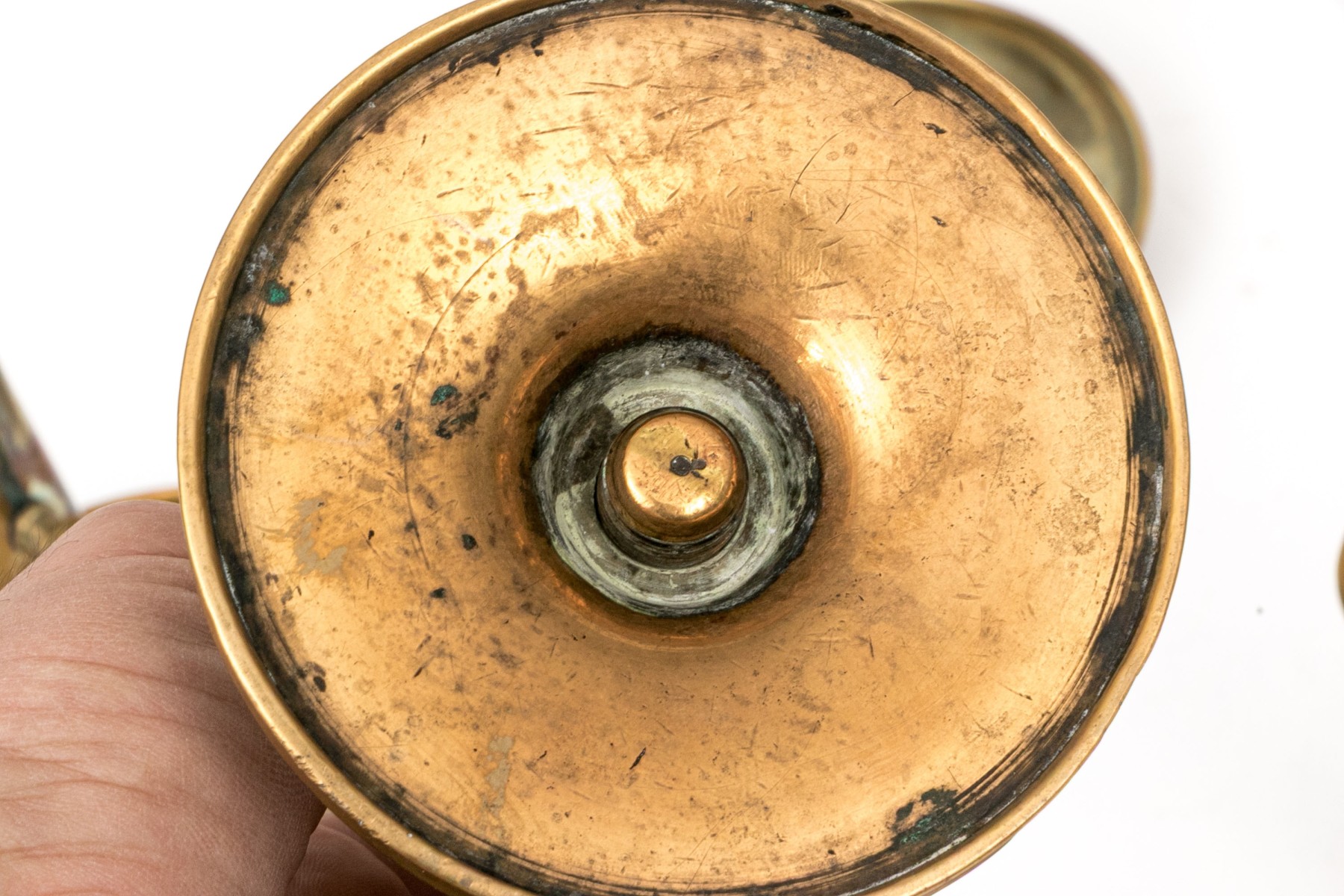 Oxidation, wear to the patina and slight dents to bobeches and feet commensurate with age and use.