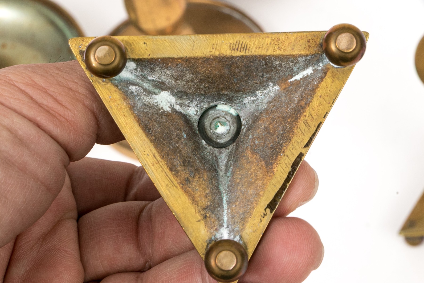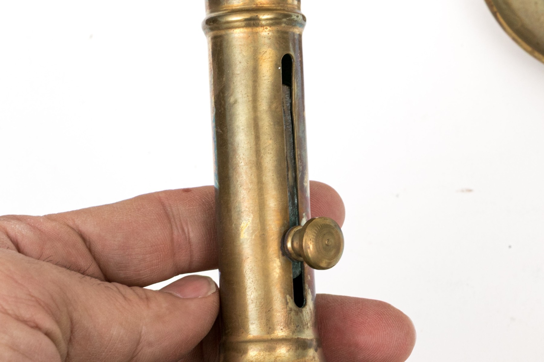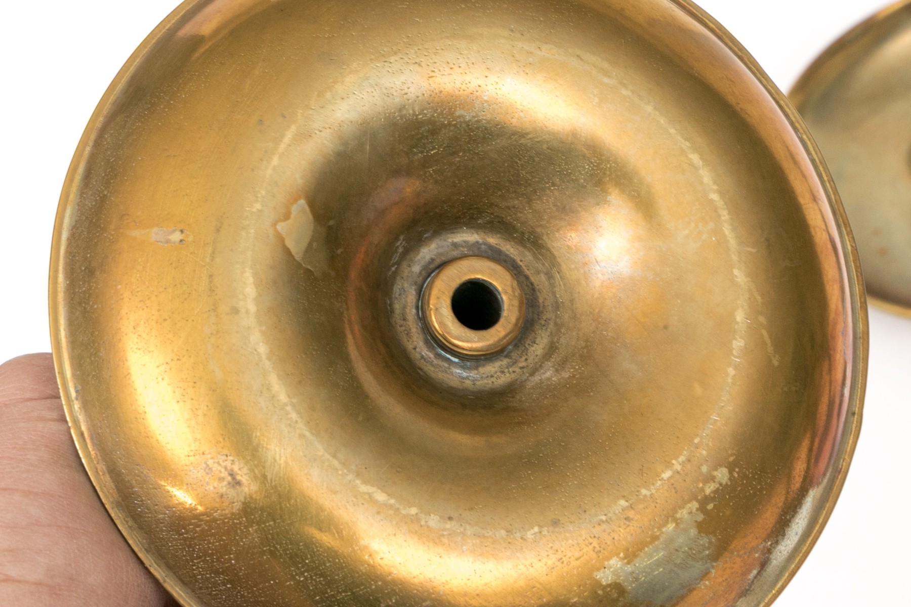 Oxidation, wear to the patina and slight dents to bobeches and feet commensurate with age and use.
