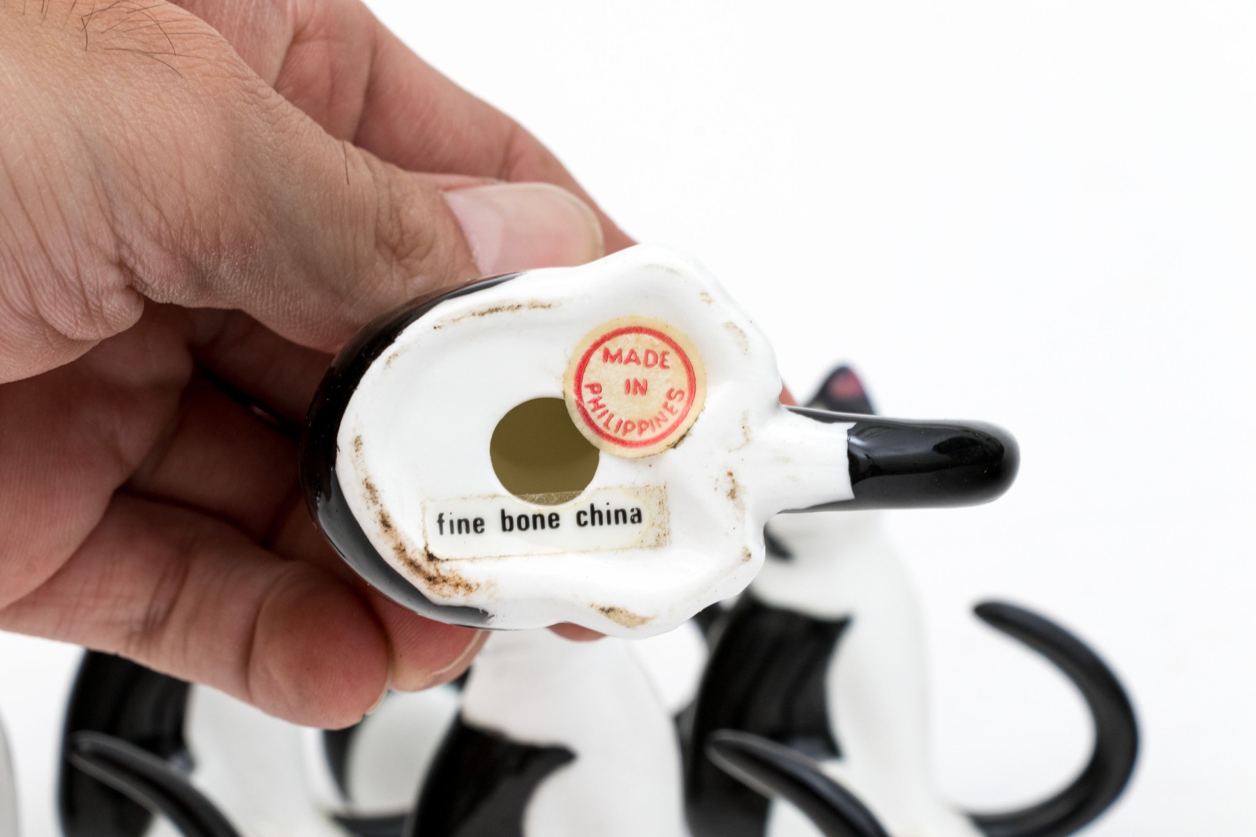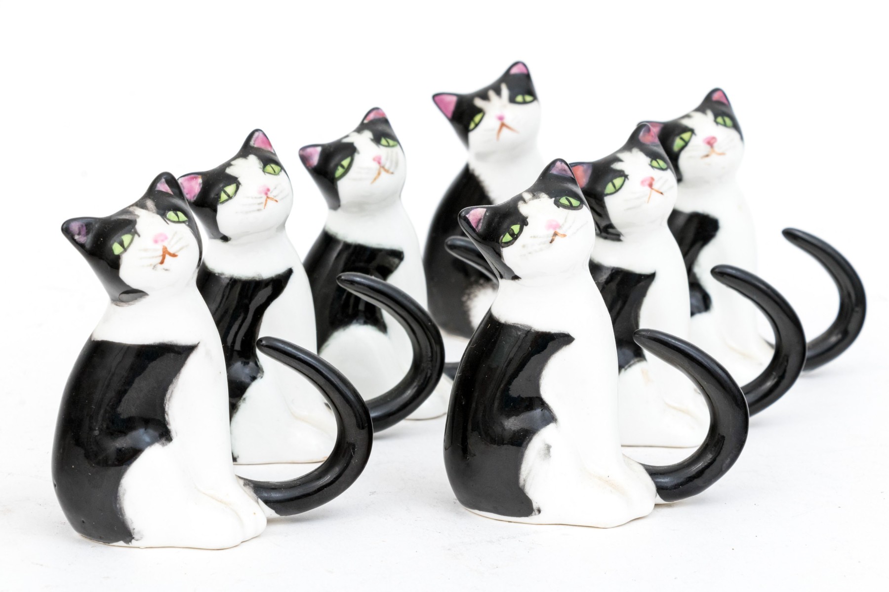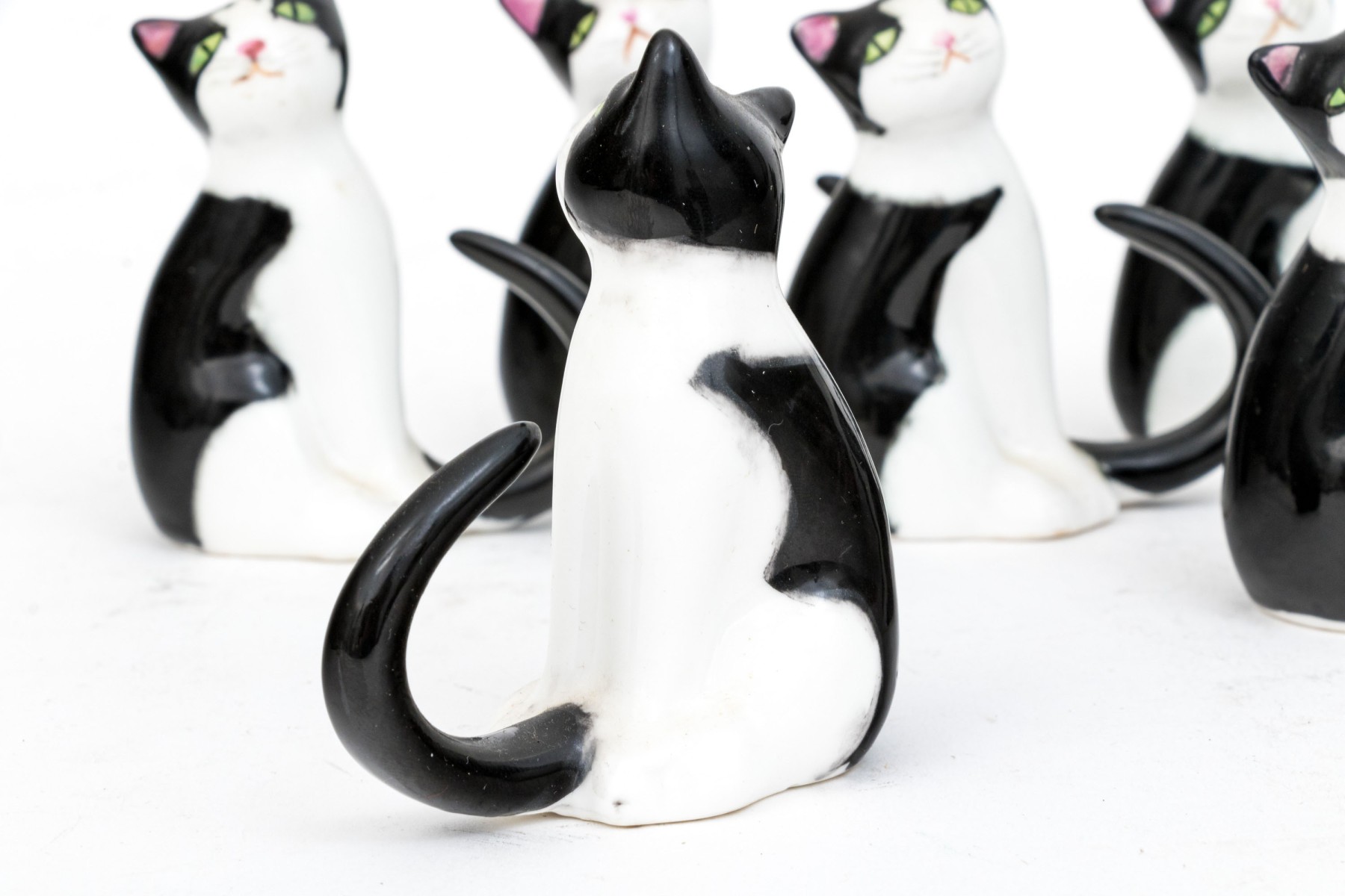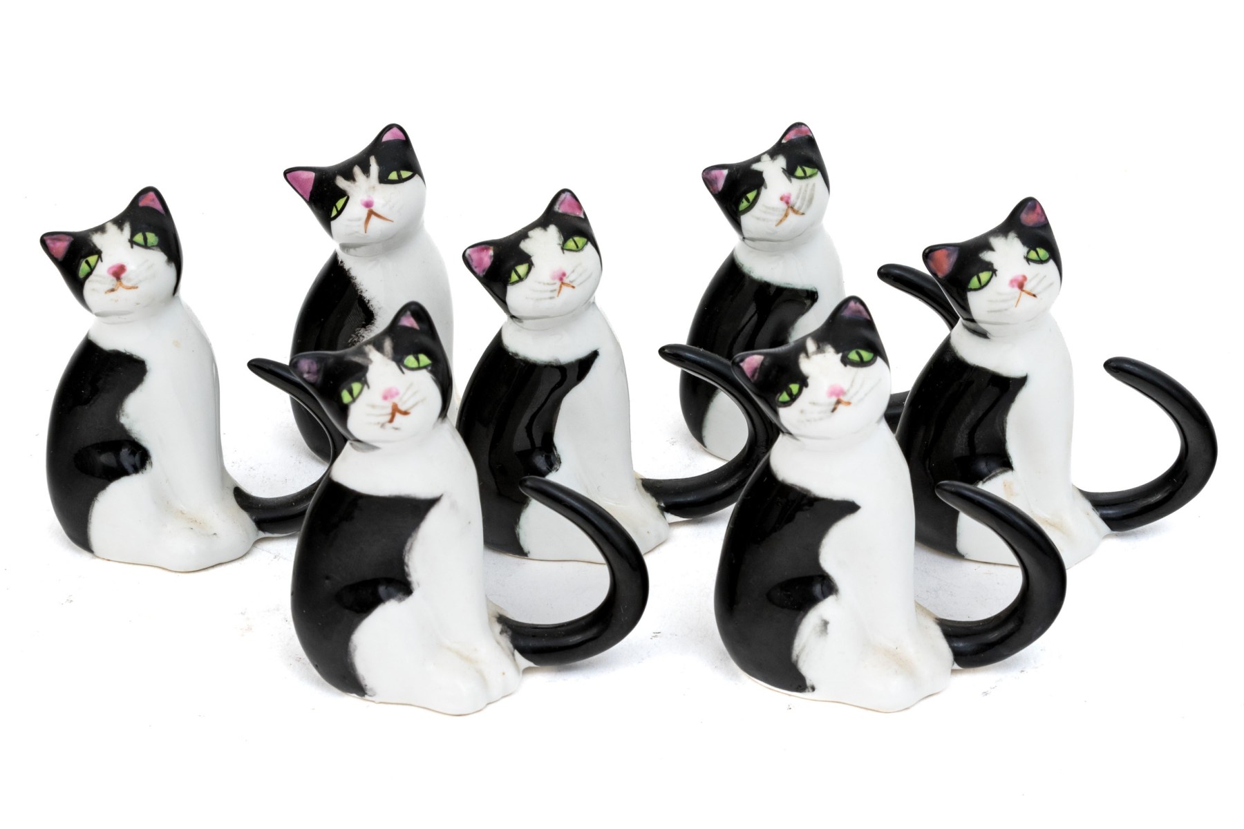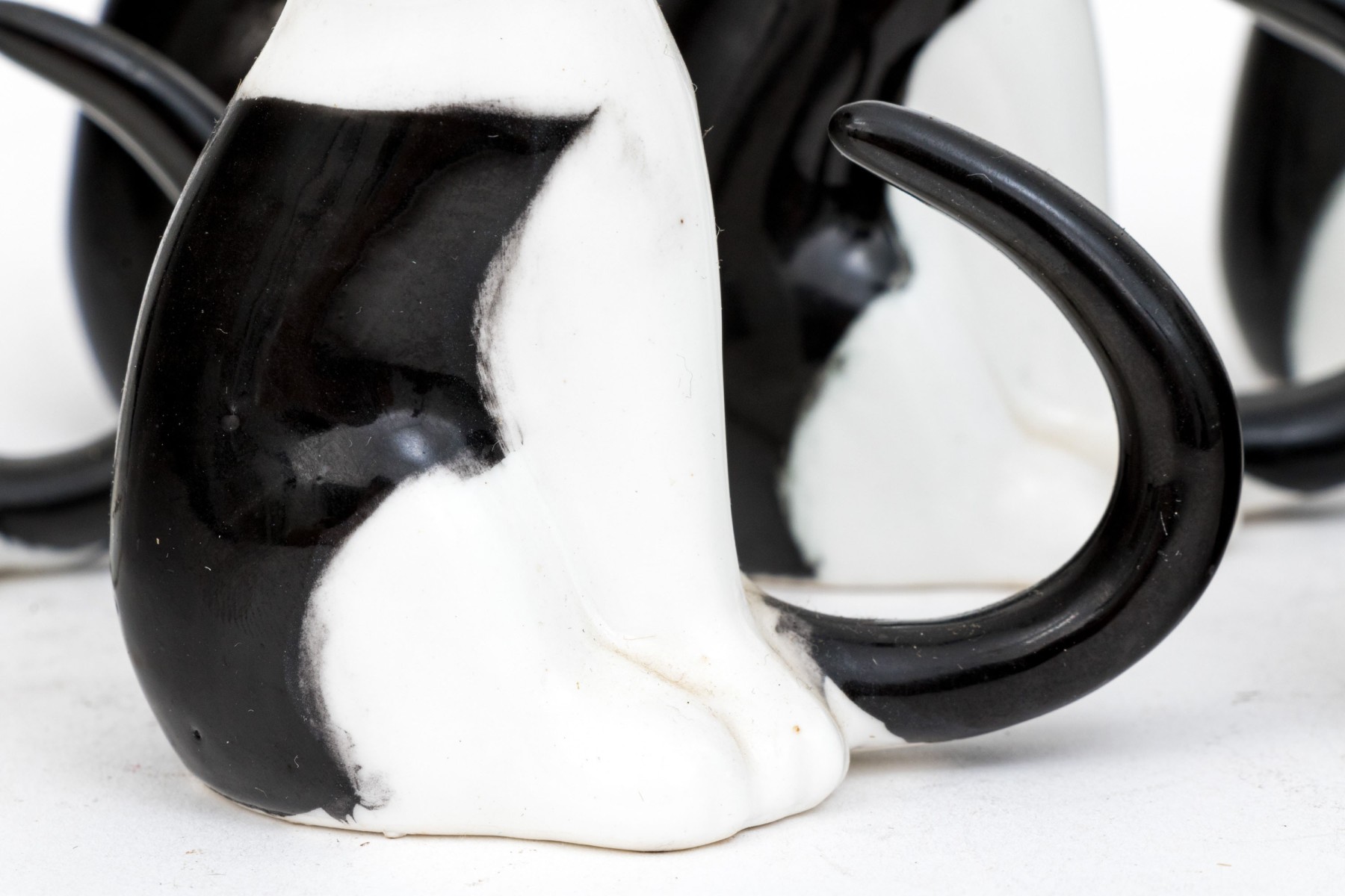 Each is wonderfully presented seated with curled tails and black and white coats.