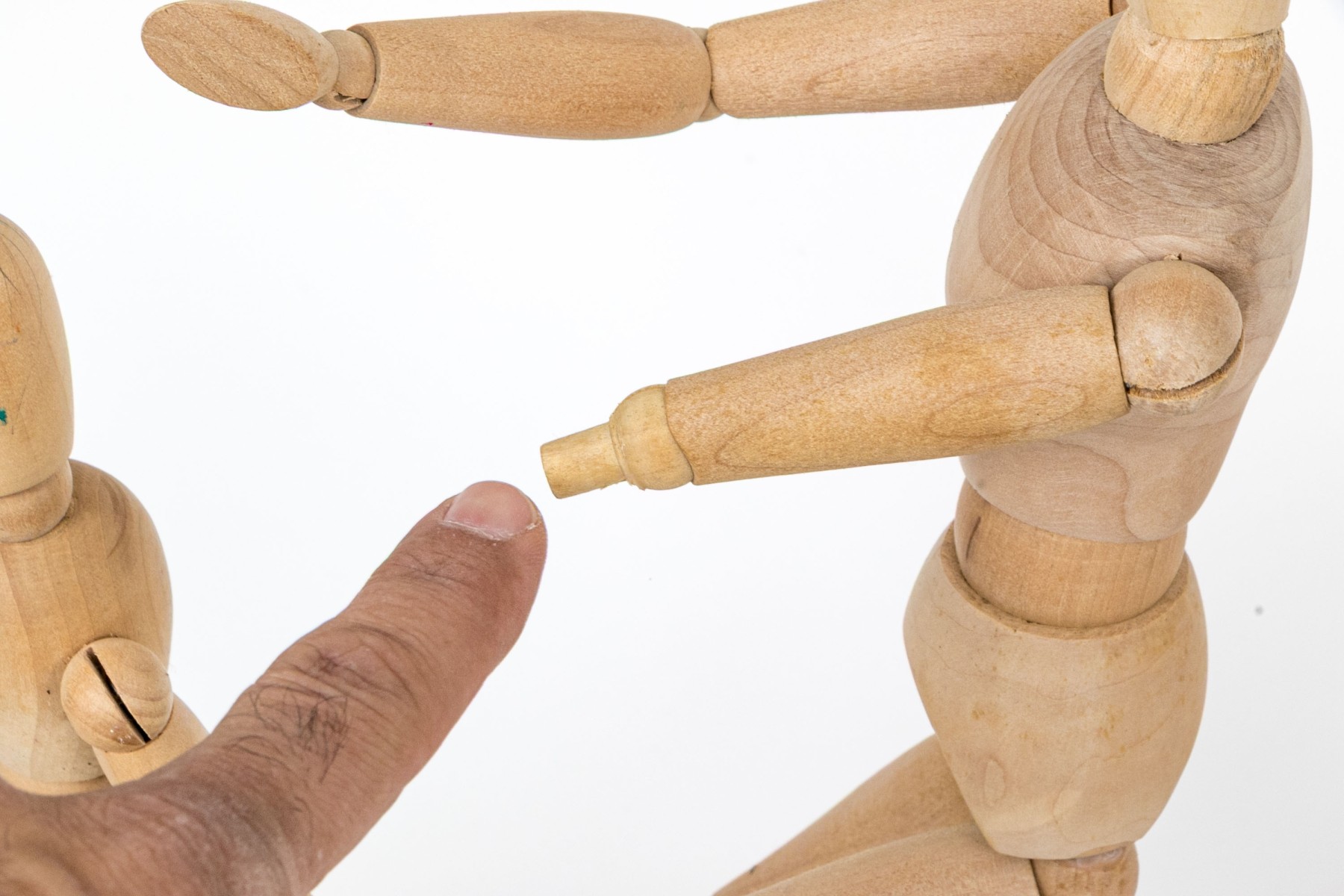 Handform is missing thumb and one figure is missing a hand.