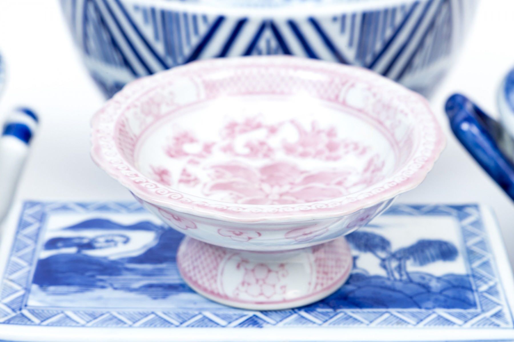 Along with a mauve and white footed small bowl