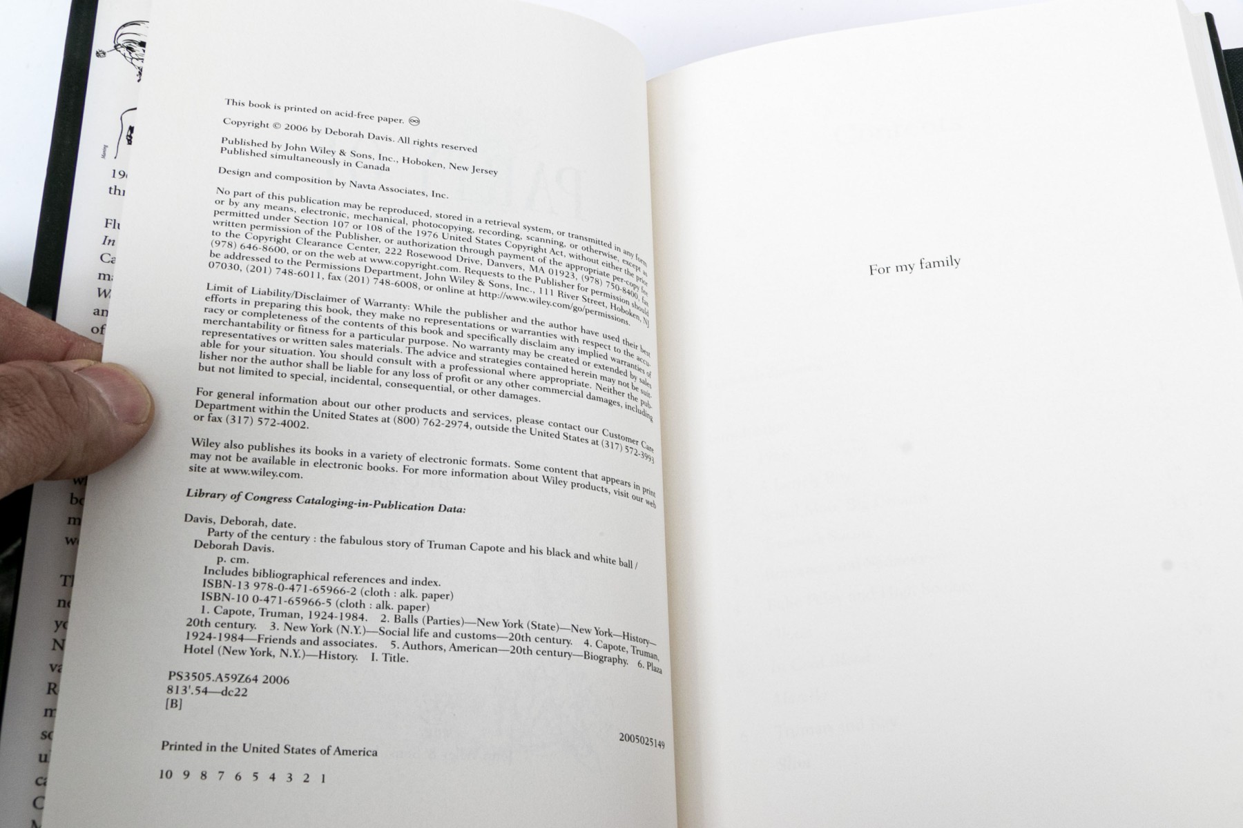 Deborah Davis, Party of the Century,.. Truman Capote, ...Black and White Ball, John Wiley & Sons, 2006.