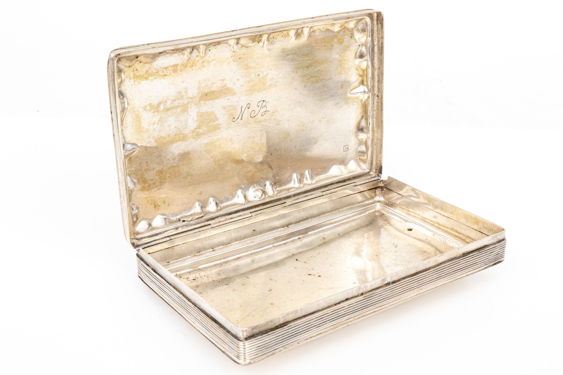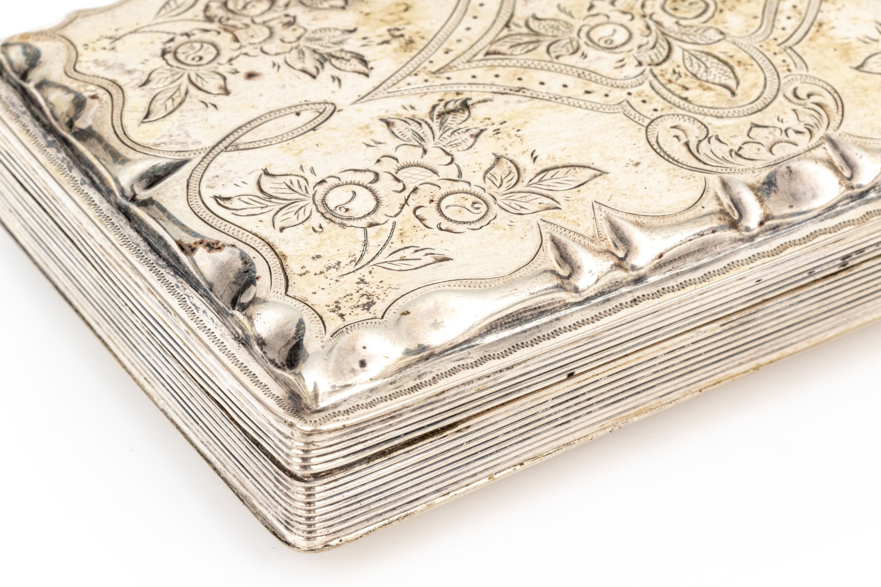 a Dutch 833 silver cigarette box with chased foliate decoration on the lid, 5 1/4" wide x 3 1/4" deep x 1" high,