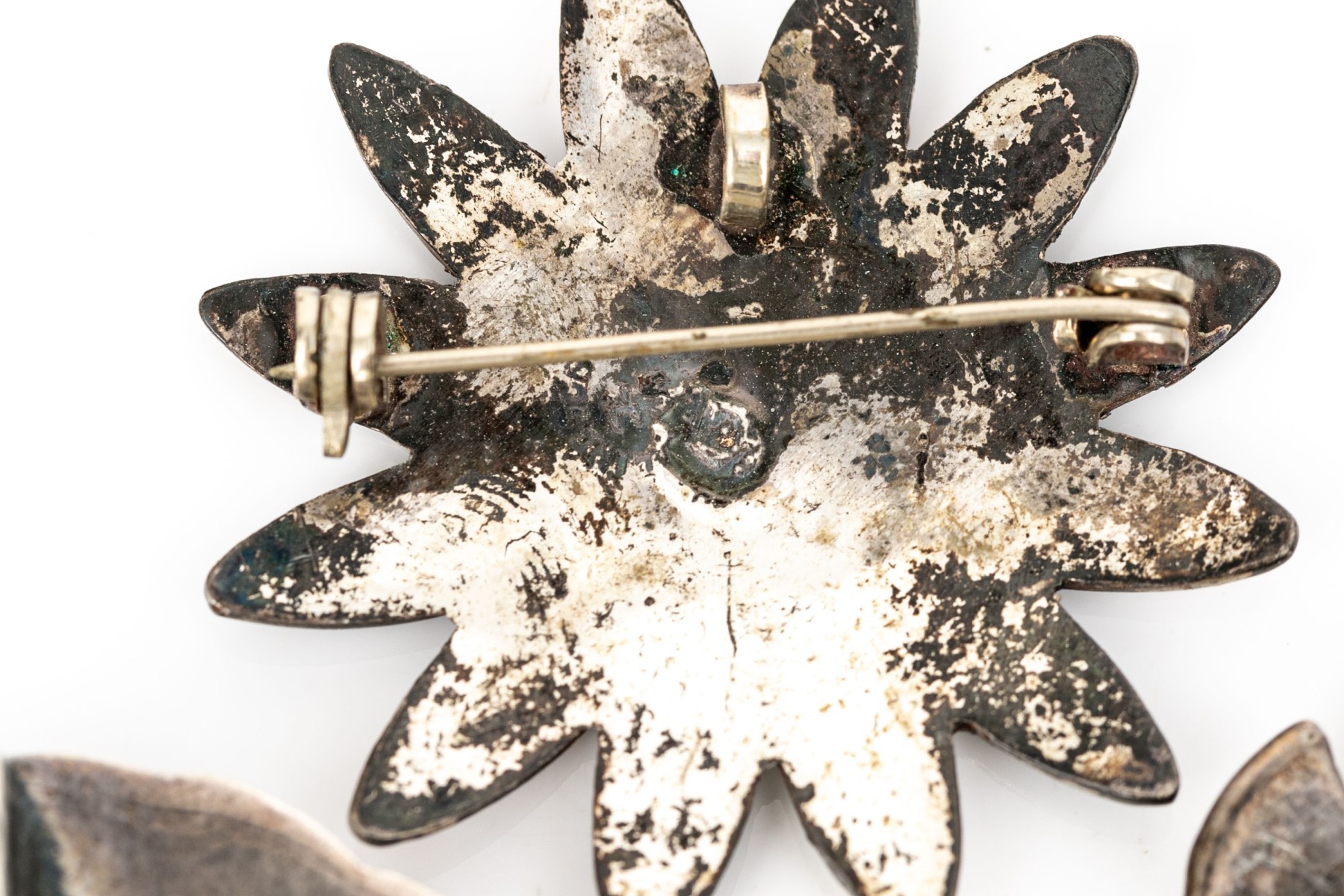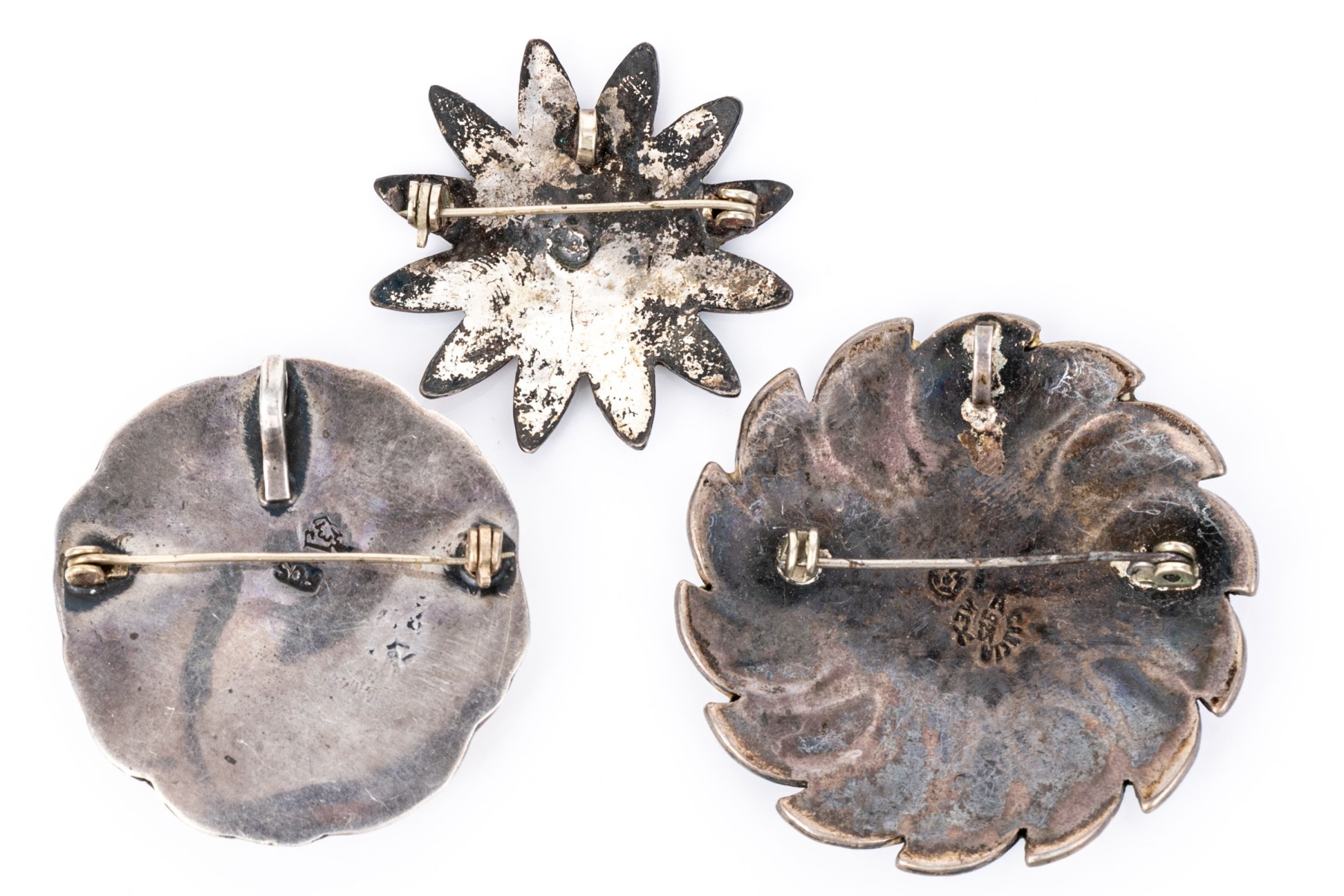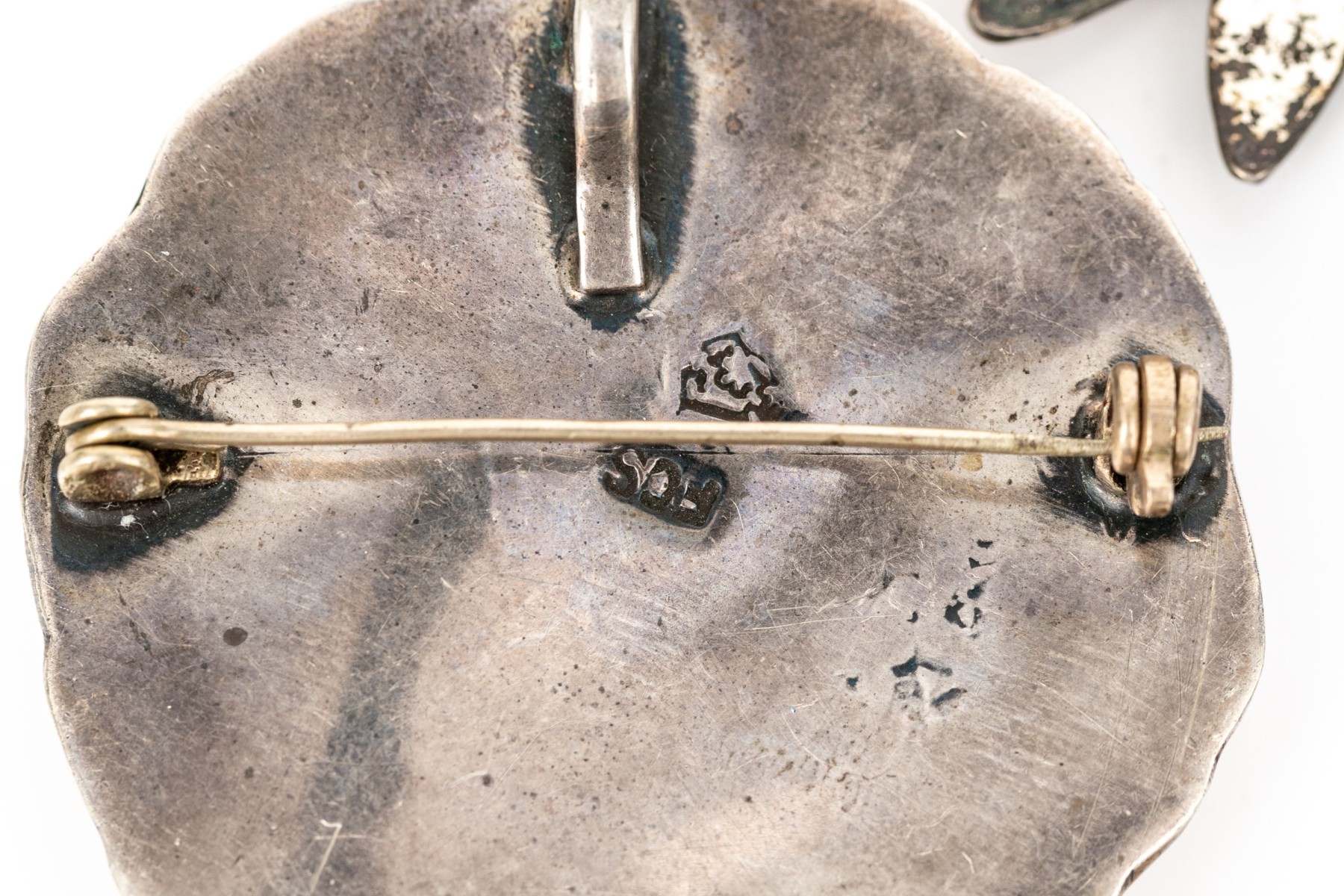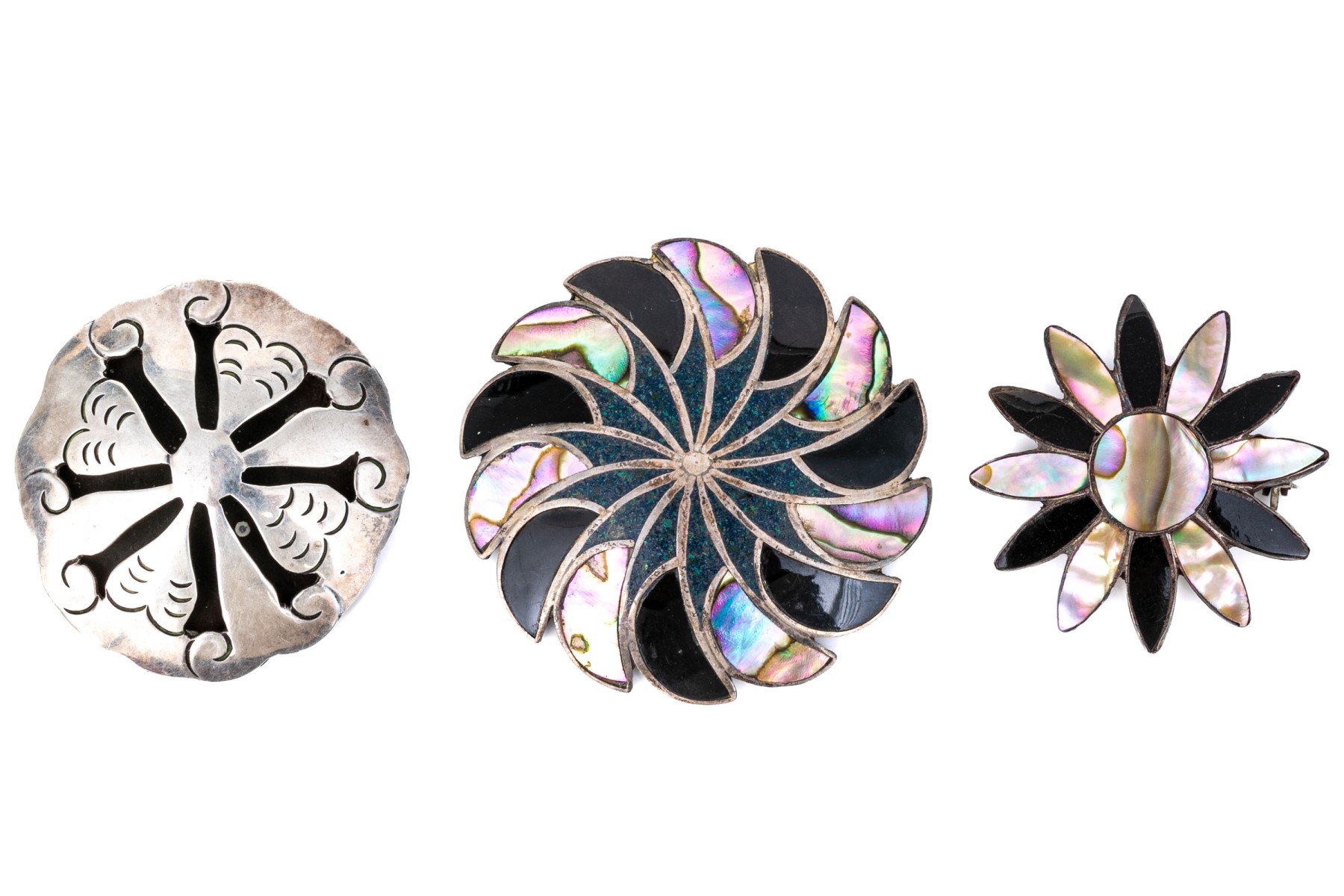 Collection of Southwestern motif round brooches, including onyx and mother-of-pearl inlay