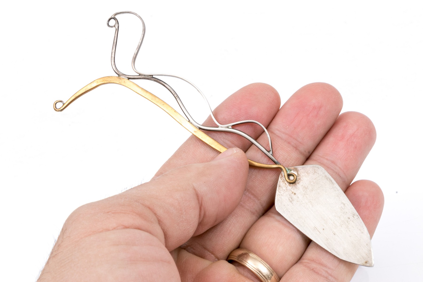 Condition: Breaks, bends and tarnishing. Part of the letter opener's handle is not sterling silver.