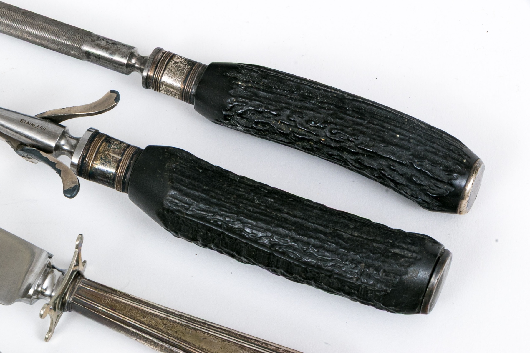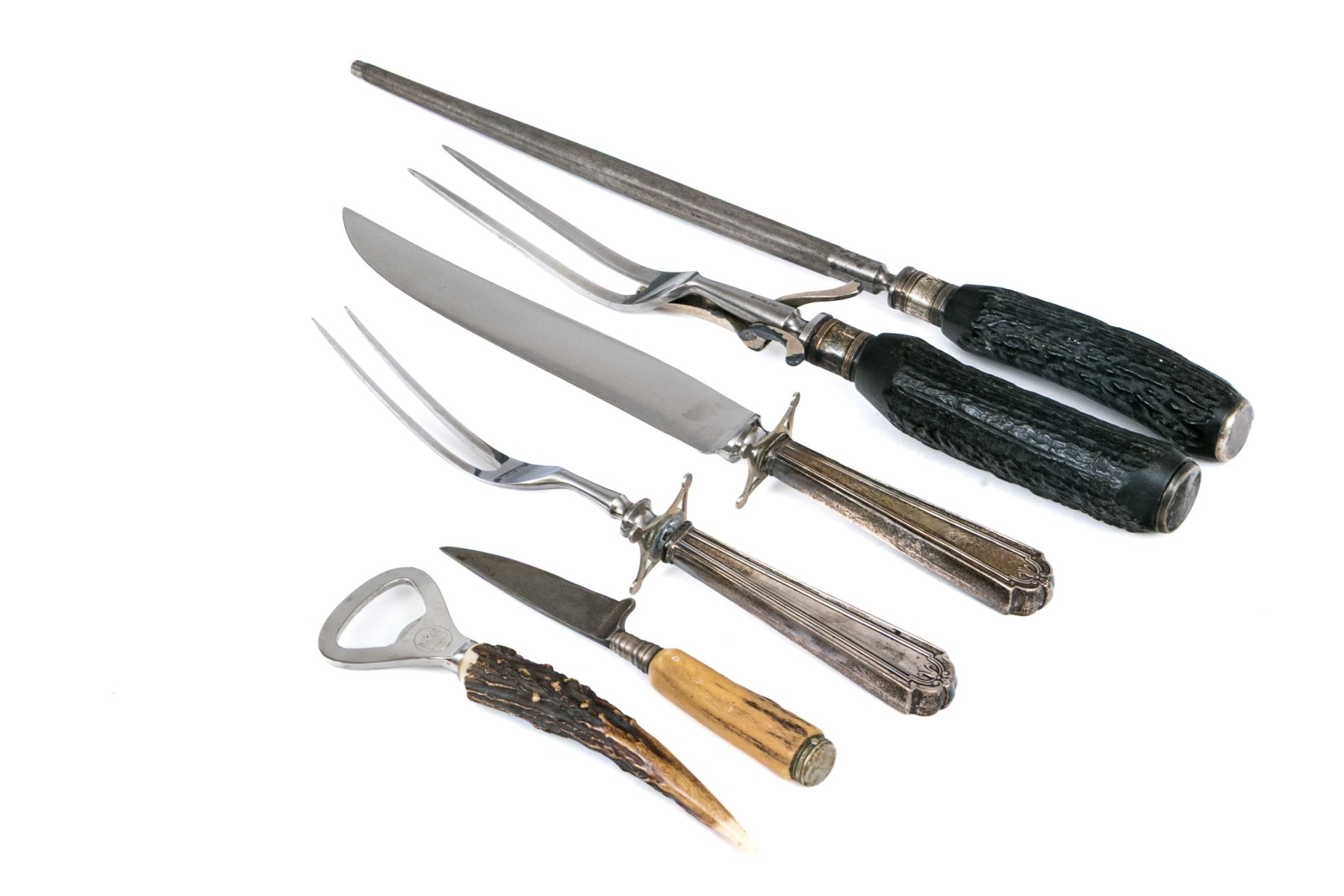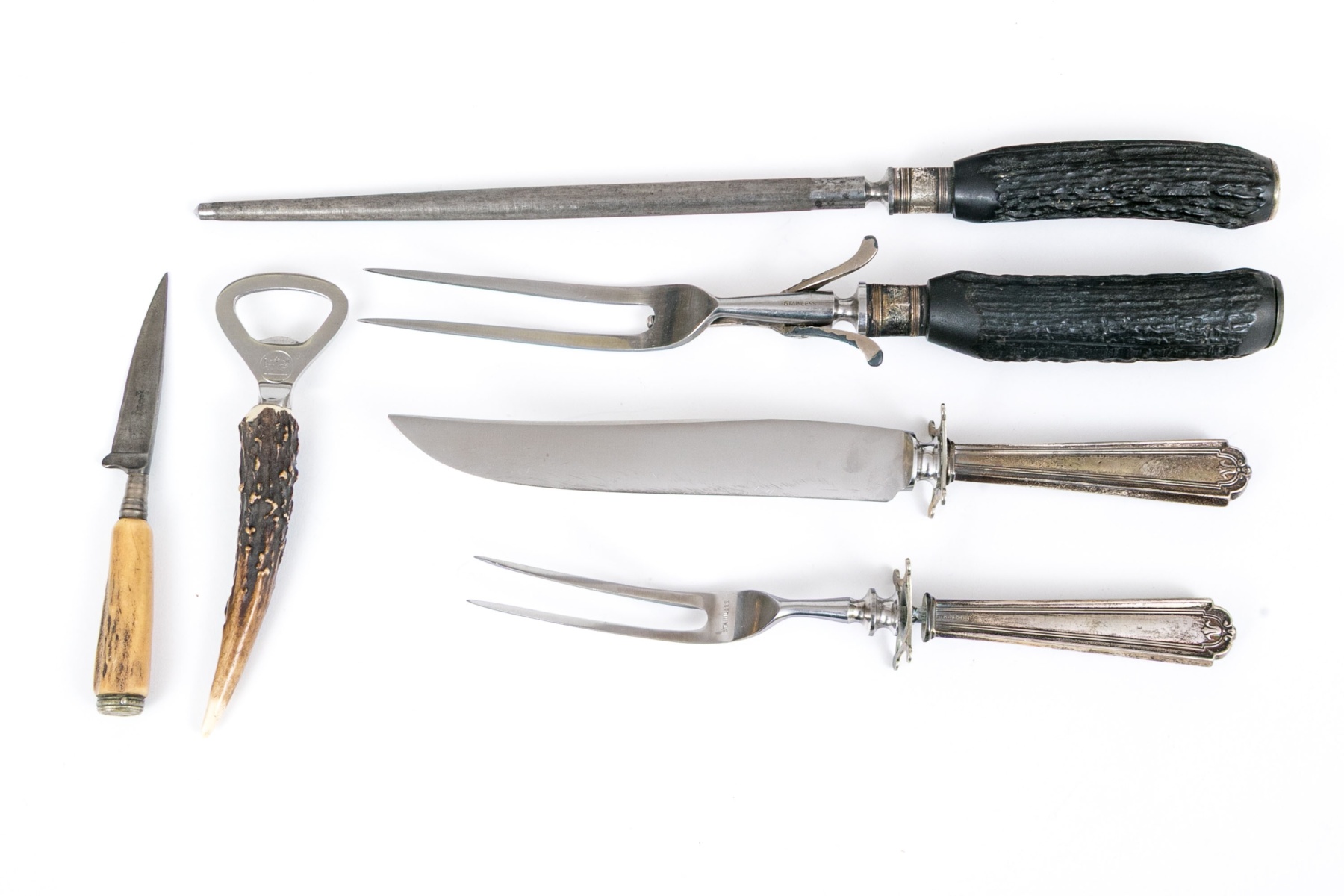 A wonderful collection of sterling silver and antler handled utensils comprised of: