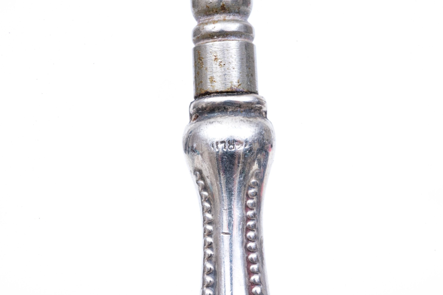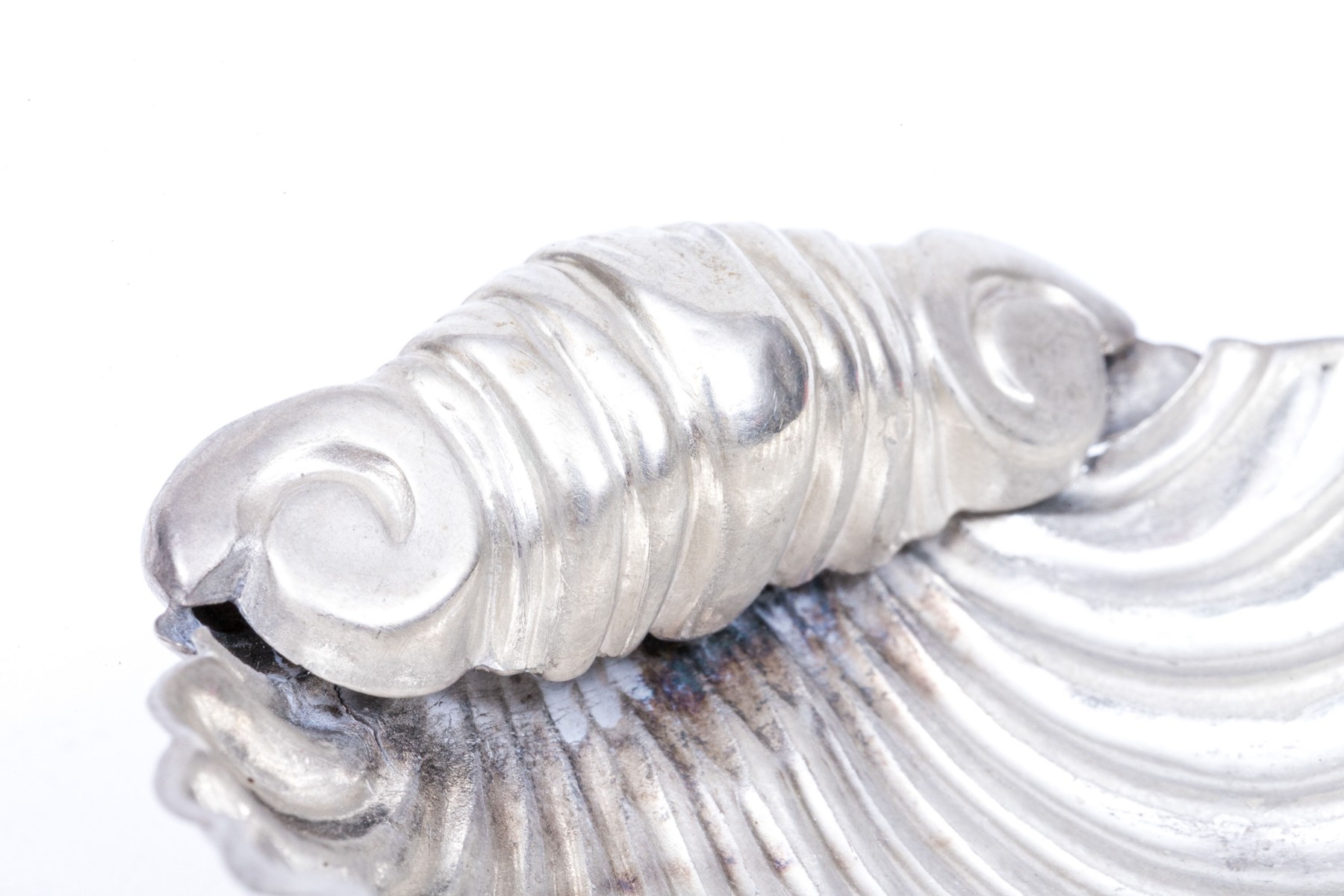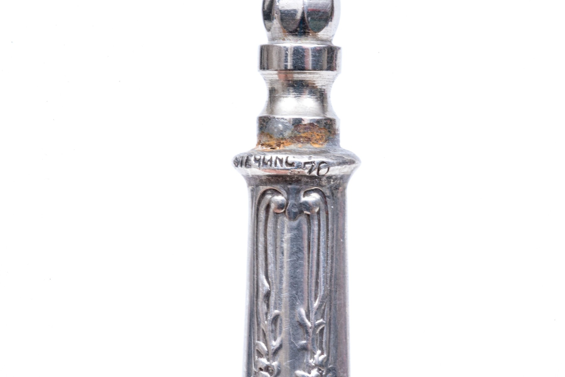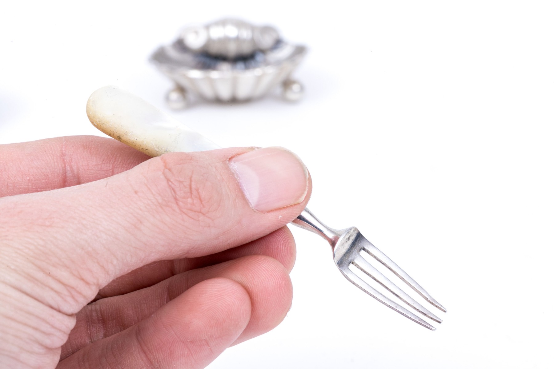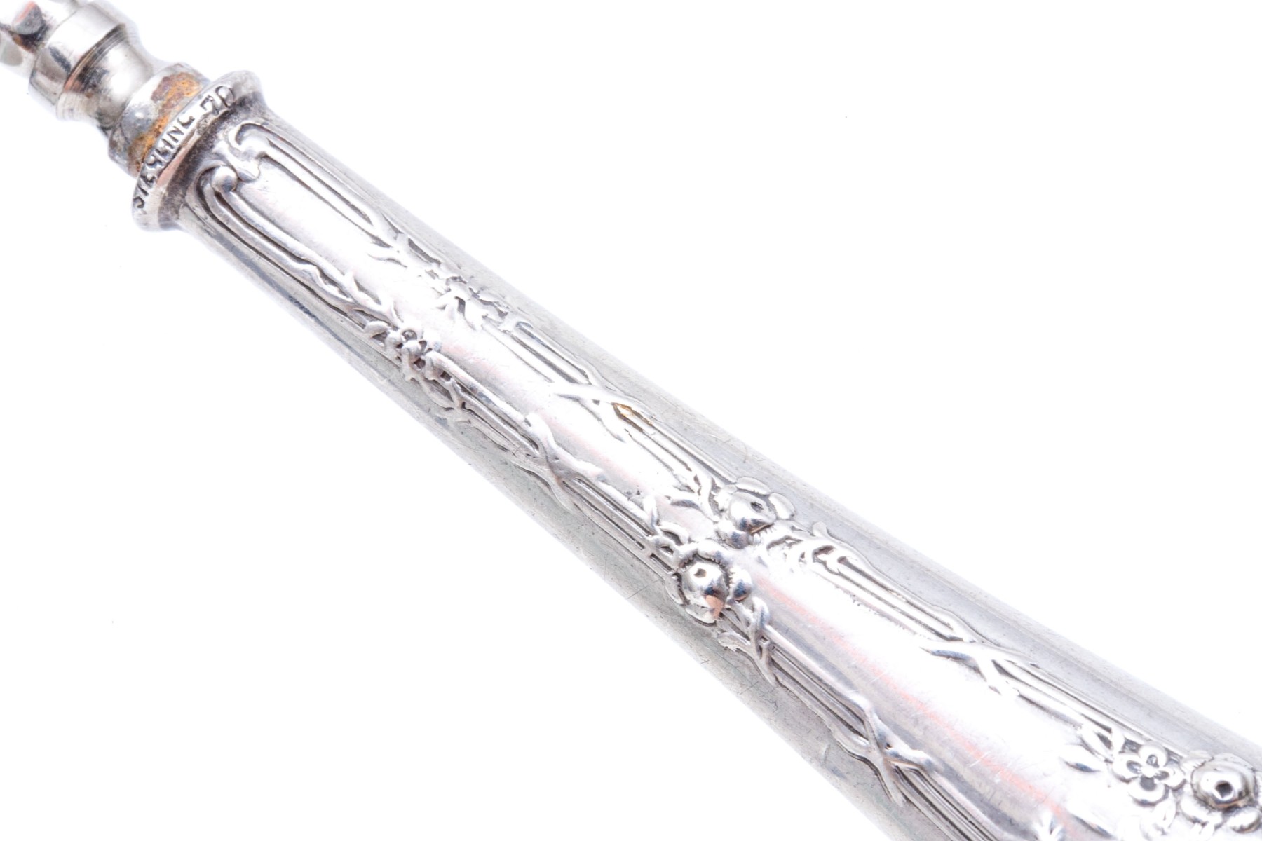 Collection of sterling silver items including hooks, pin case and salt dishes.