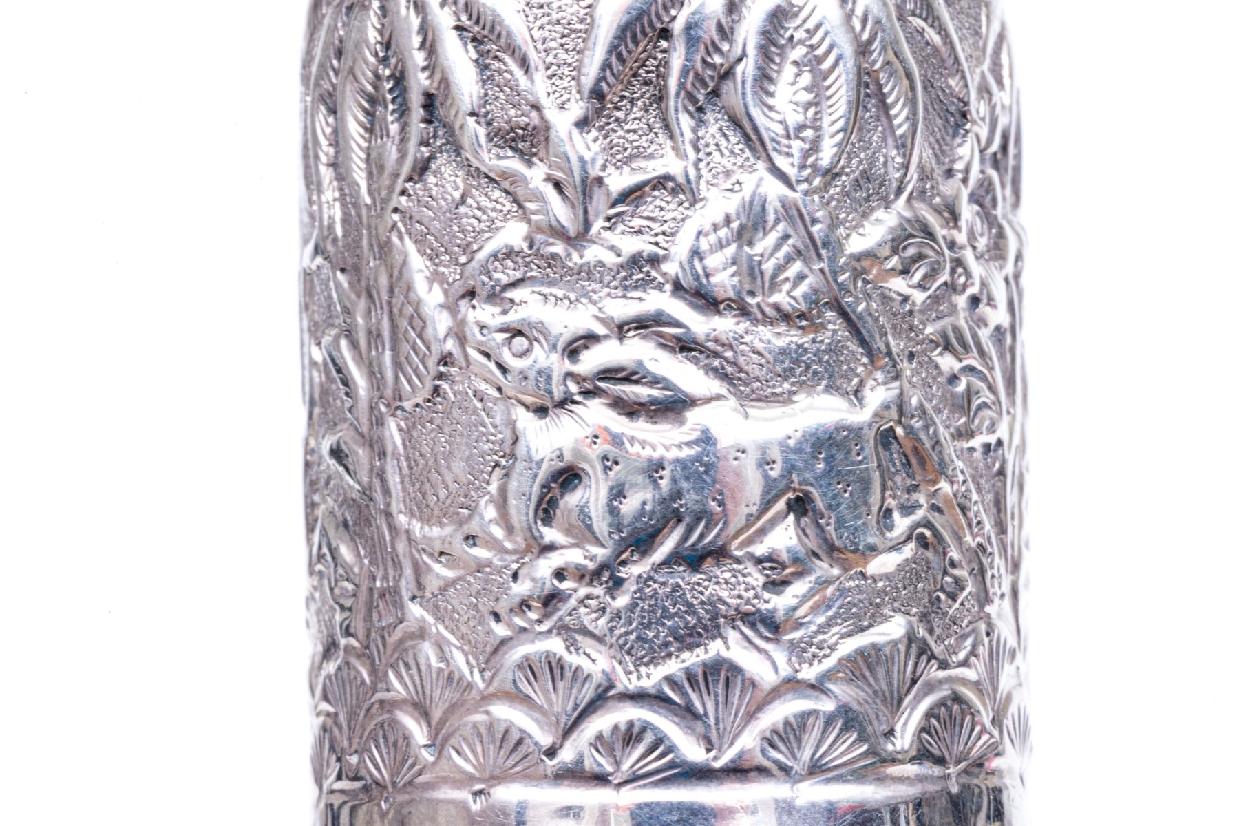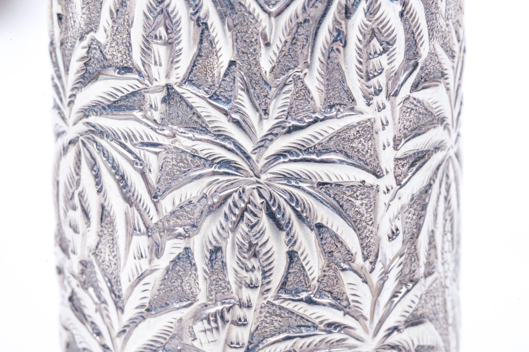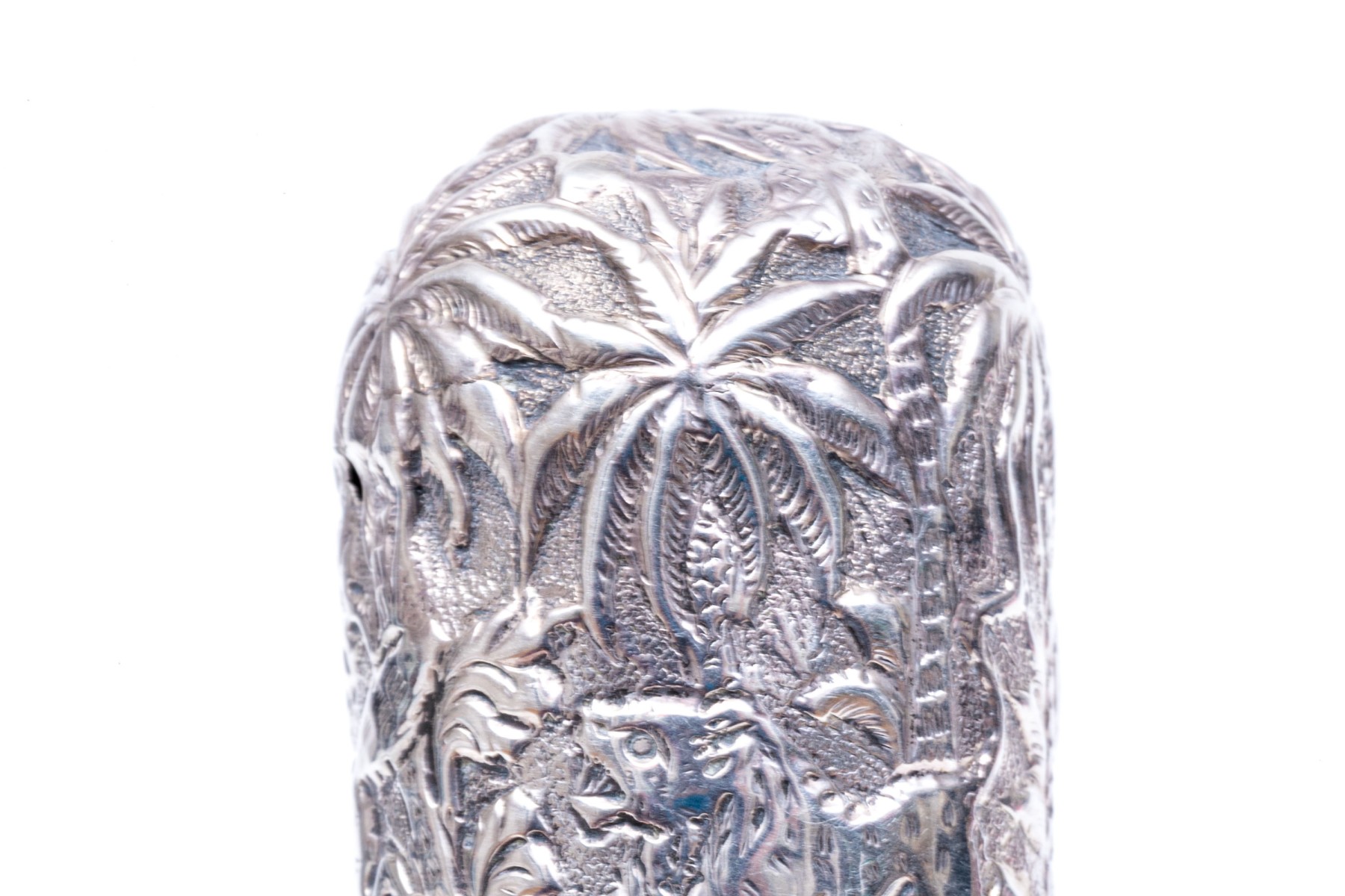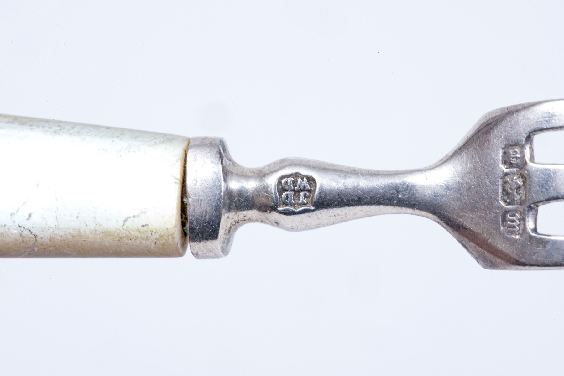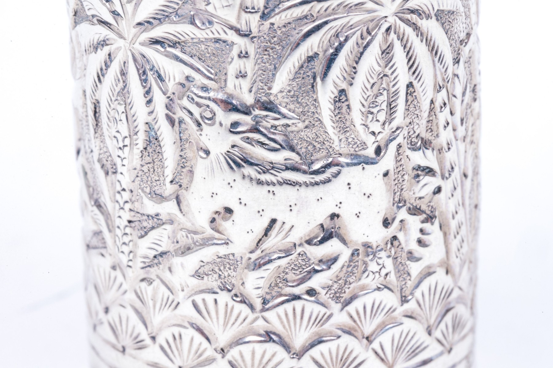Collection of sterling silver items including hooks, pin case and salt dishes.