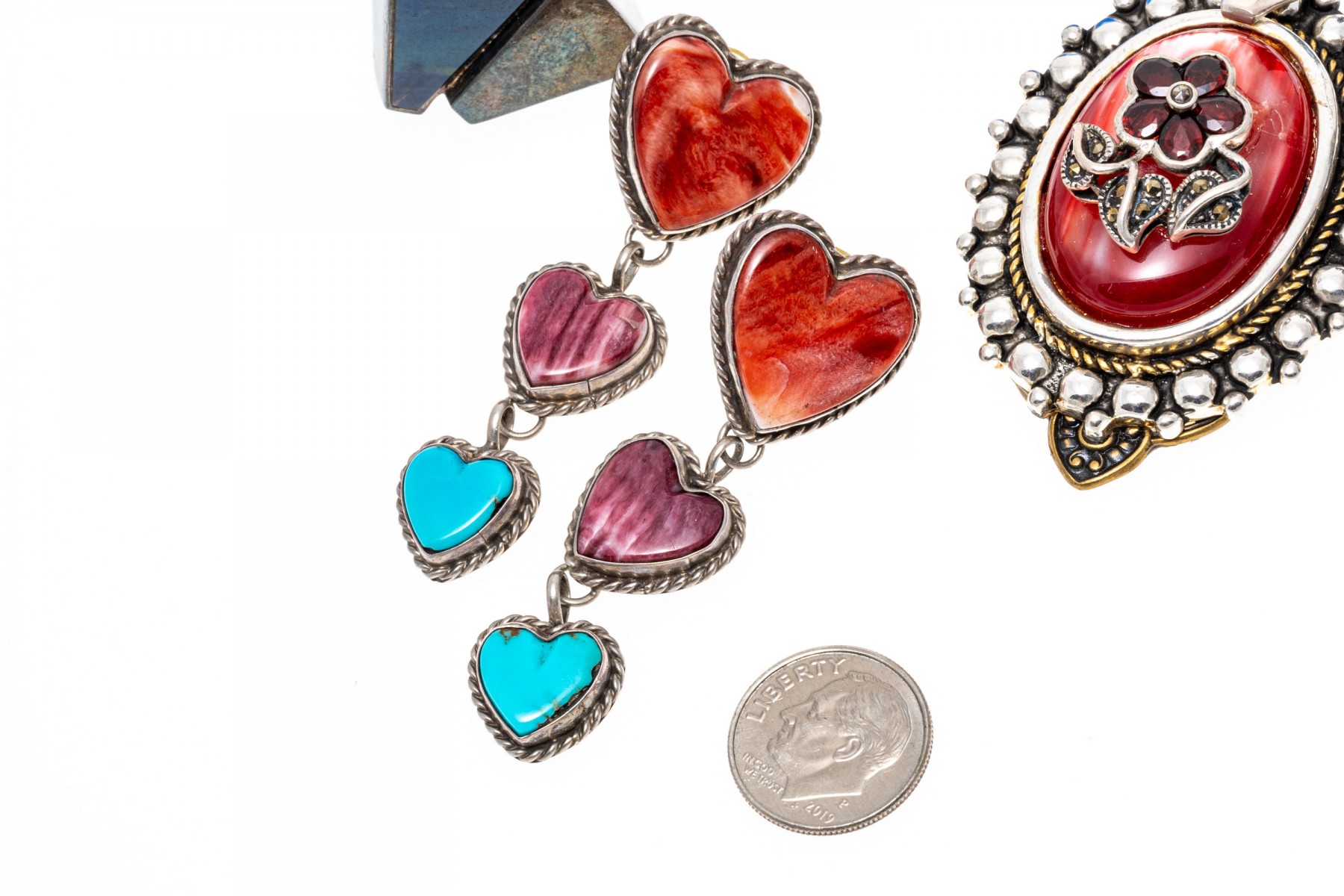 Condition: Tarnishing, bends, earring backings missing. Some pieces broken and/or missing parts.