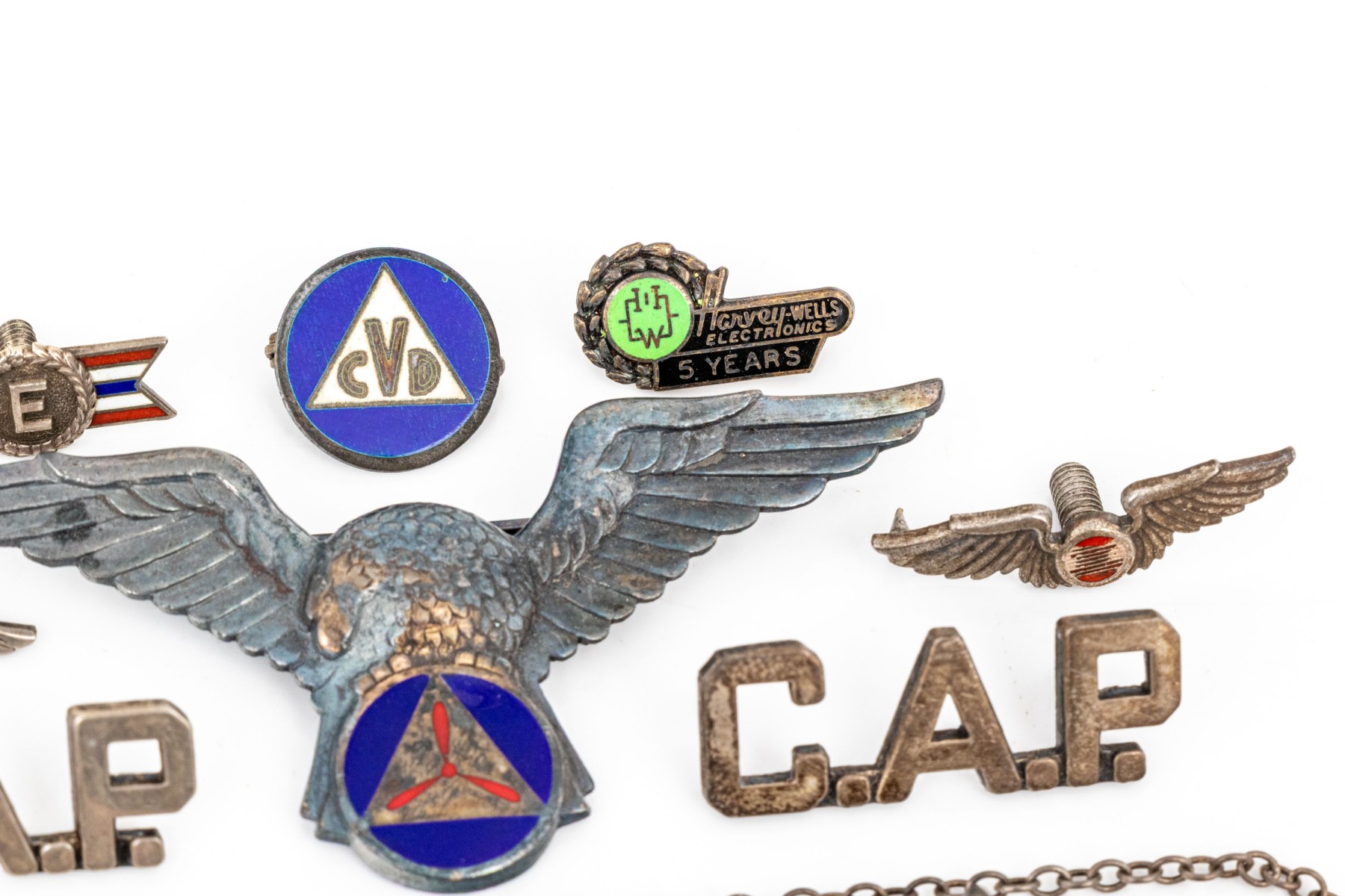 five small wing pieces and one large eagle, all with enamel details
