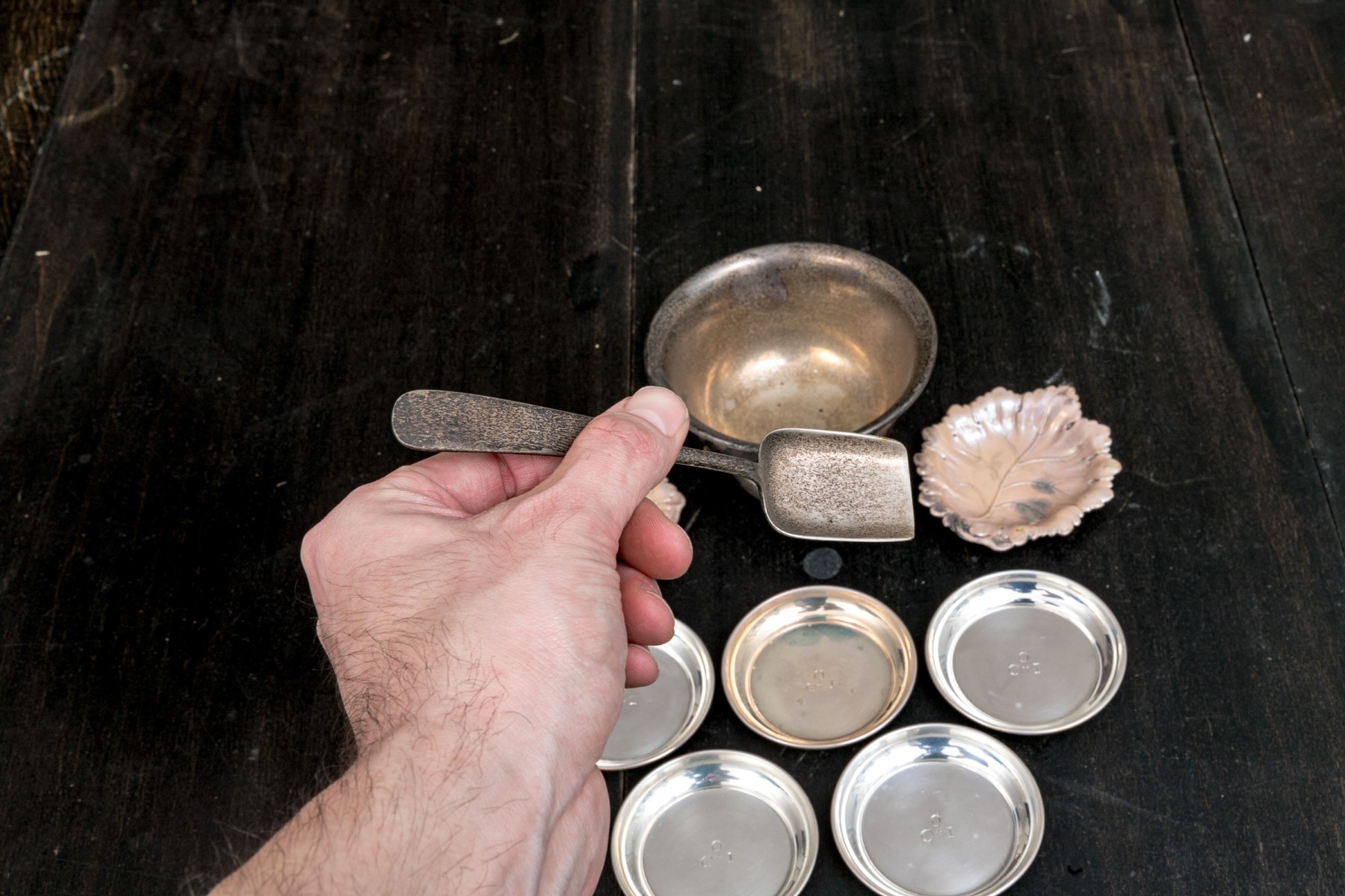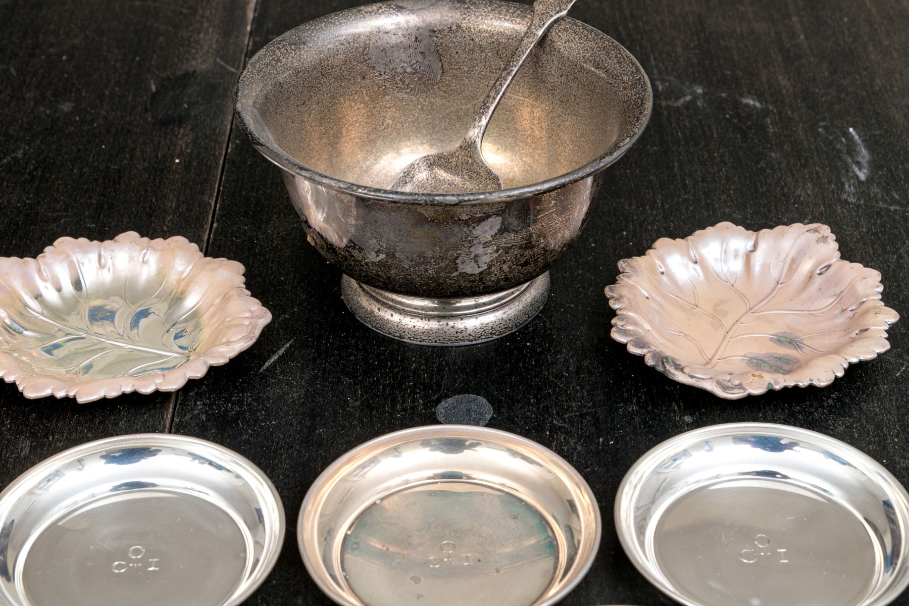 Condition: Wear includes tarnishing to all pieces. Wear including tarnish is commensurate with age usage. Each piece could use a cleaning. See lot images for further visual inspection as they are considered part of the lot condition report.
