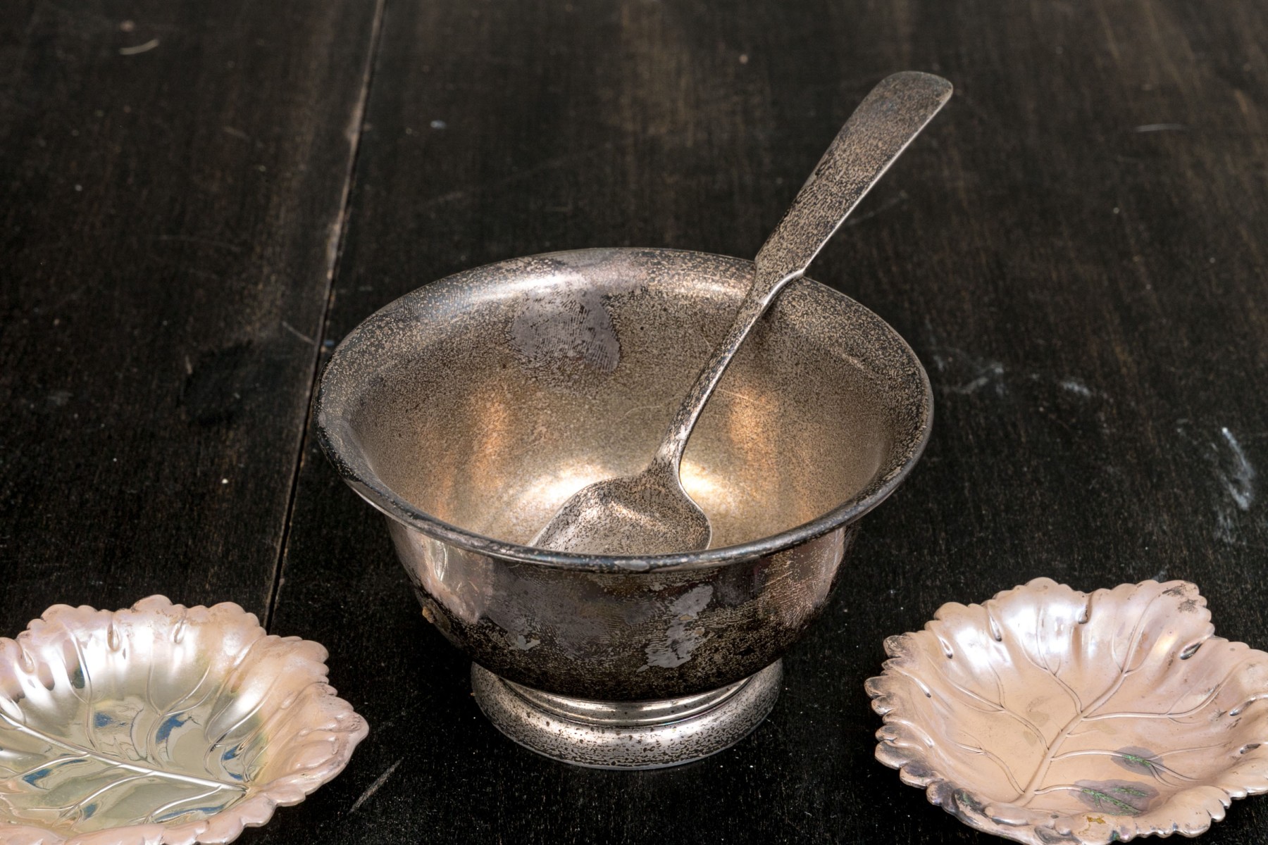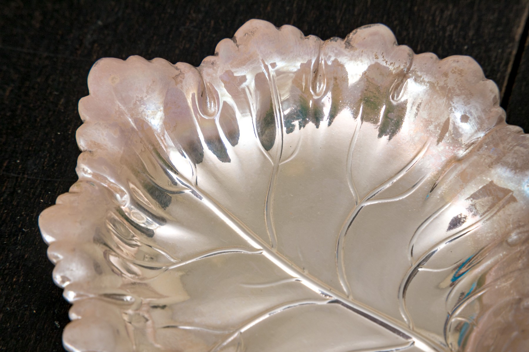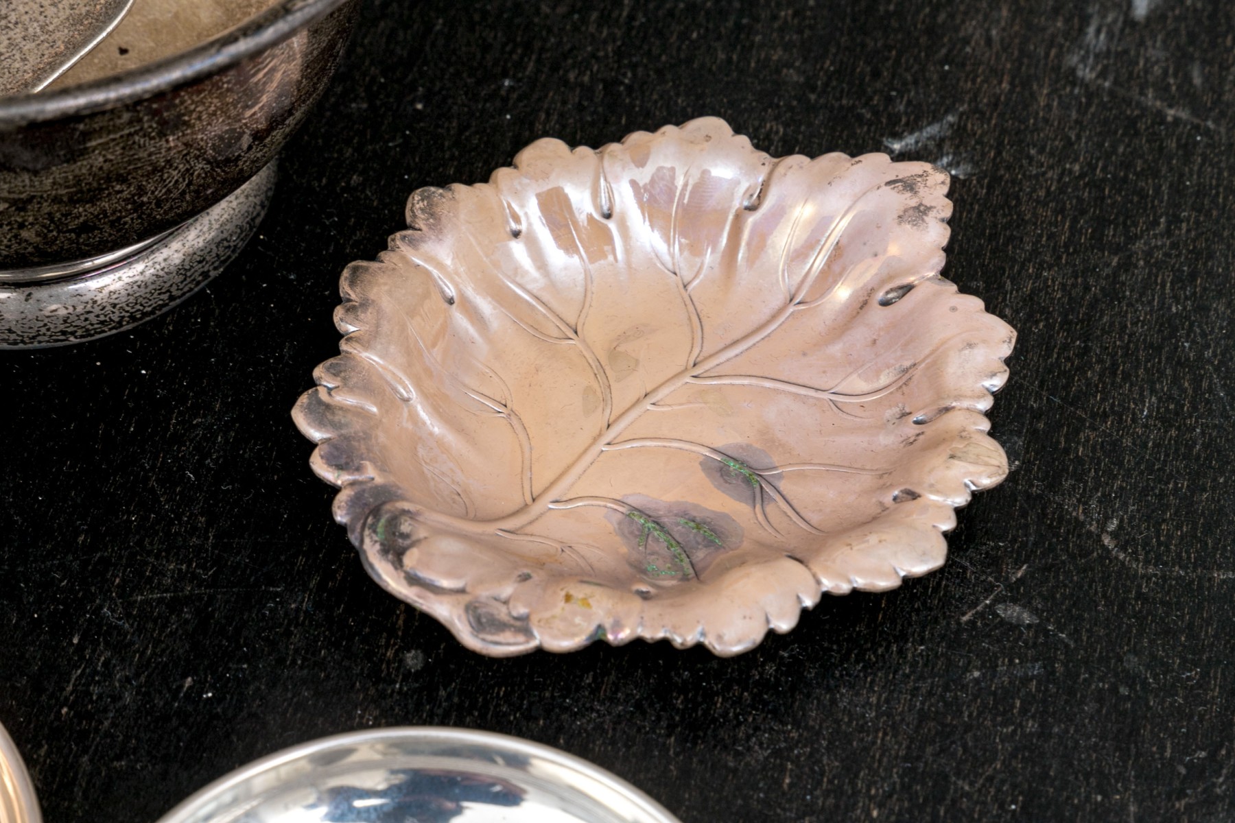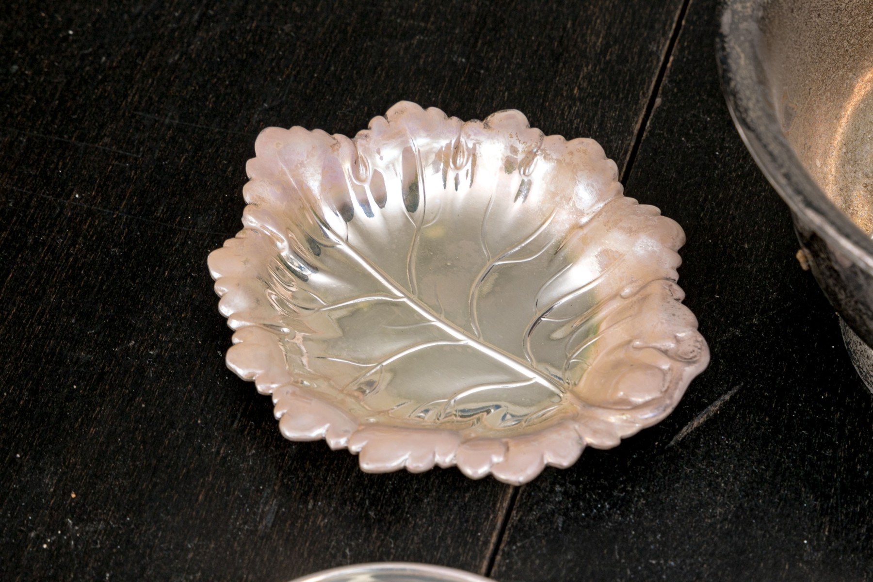 - 2 silver plated leaf form bowls