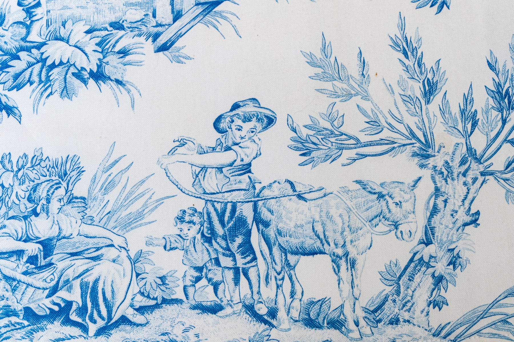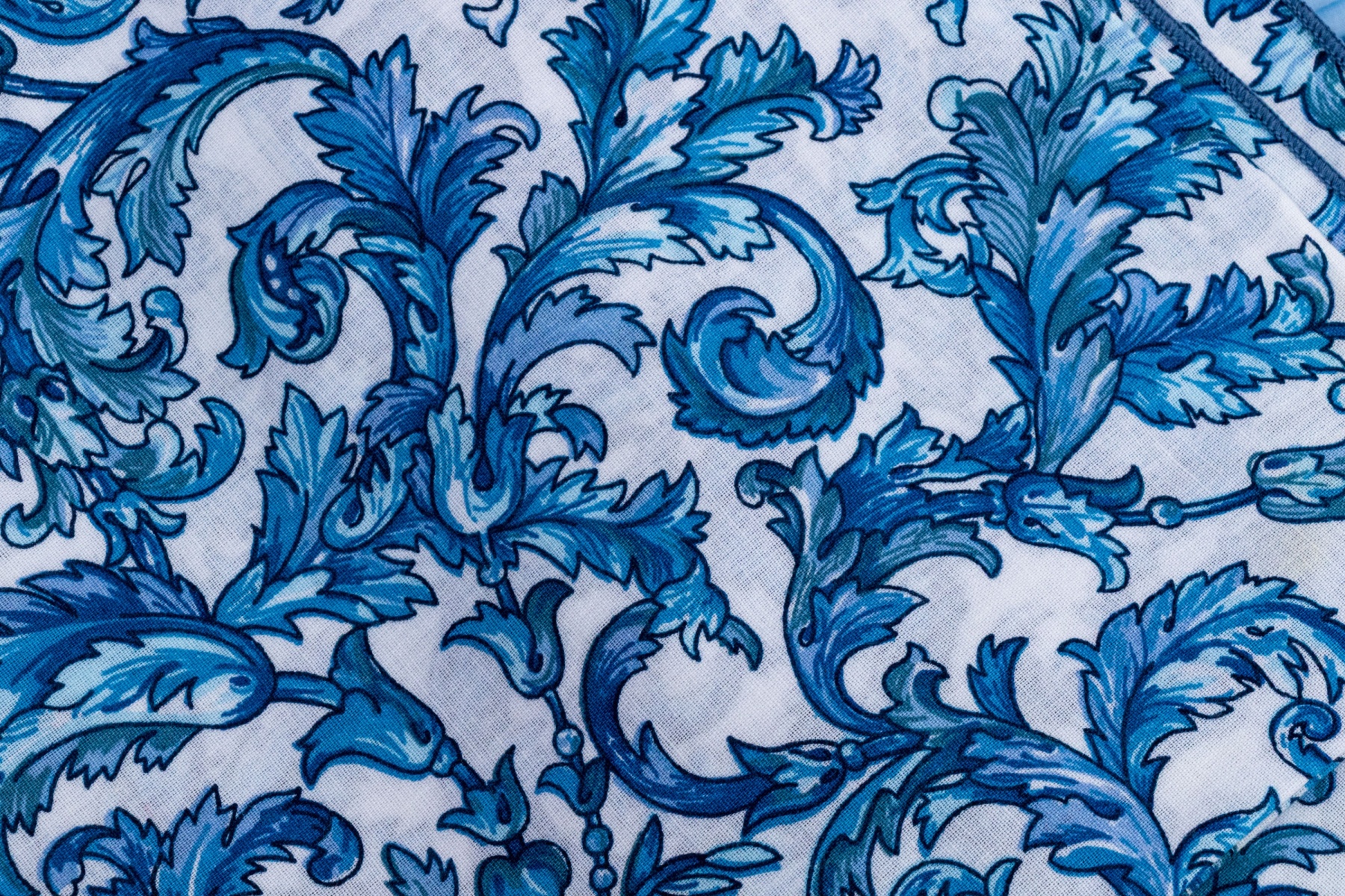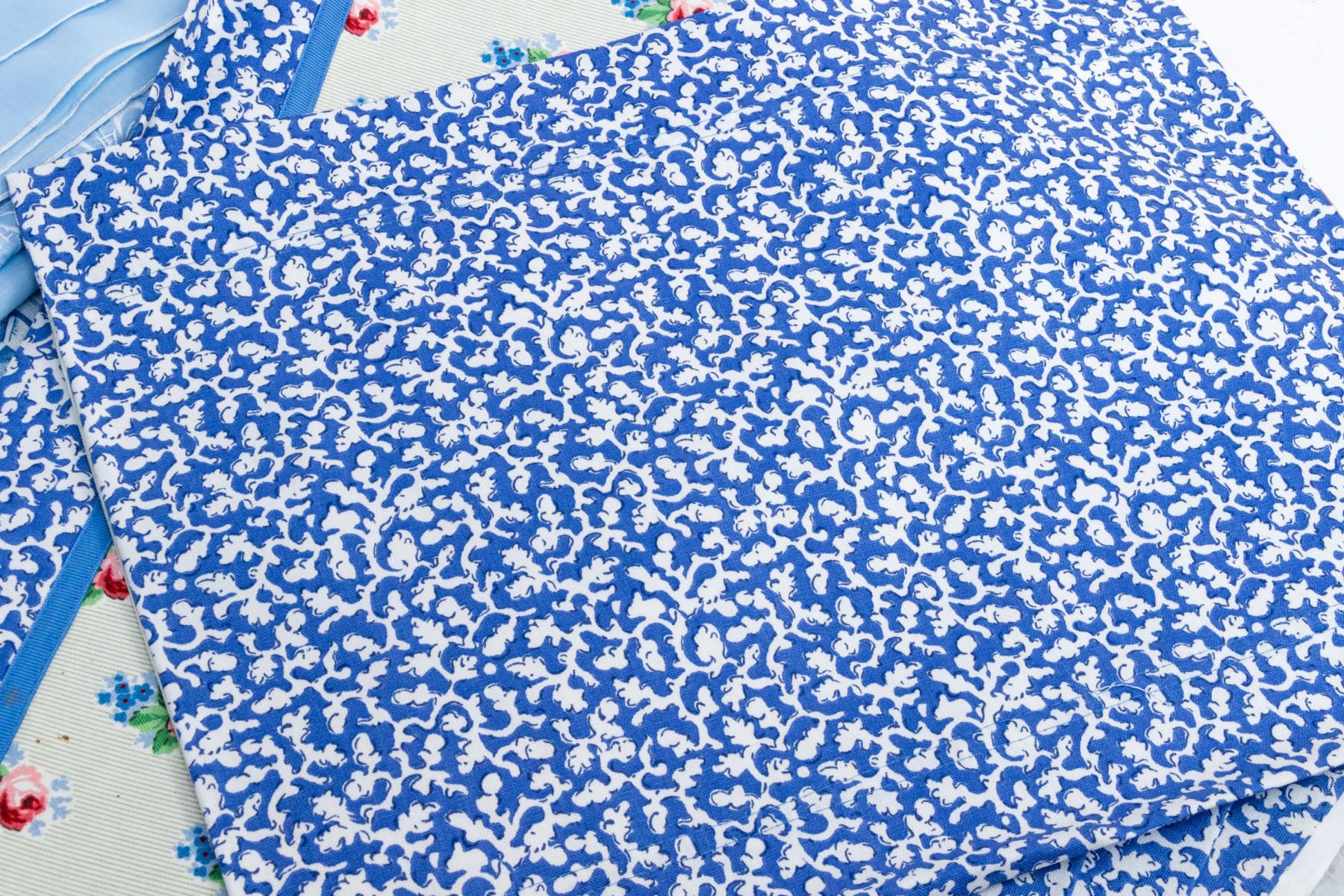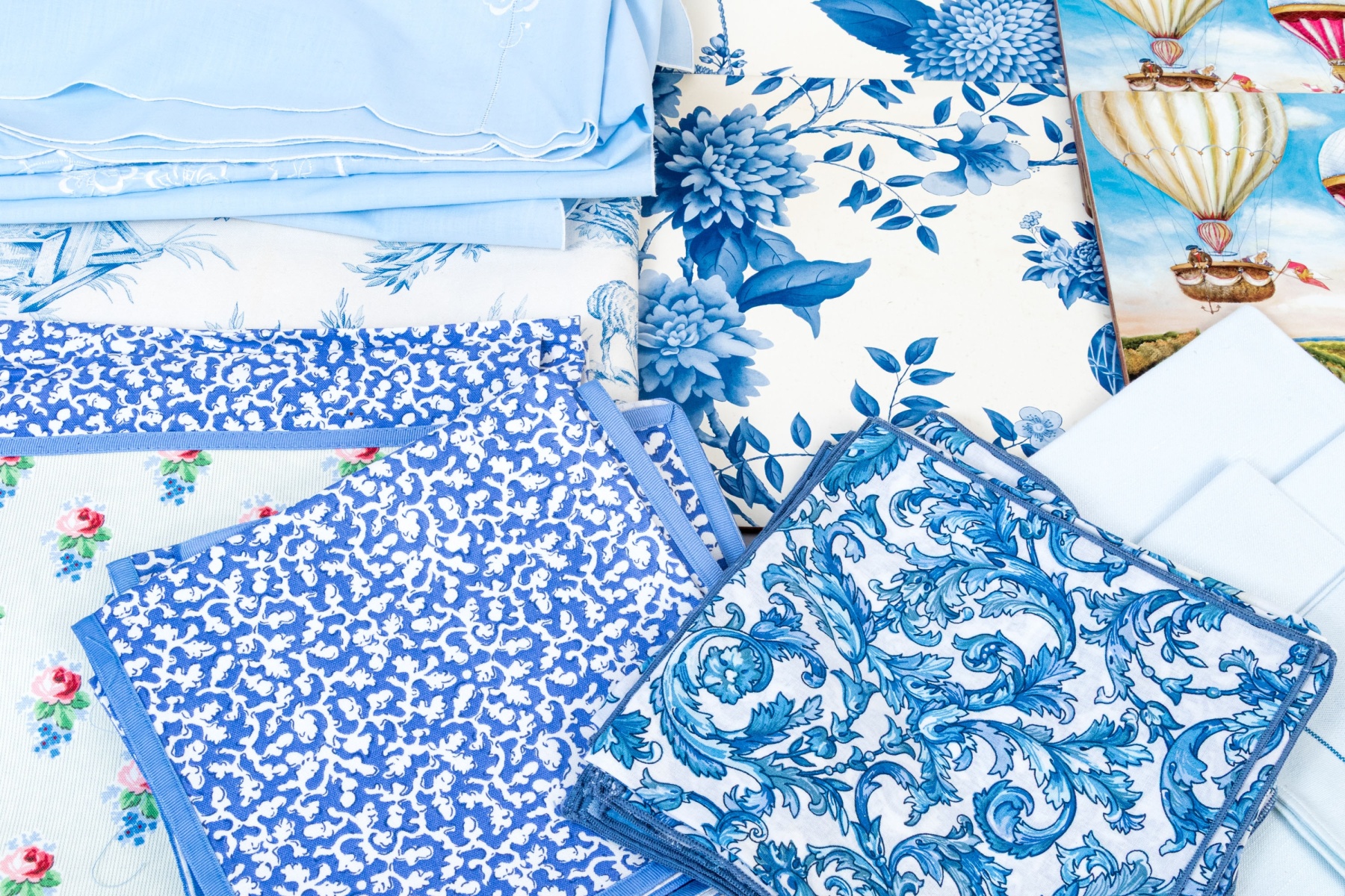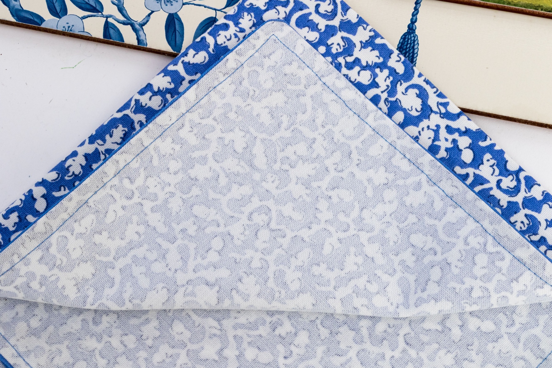 Two large quality blue and white chintz placemats: 17 x 11 1/2"