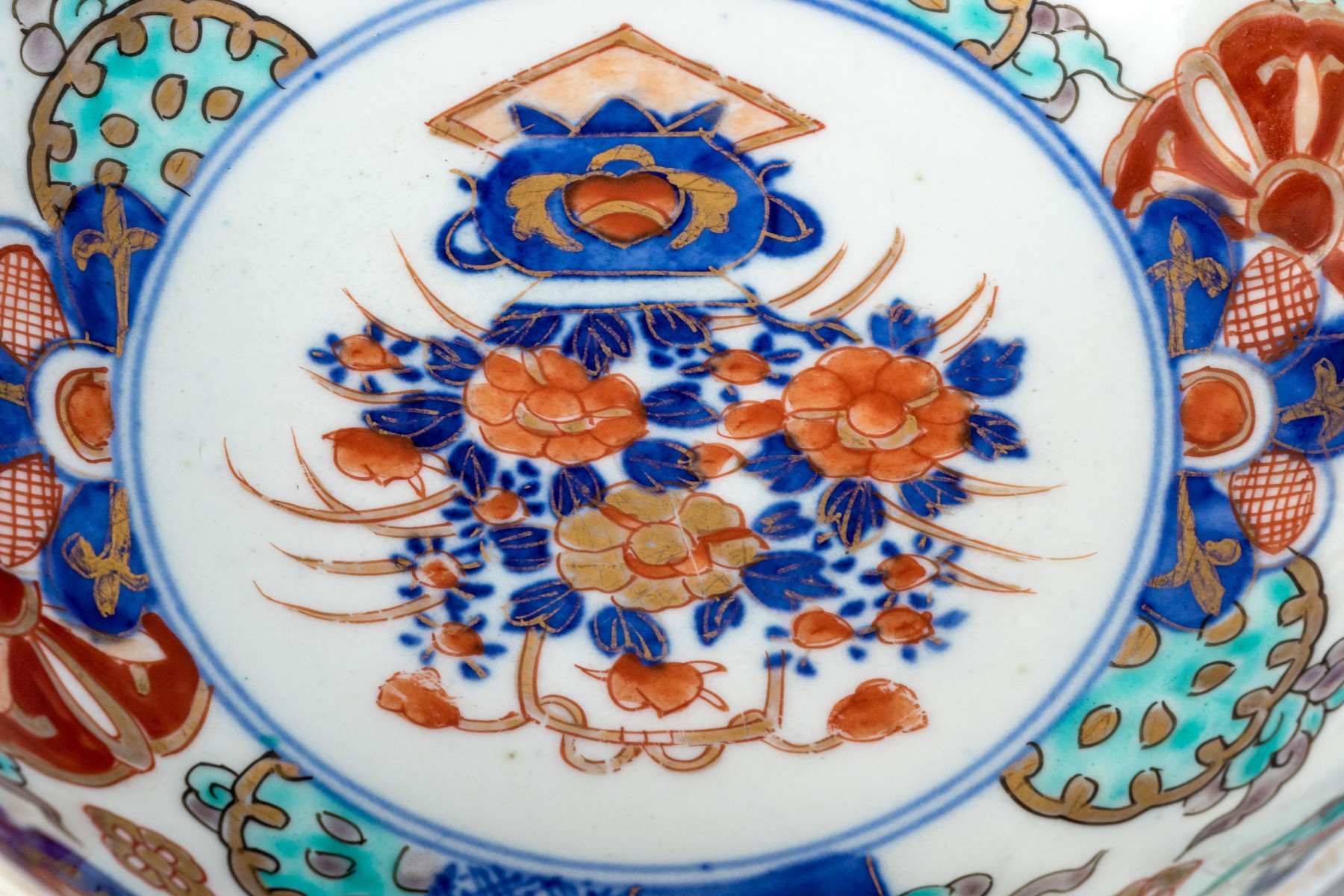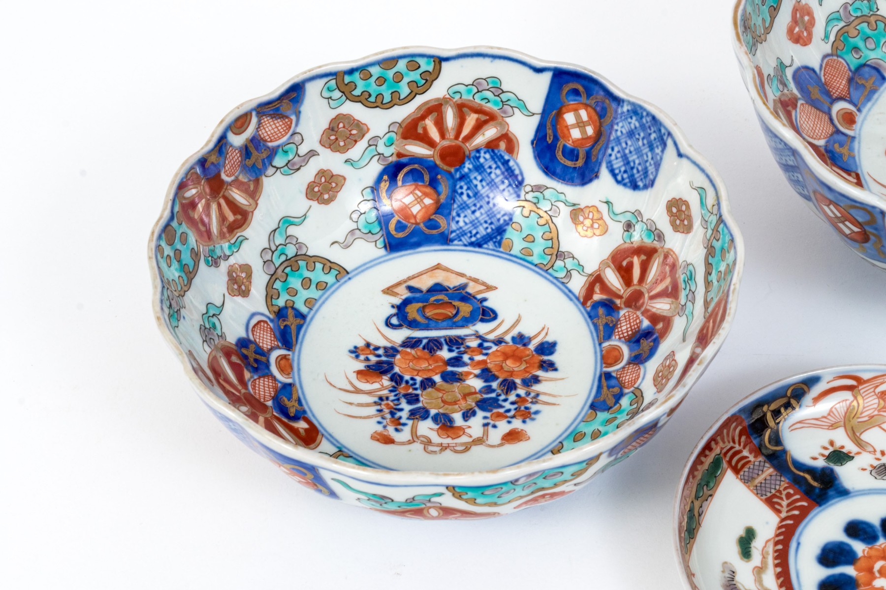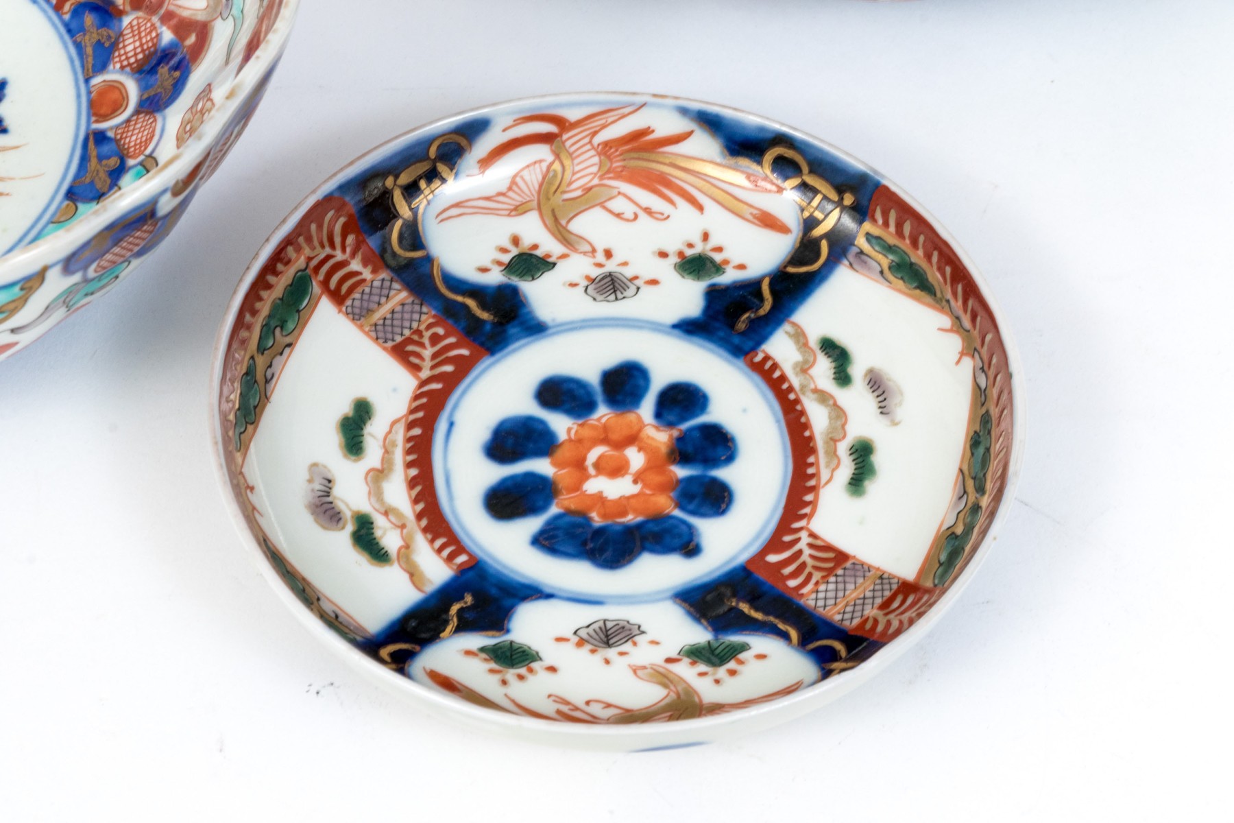 One Imari bowl with slight chip to trim edge. Please review the photos as they are part of the condition report.