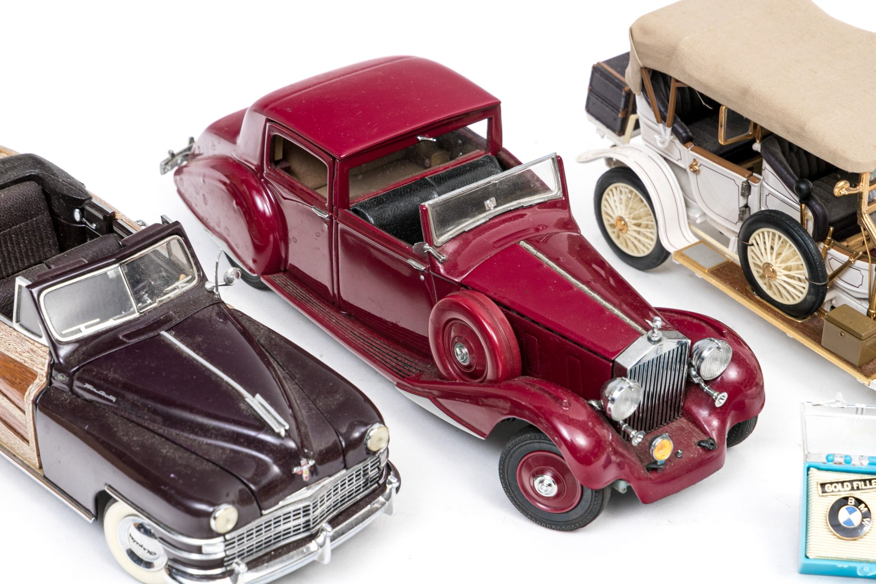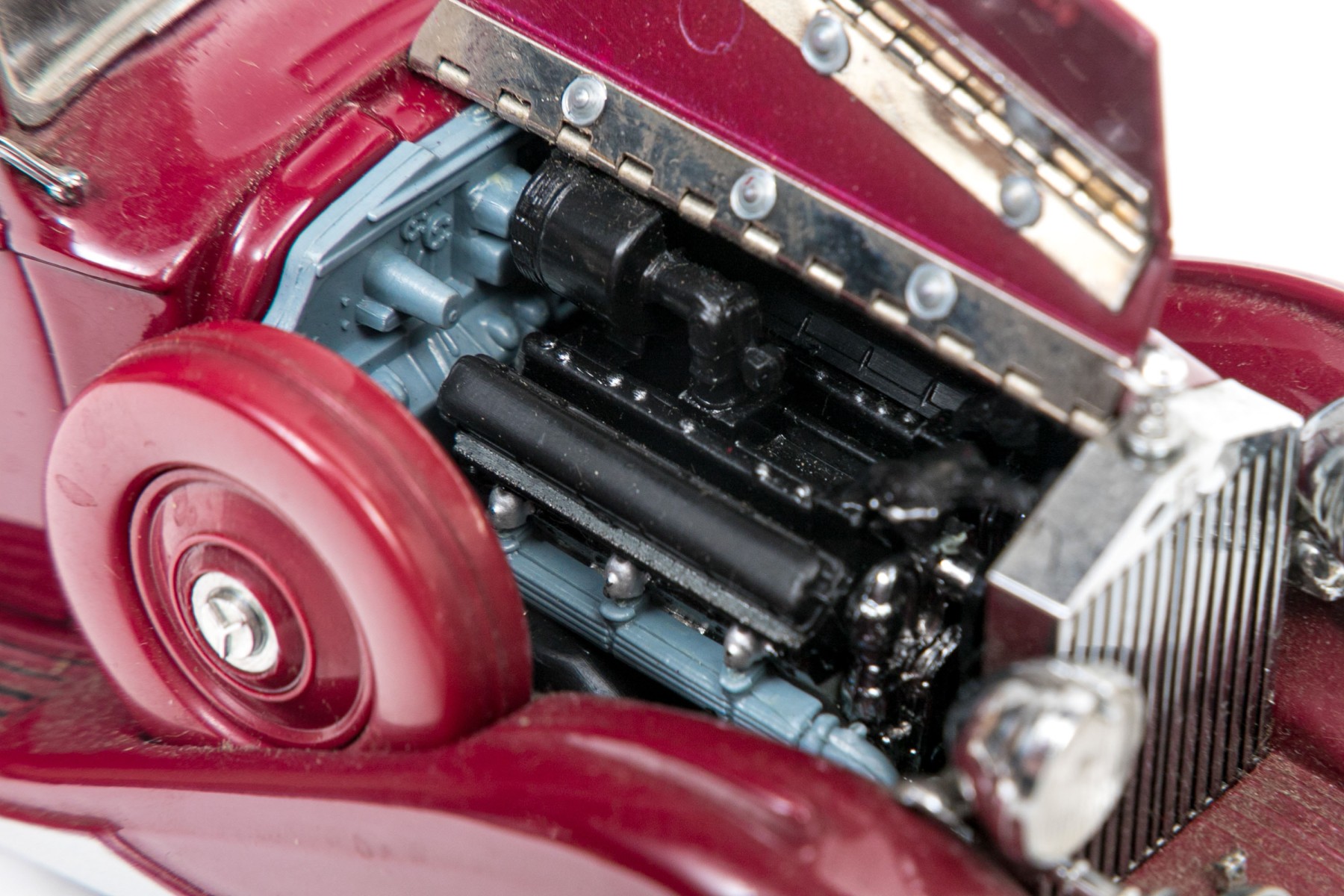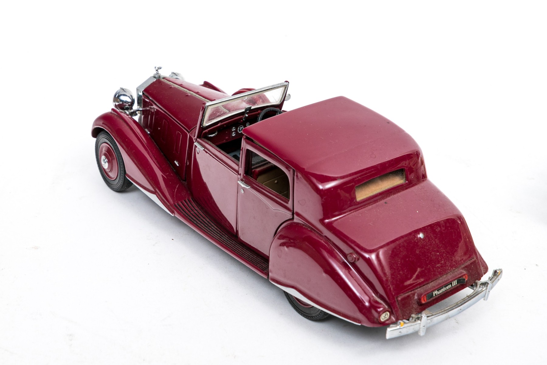 a burgundy tone Rolls Royce Phantom III by The Danbury Mint, 1991, 9 1/4" L