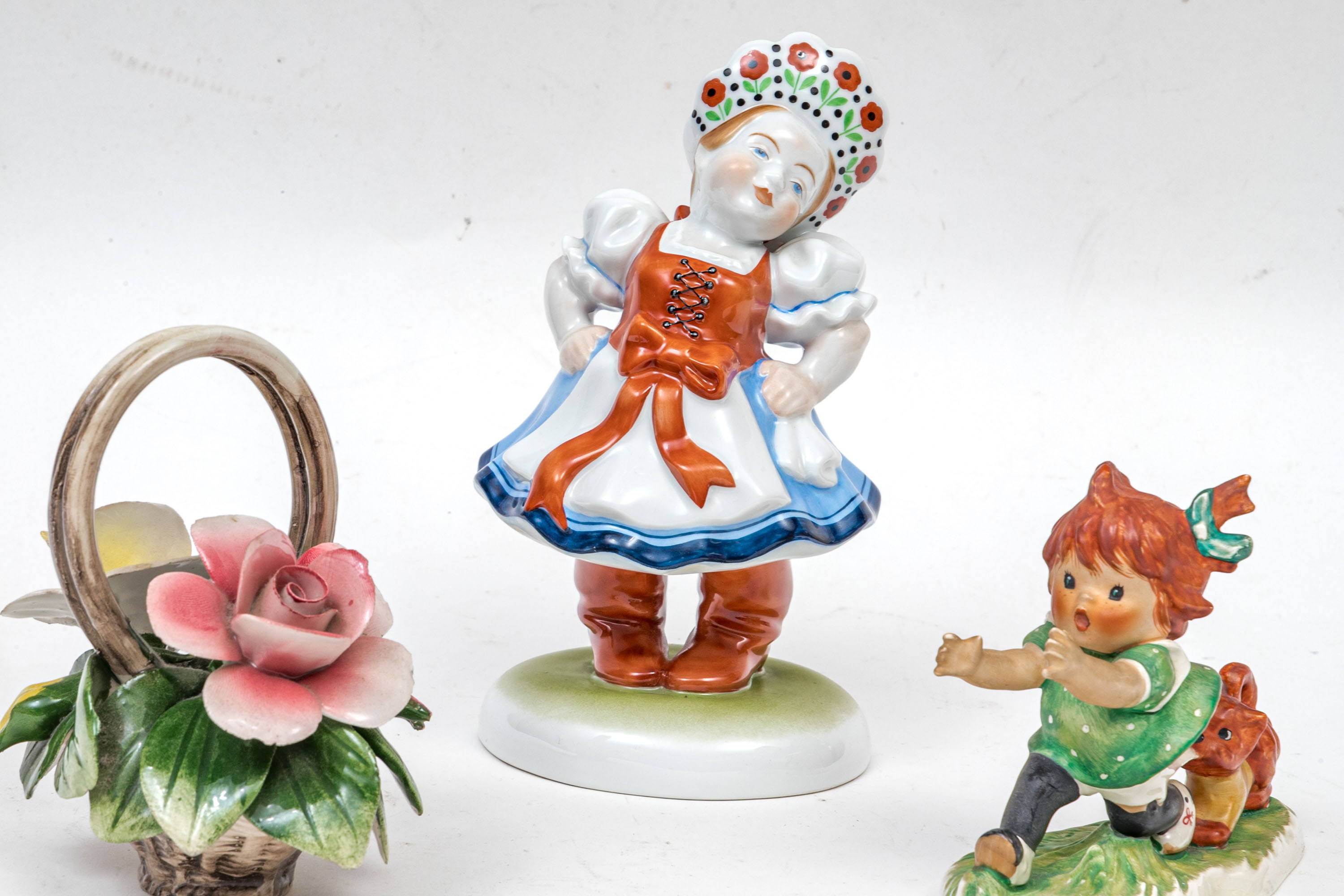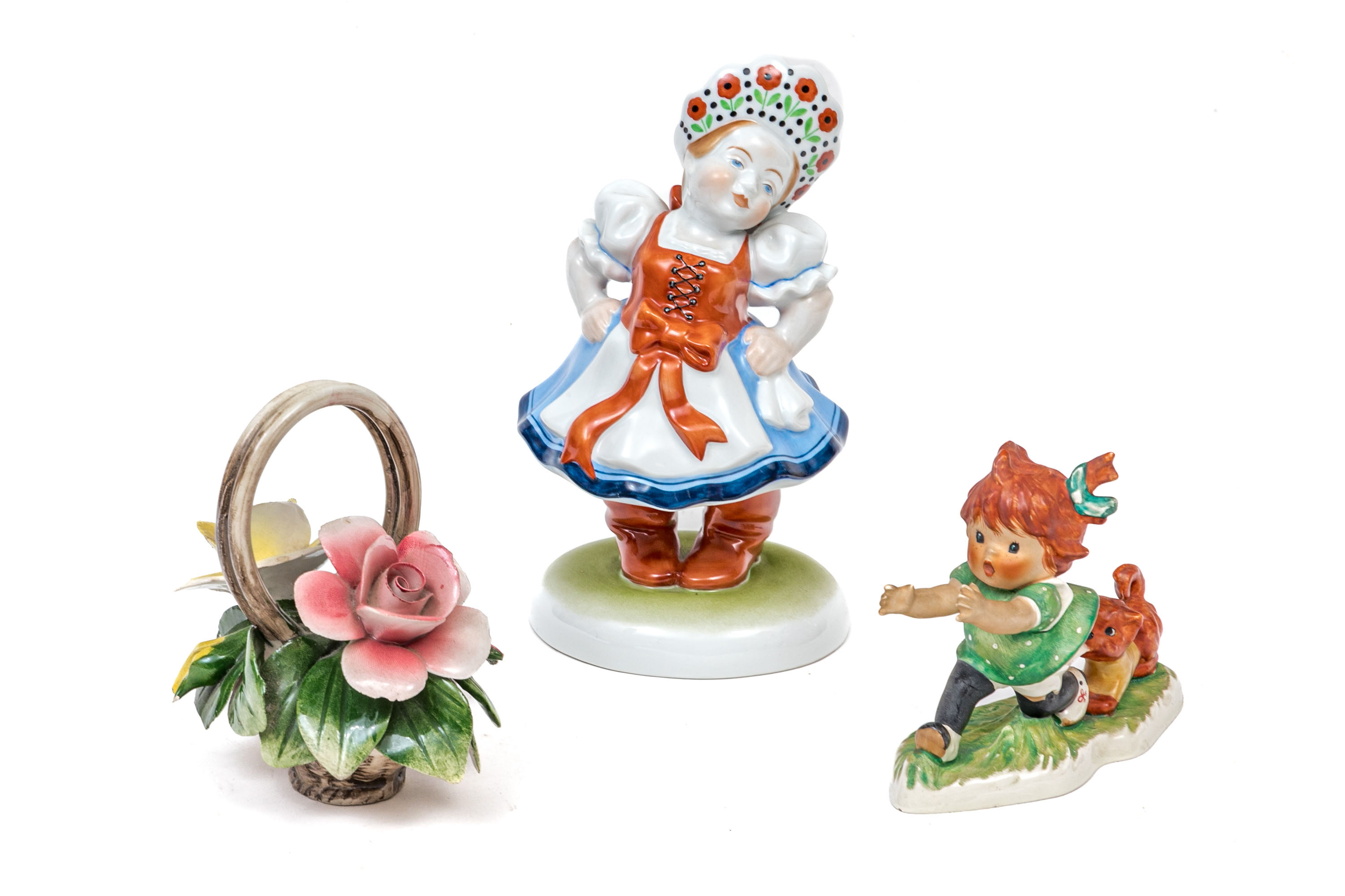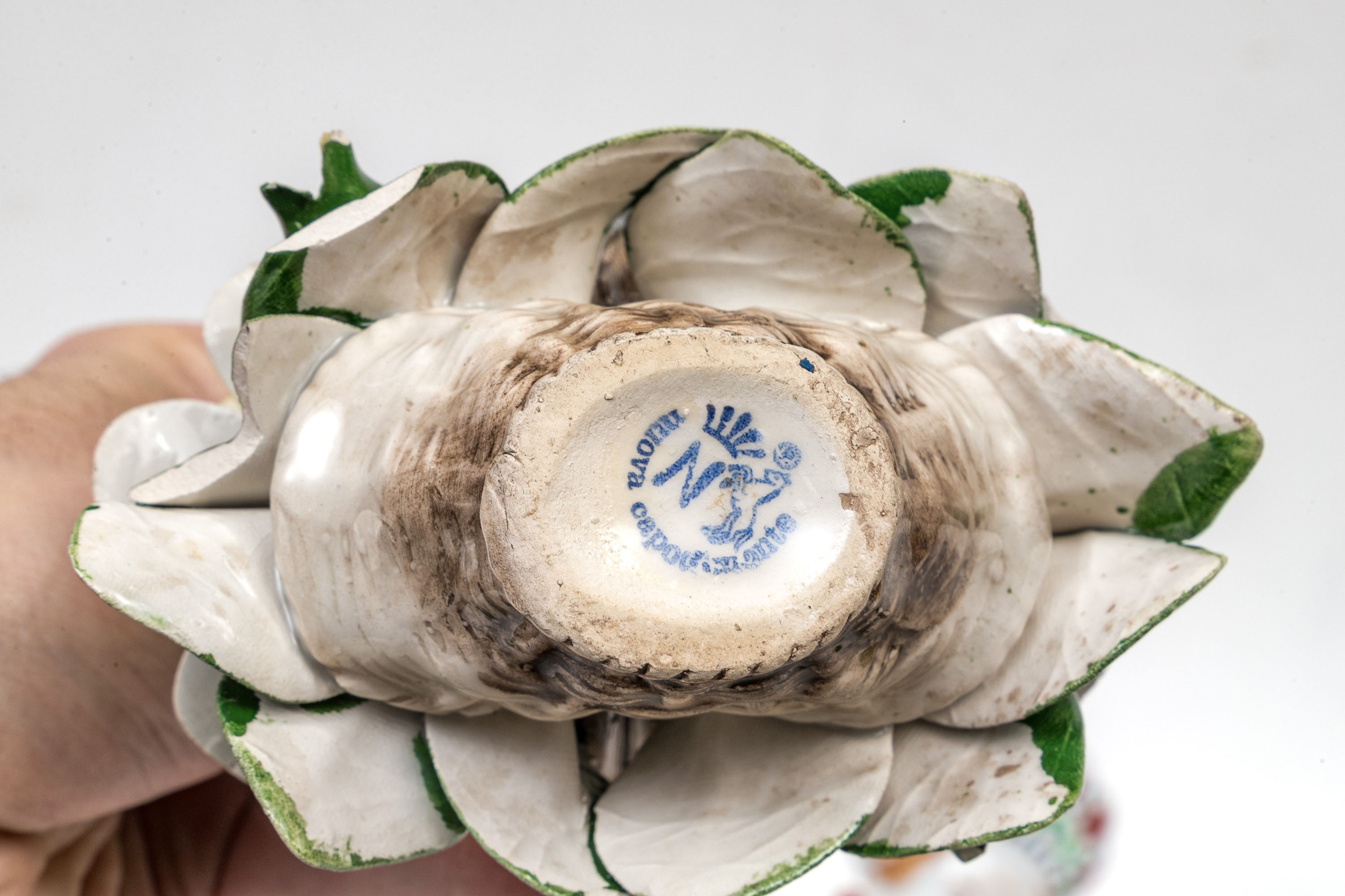 and a Capodimonte basket of pink and yellow roses, 5 3/4" H, chipped losses to two green leaves, tiny chips to rose petals and one leaf