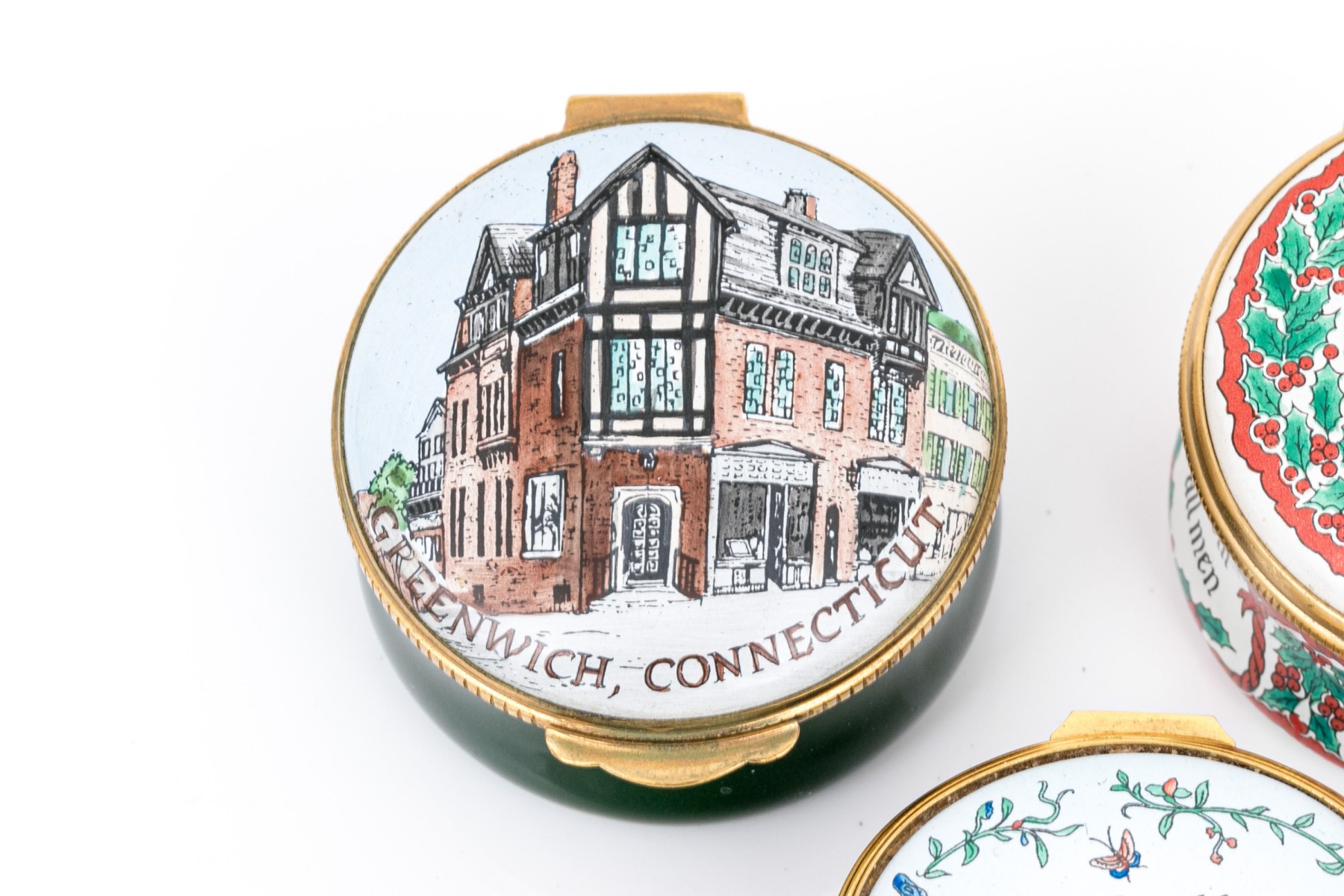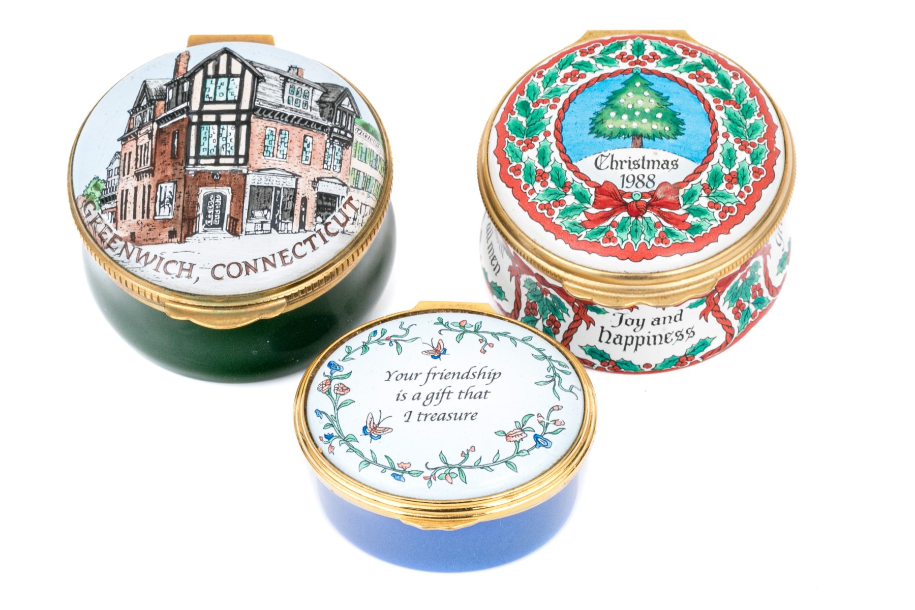 Along with a Crummles England green box with illustrating a building with label Greenwich CT on the lid. Labeled inside.