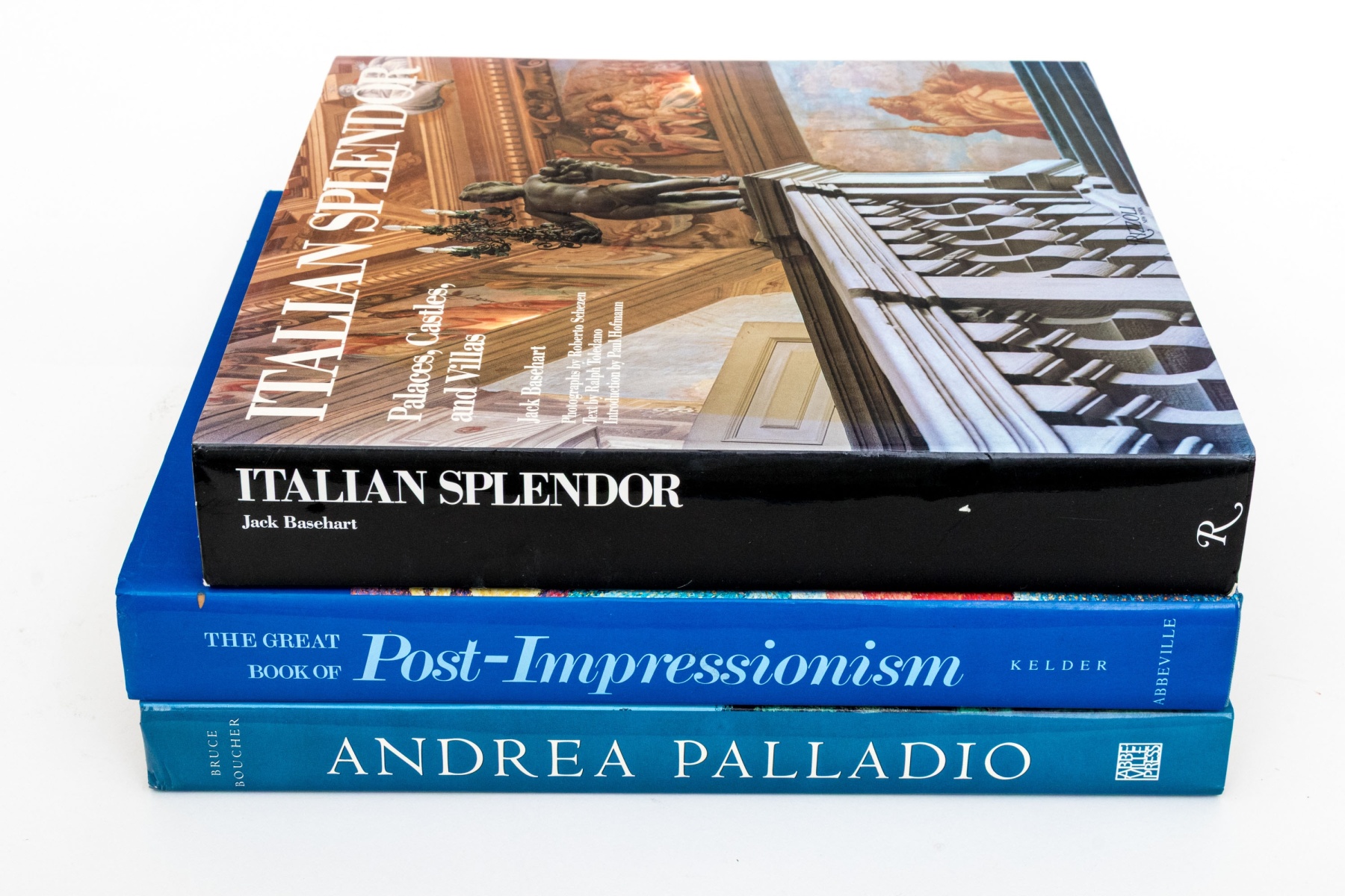 A fabulous trio of coffee table books including The Great Book of Post-Impressionism, Andrea Palladio, and Italian Splendor. All with dust jackets