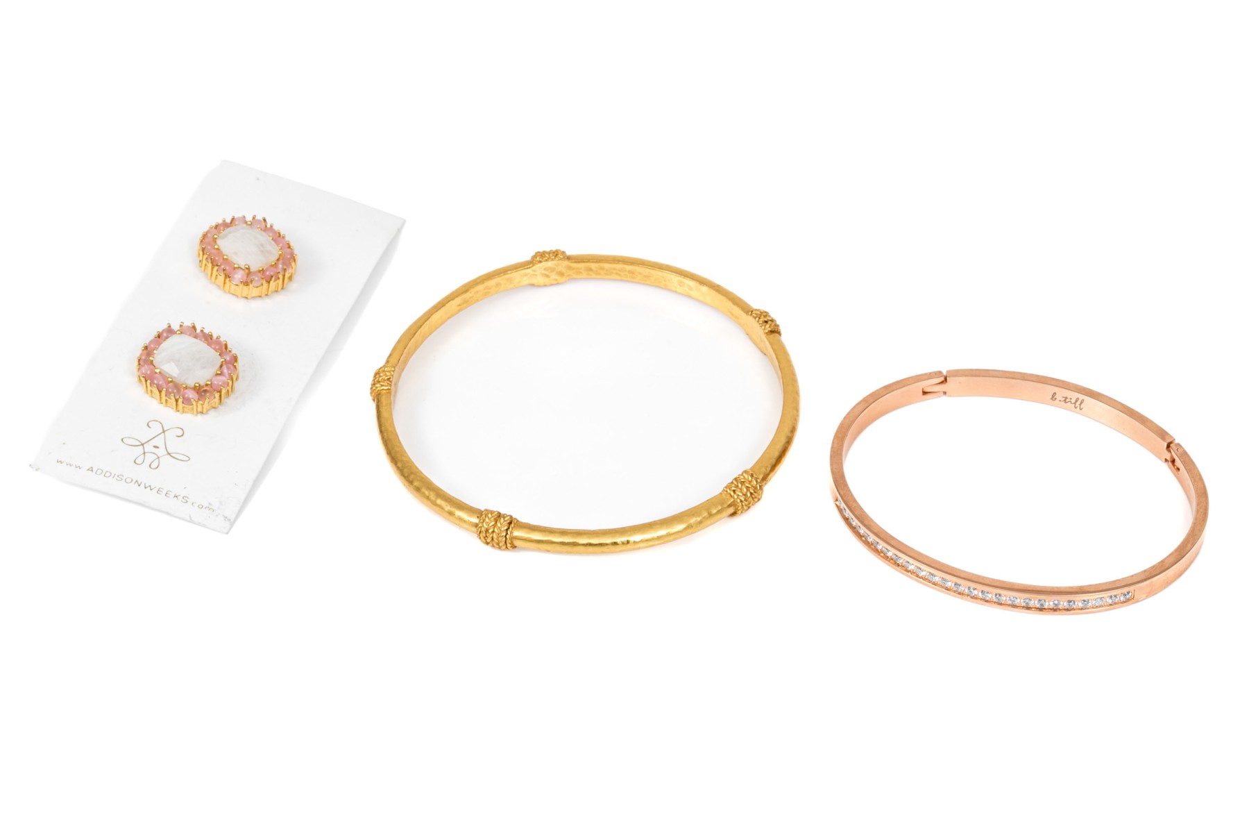 Collection Of Three Fashion Jewelry Pieces, Including Addison Weeks Earrings #324814. Black Rock Galleries provides high end estate liquidation services through online estate auctions and a 50,000 sq ft designer showroom. estate liquidator, estate sale, online auction, antiques, fine art, liquidation, clean outs, auction, consignment, interior design, fine jewelry, collectibles, appraisals, estate appraisals, estate services, decor, furniture, furniture consignment, antique center, consignment shop. We offer appraisal services and specialize in fine art, jewelry, antiques and decorative arts. Sell with us. Black Rock Galleries is the tri-state's largest estate liquidator serving New England and the greater New York City area. We are the trusted source for expert appraisals, auction services, estate sales, and consignments. Black Rock Galleries is the east coast's largest and most trusted estate liquidator, with locations in Connecticut, greater Boston, MA and Raleigh, NC, Fairfield, Southport, Apex, TX. We are the best source for expert appraisals, auction services, estate sales and consignments. We have served thousands of families and estates with compassion, professionalism and expertise. BRG works with attorneys, executors, realtors and families to bring the greatest return on personal and estate property in the current market. Our unique combination of services make us the easy choice to get the job done in a timely and stress-free manner. We are with you from the initial consultation to the final clean out. Our house-built online auction software platform offers clients a dynamic approach to liquidating their personal property. This venue is most successful in bringing the best return with the least amount of disruption for our clients. See our services page for a complete description of this offering. Collection Of Three Fashion Jewelry Pieces, Including Addison Weeks Earrings #324814