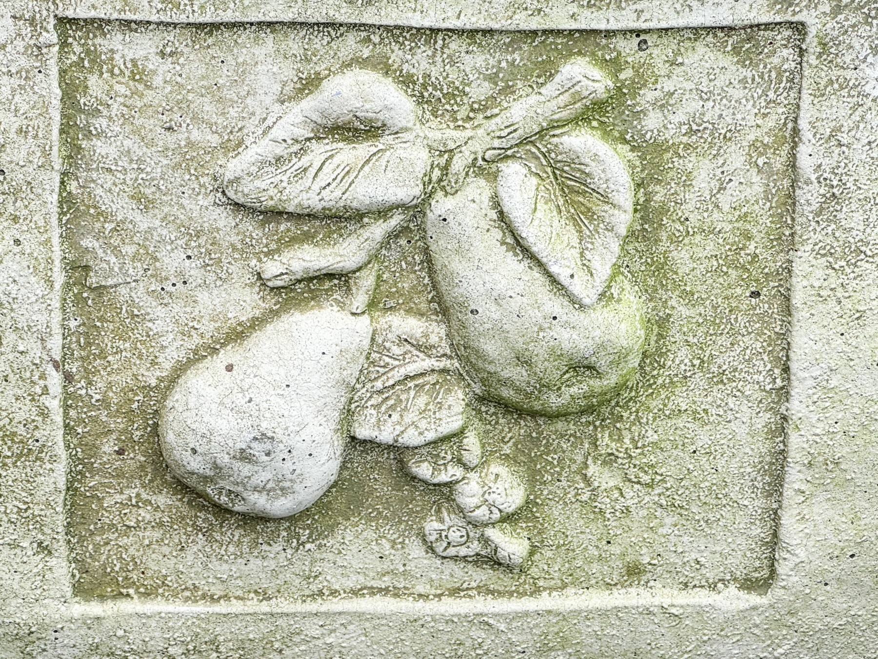 Two with rough carved finish, one with fruit on vine motif raised in relief.