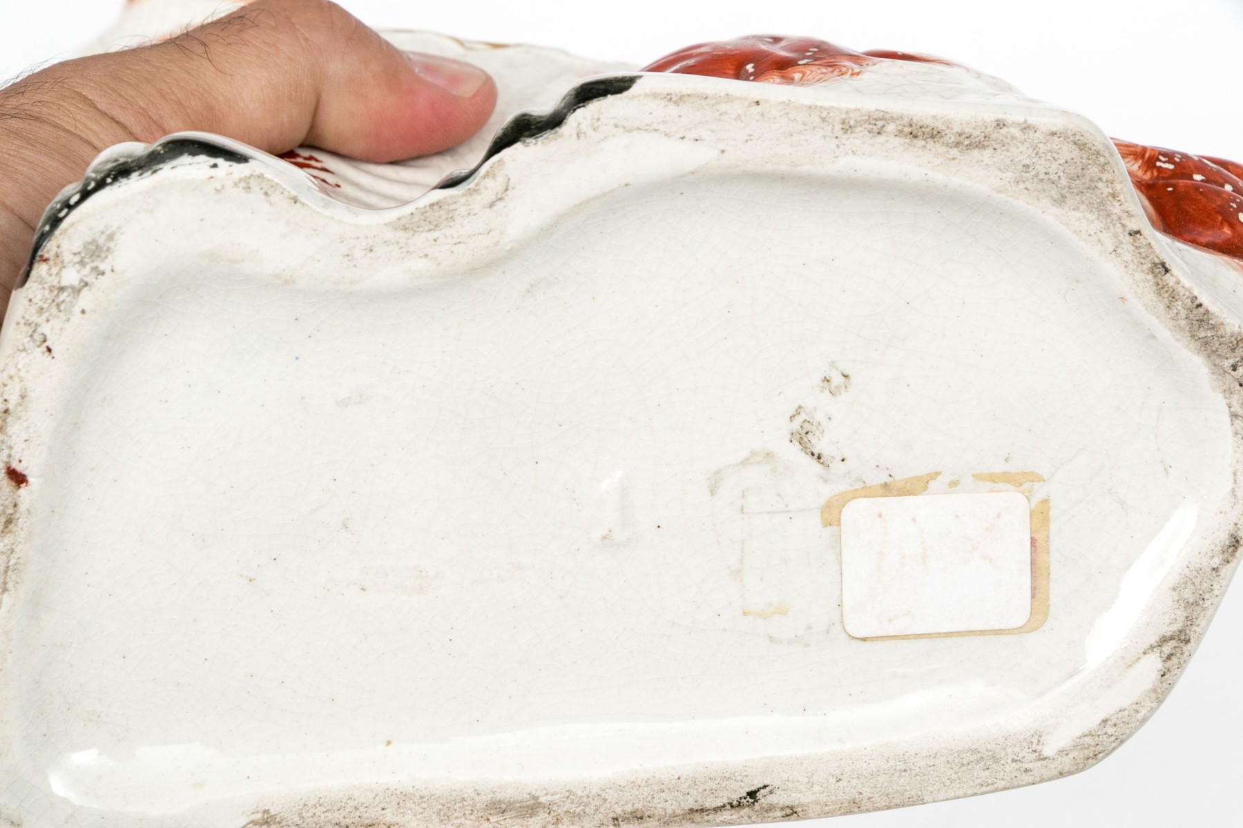 Condition: well worn gilt details and marks on the head, added gray glaze along the feet.