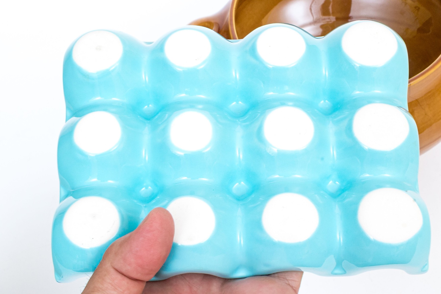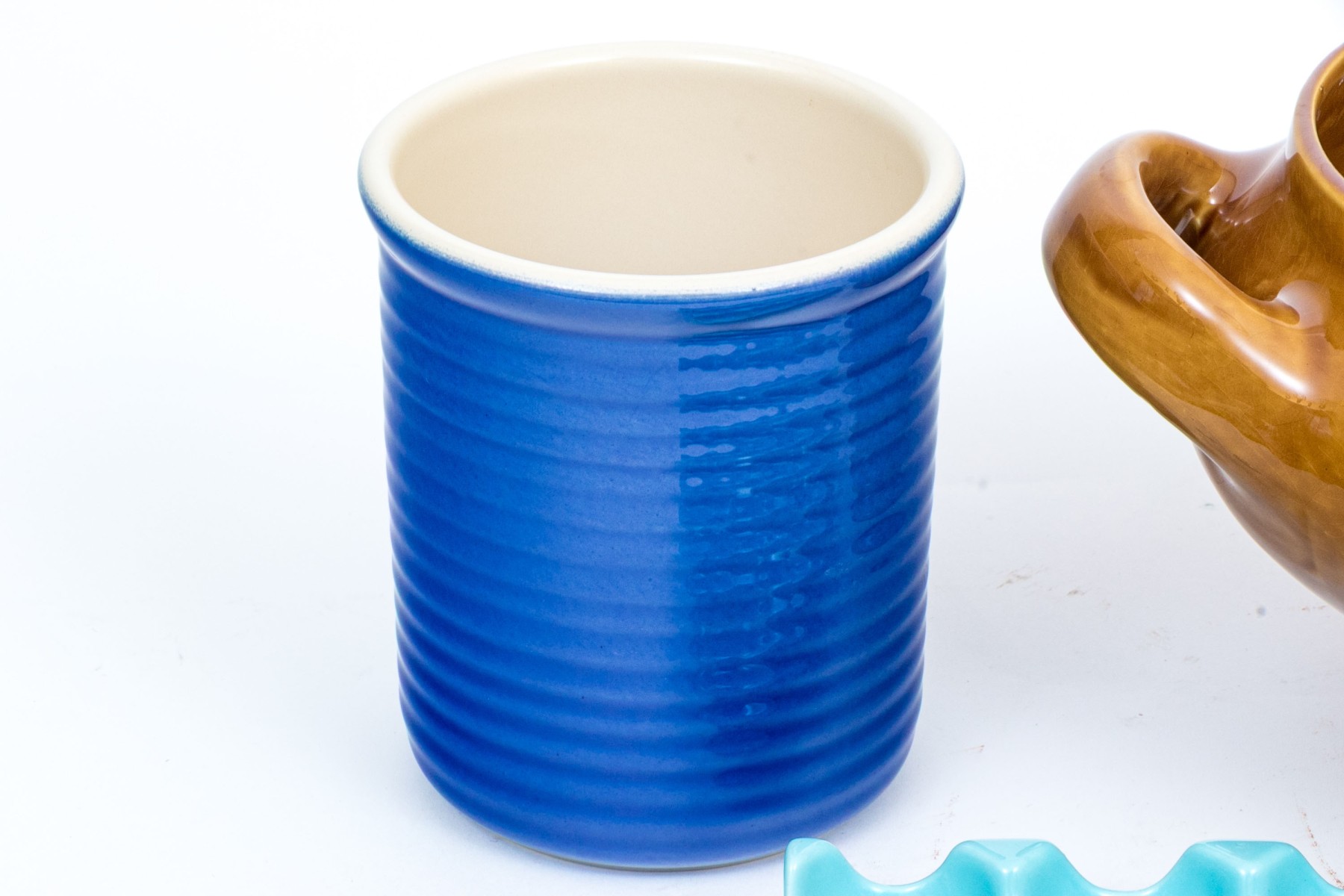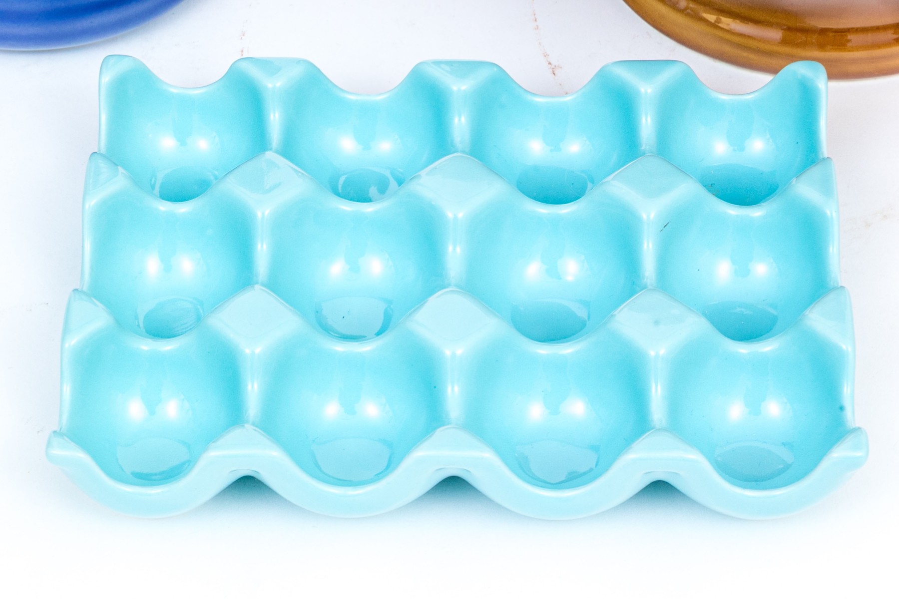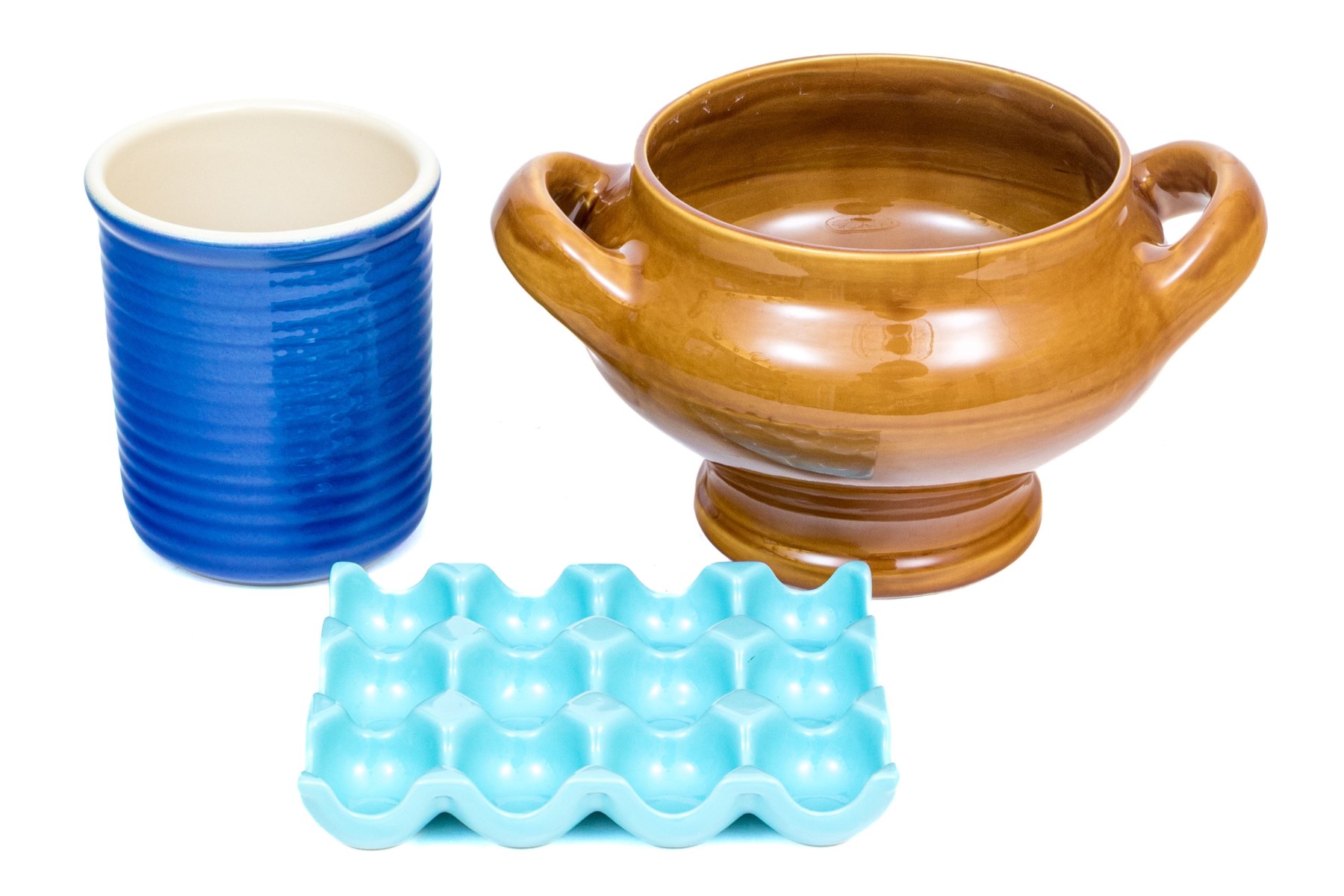 Collection of three stoneware pieces, including and egg holder.