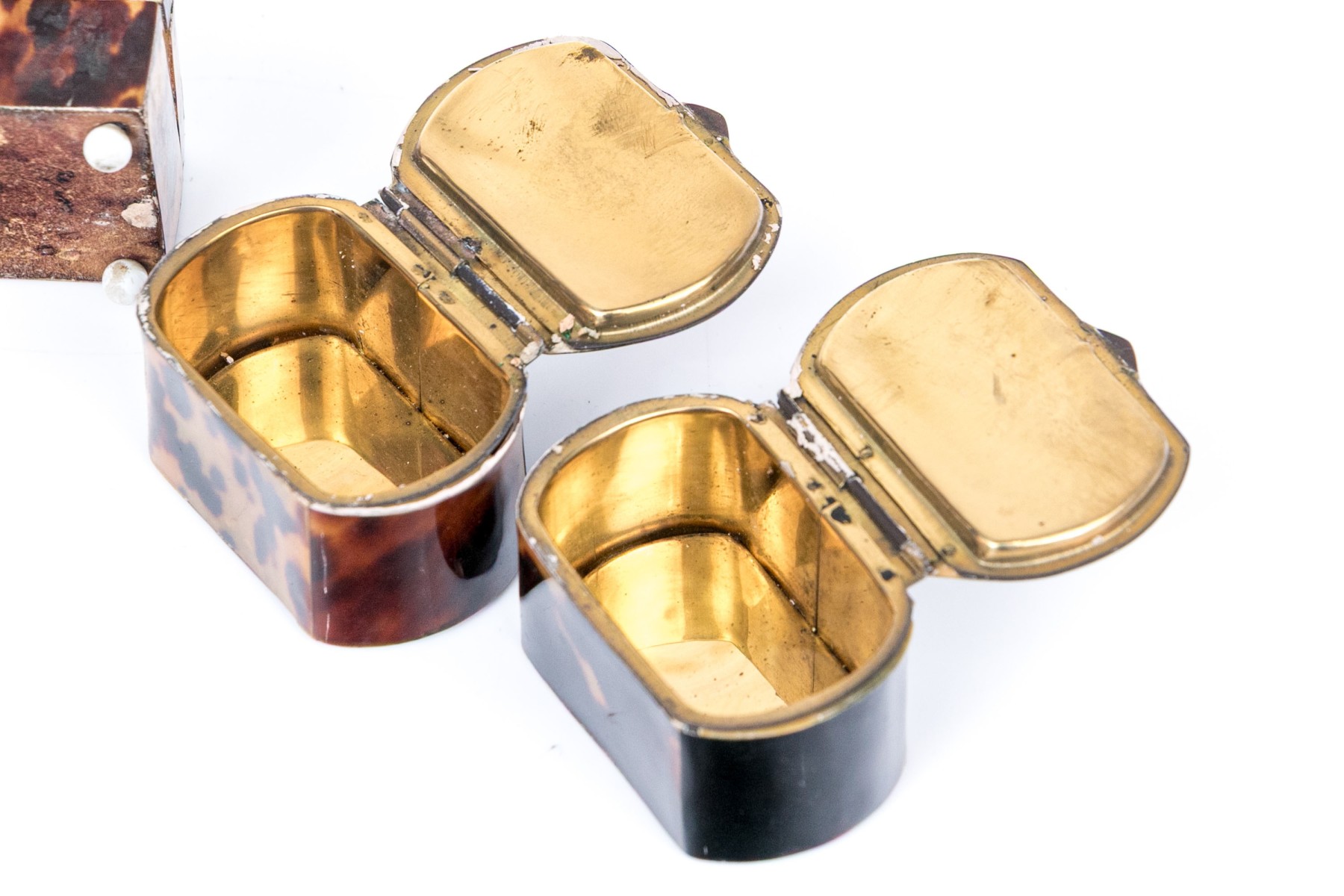 a pair of boxes with curved ends and shaped hinged lids with vermeil interiors.