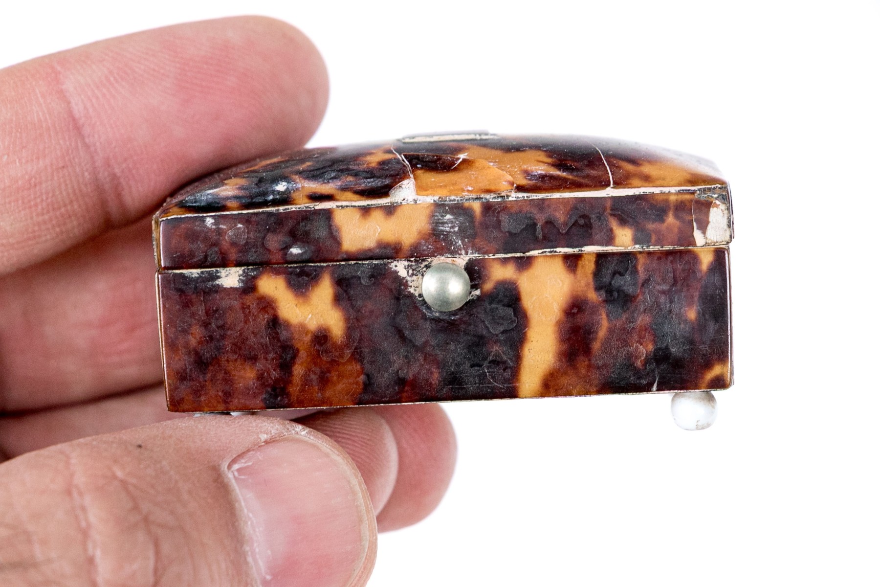 Condition: The rectangular box is worn on the base and has cracks and veneer losses on the lid.