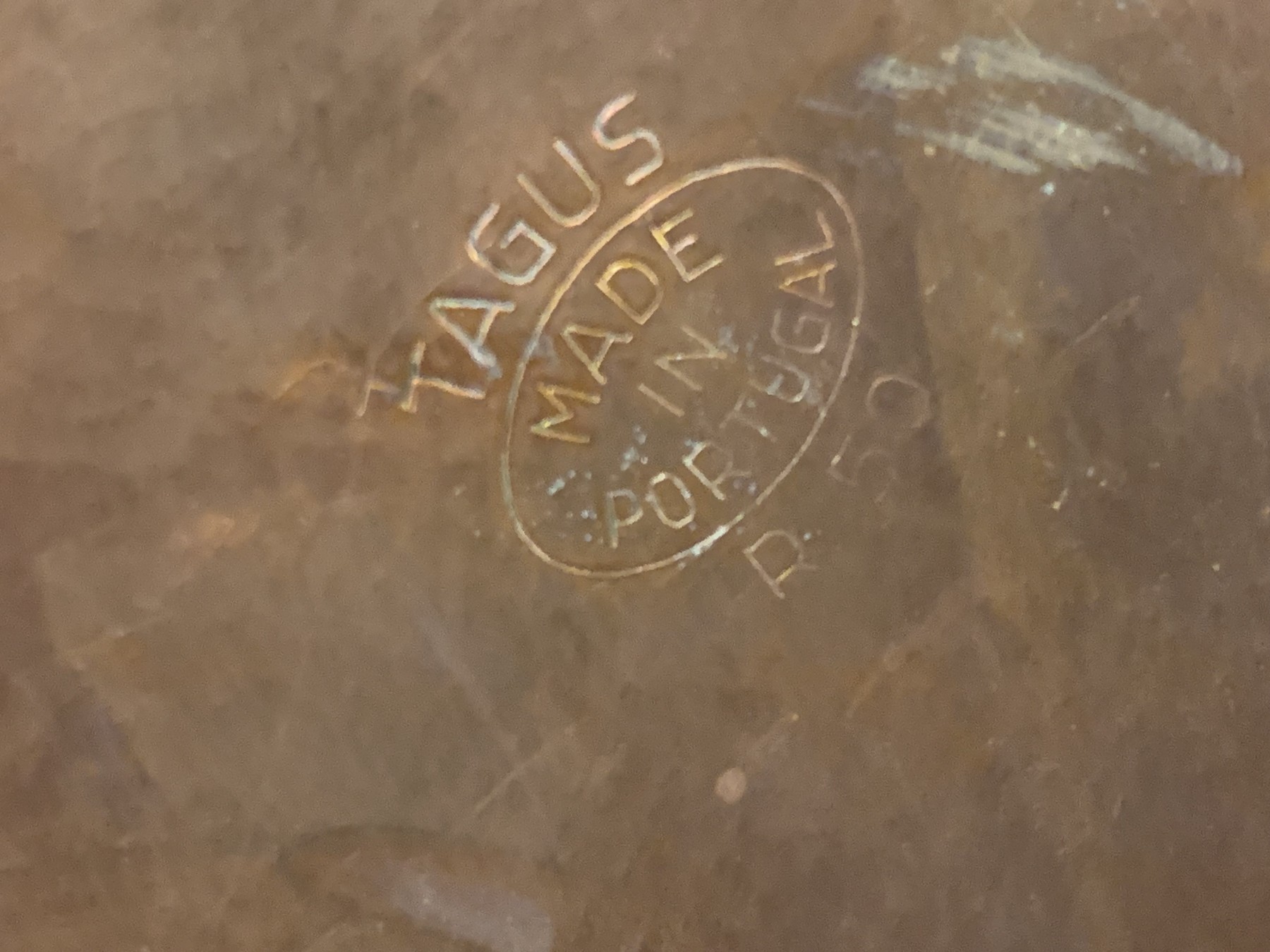 Smallest with wood and brass retracting handle, stamped Tagus, Made in Portugal on bottom.