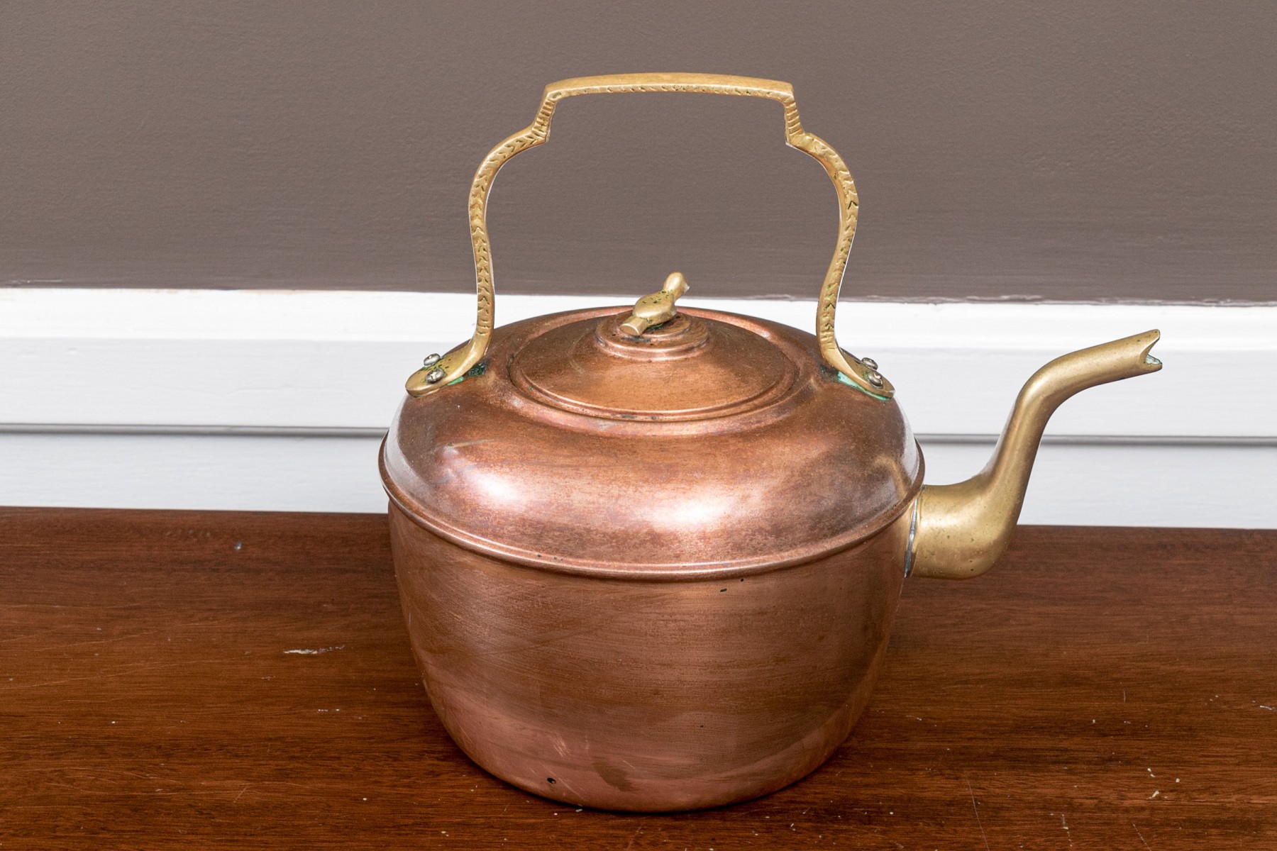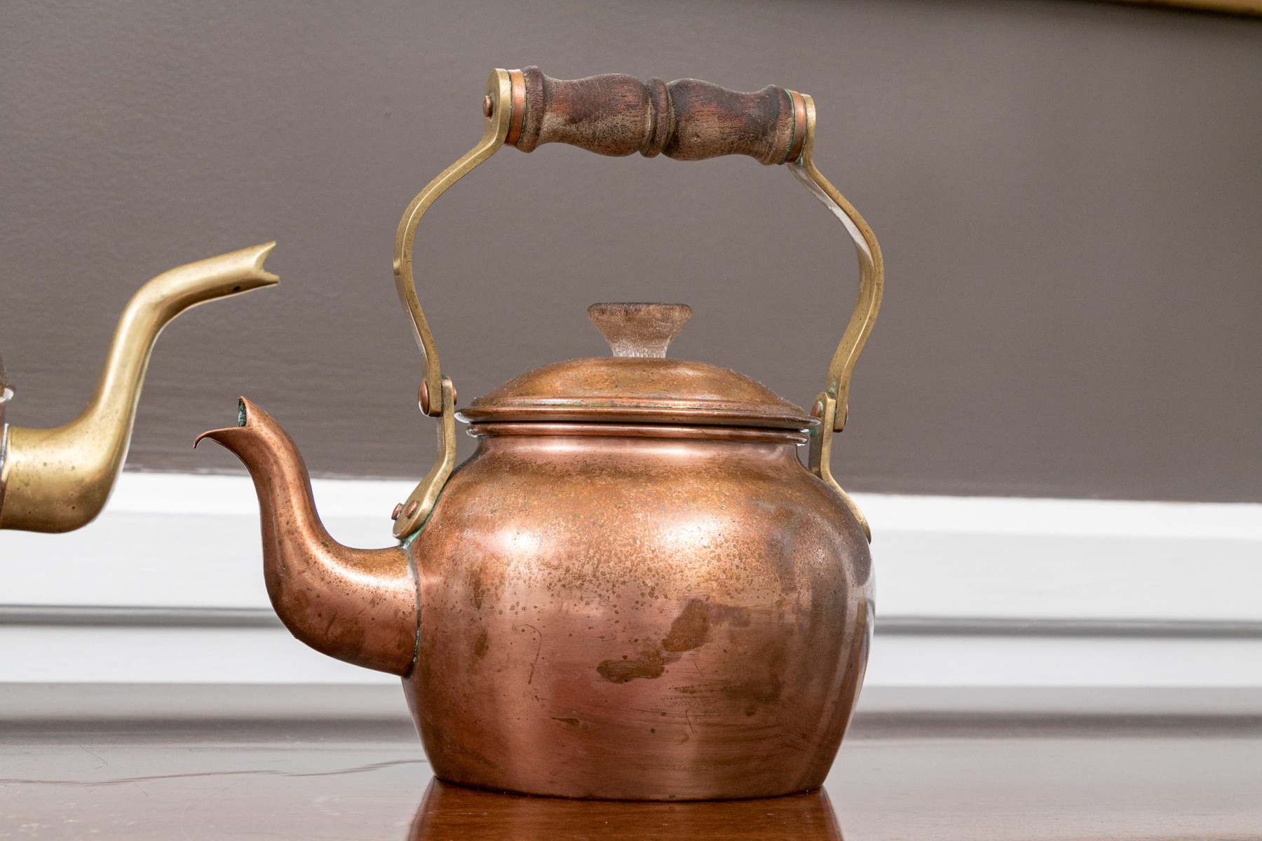 Largest - with brass spout and fixed handle, unbranded.