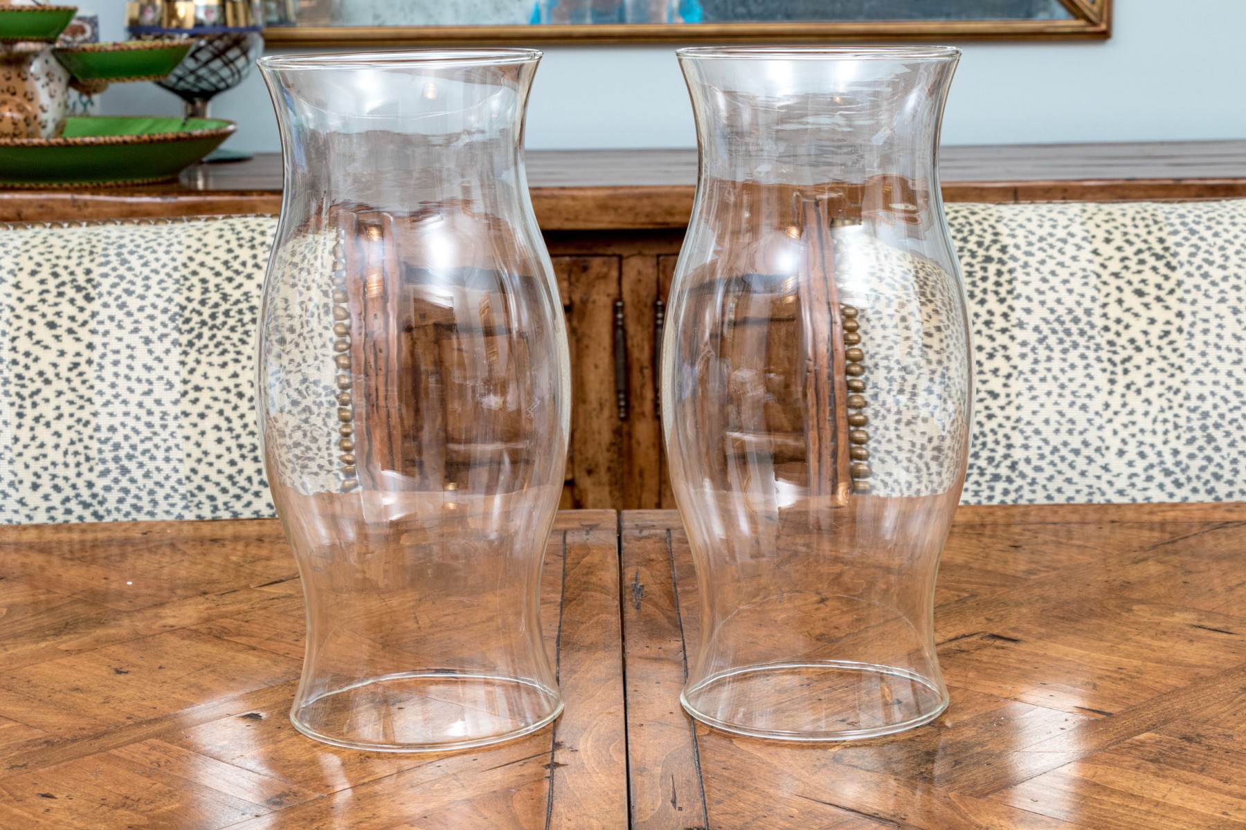 - pair of glass hurricane shades