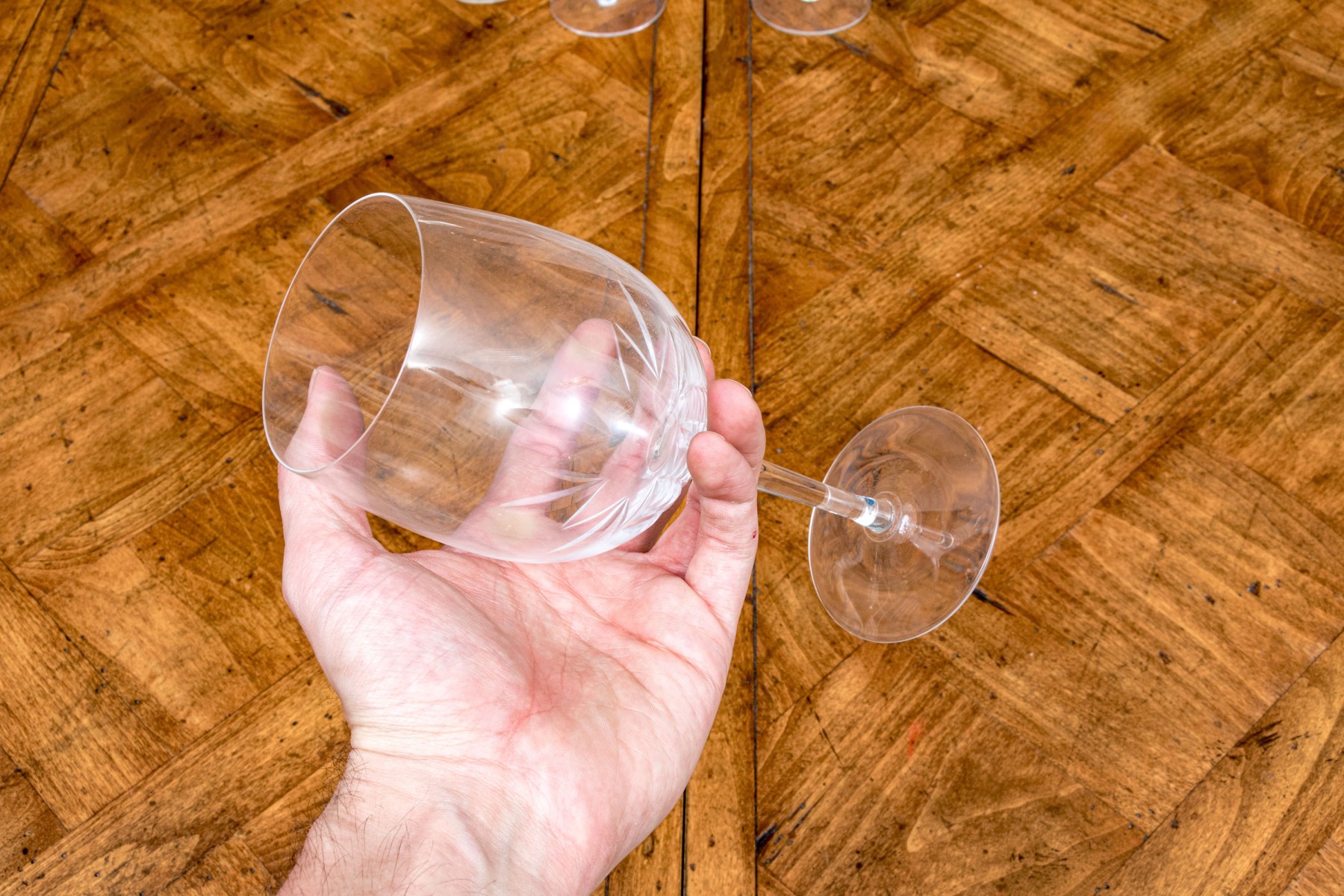 - 7 glass stemmed wine glasses marked on the base in the starlight pattern
