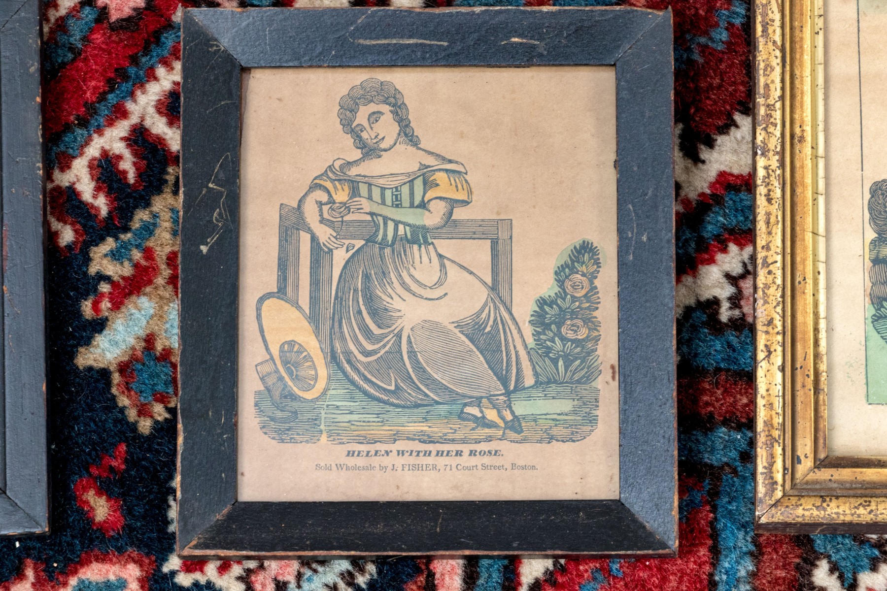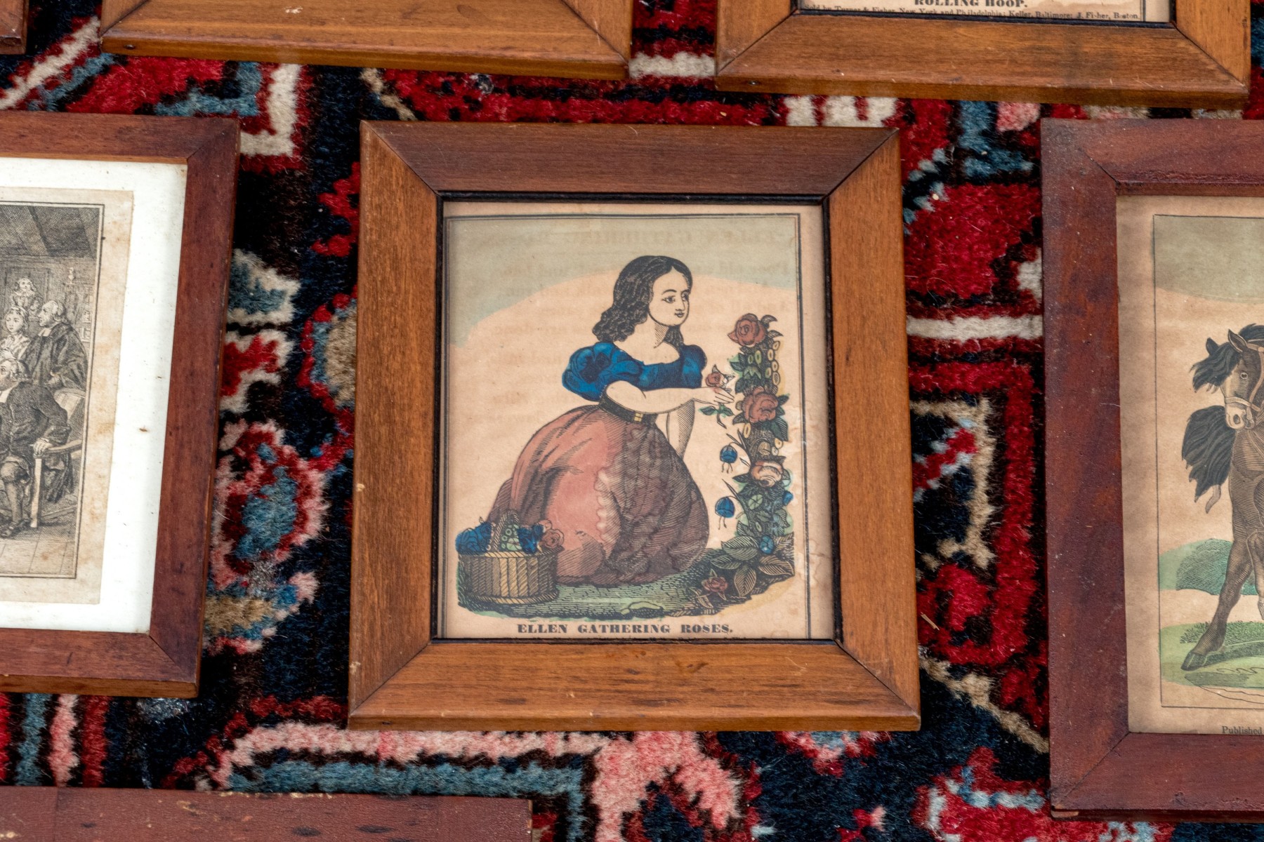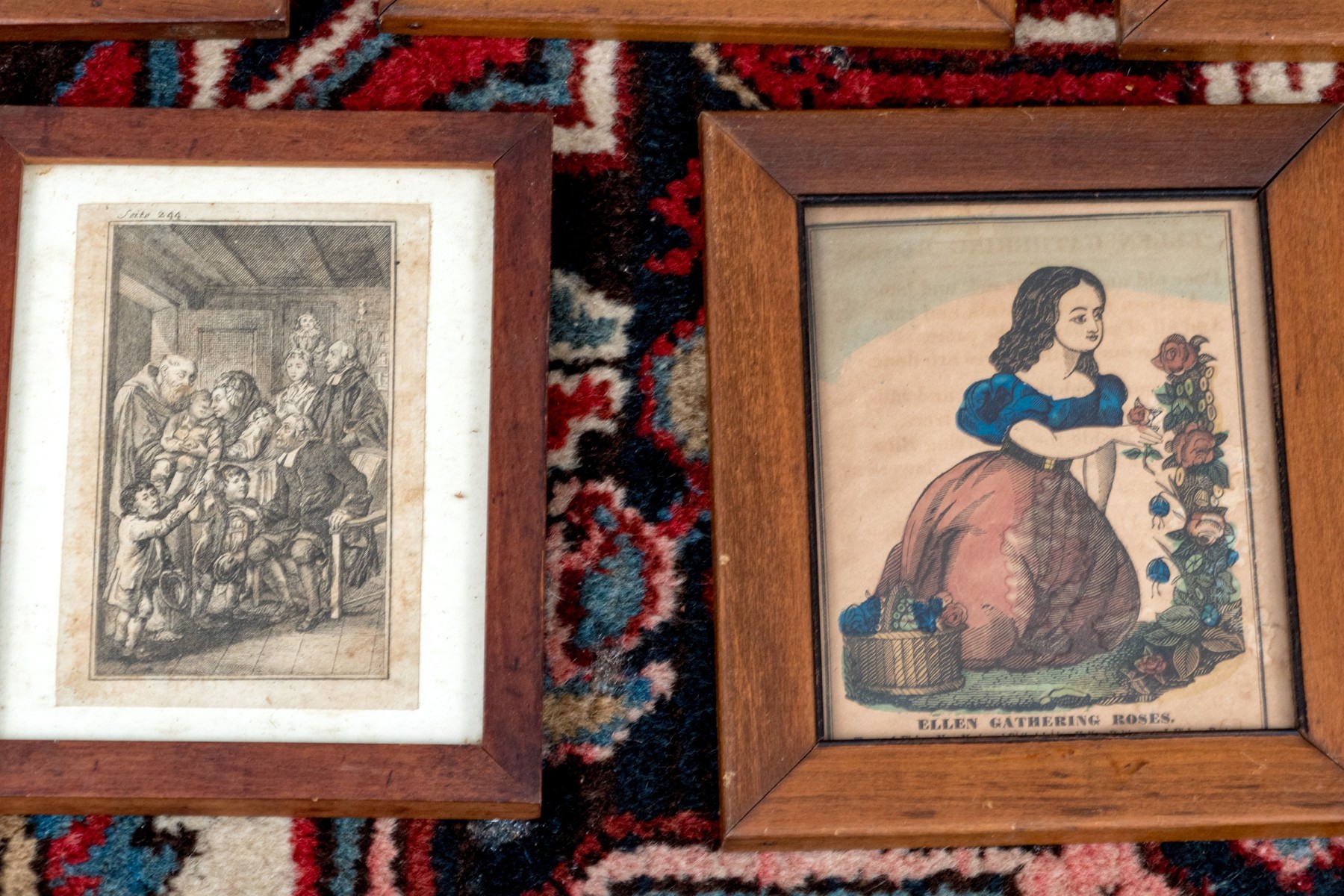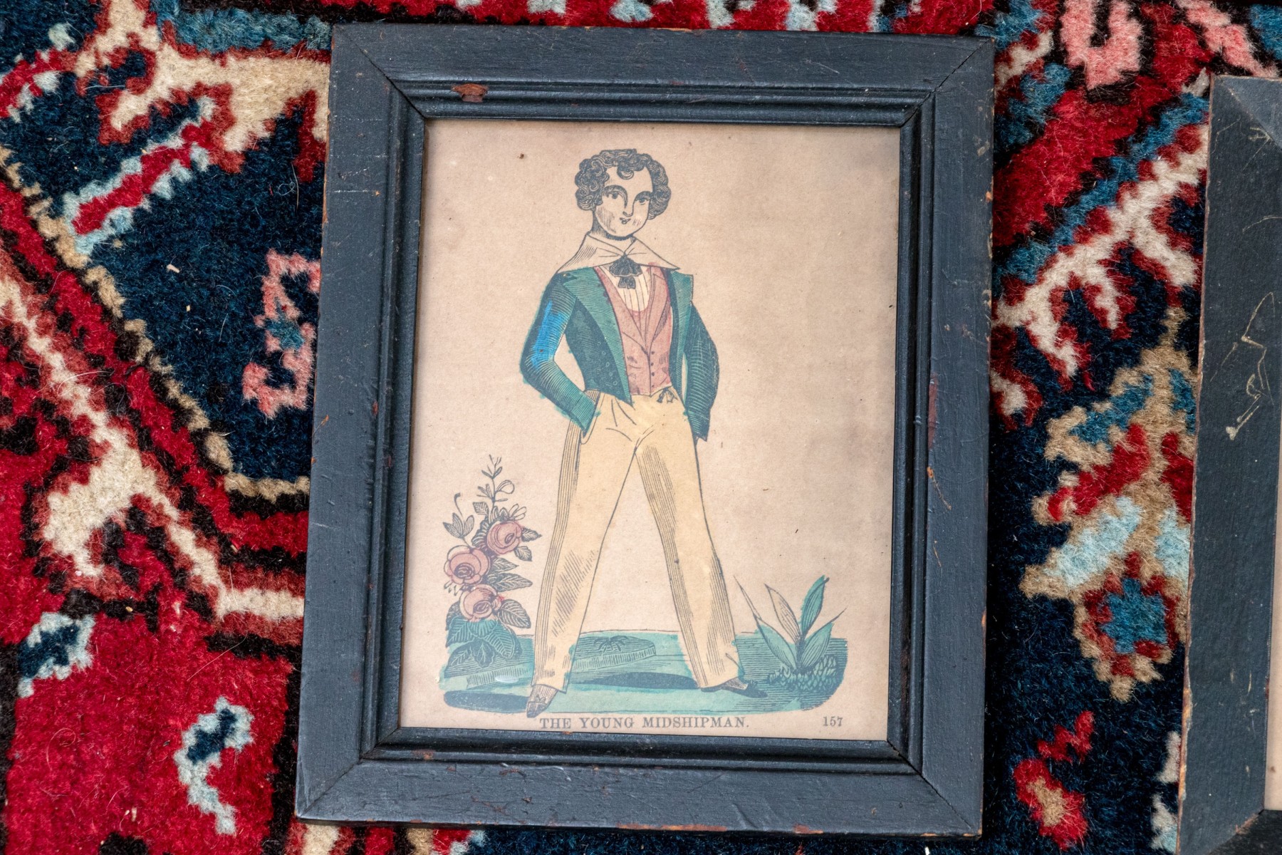 An excellent assortment of twenty-four antique hand-colored prints depicting various figures in fashionable attire, all framed. most all are hand colored.