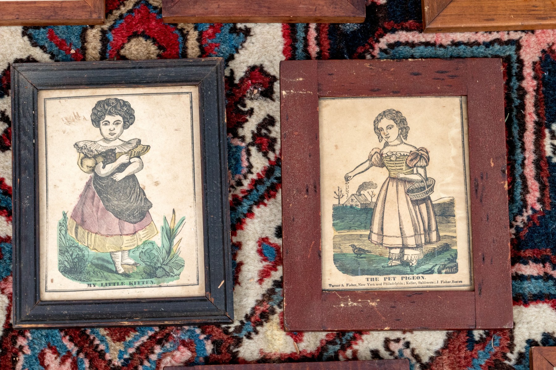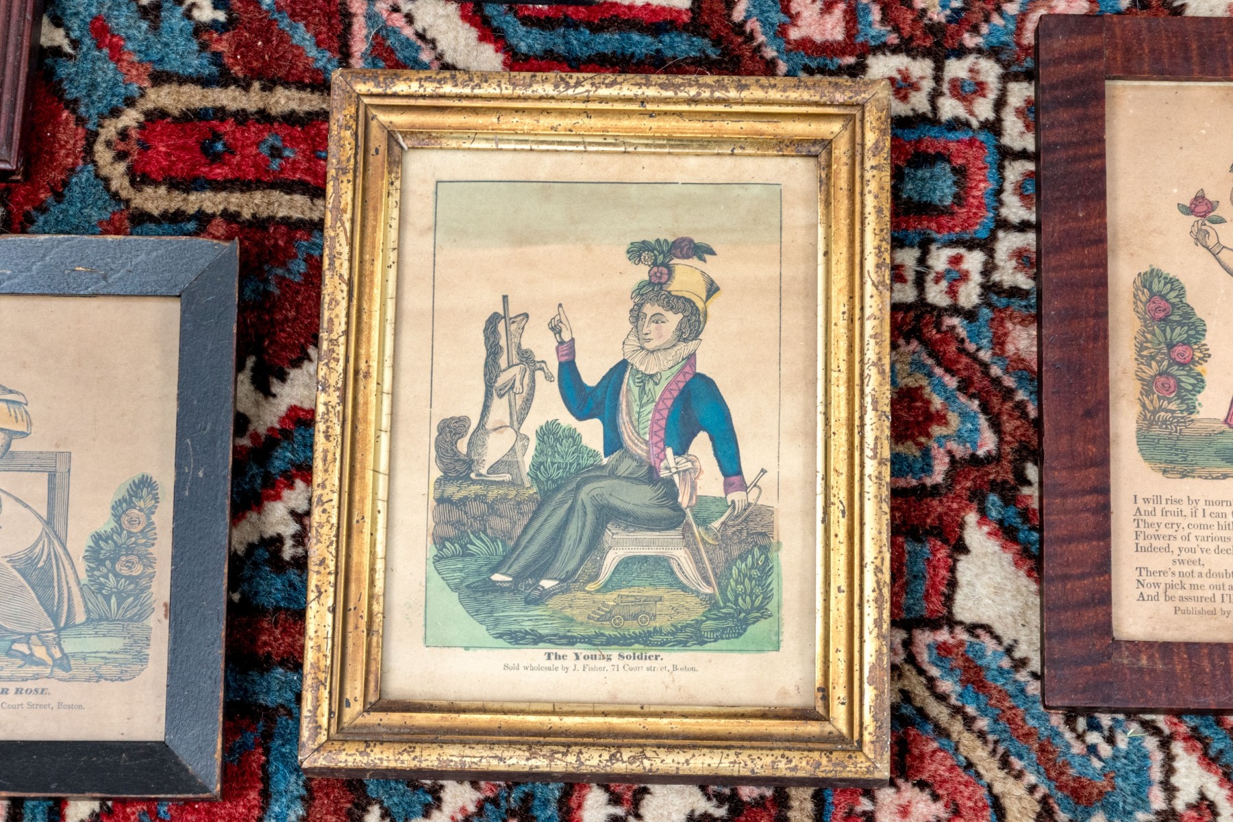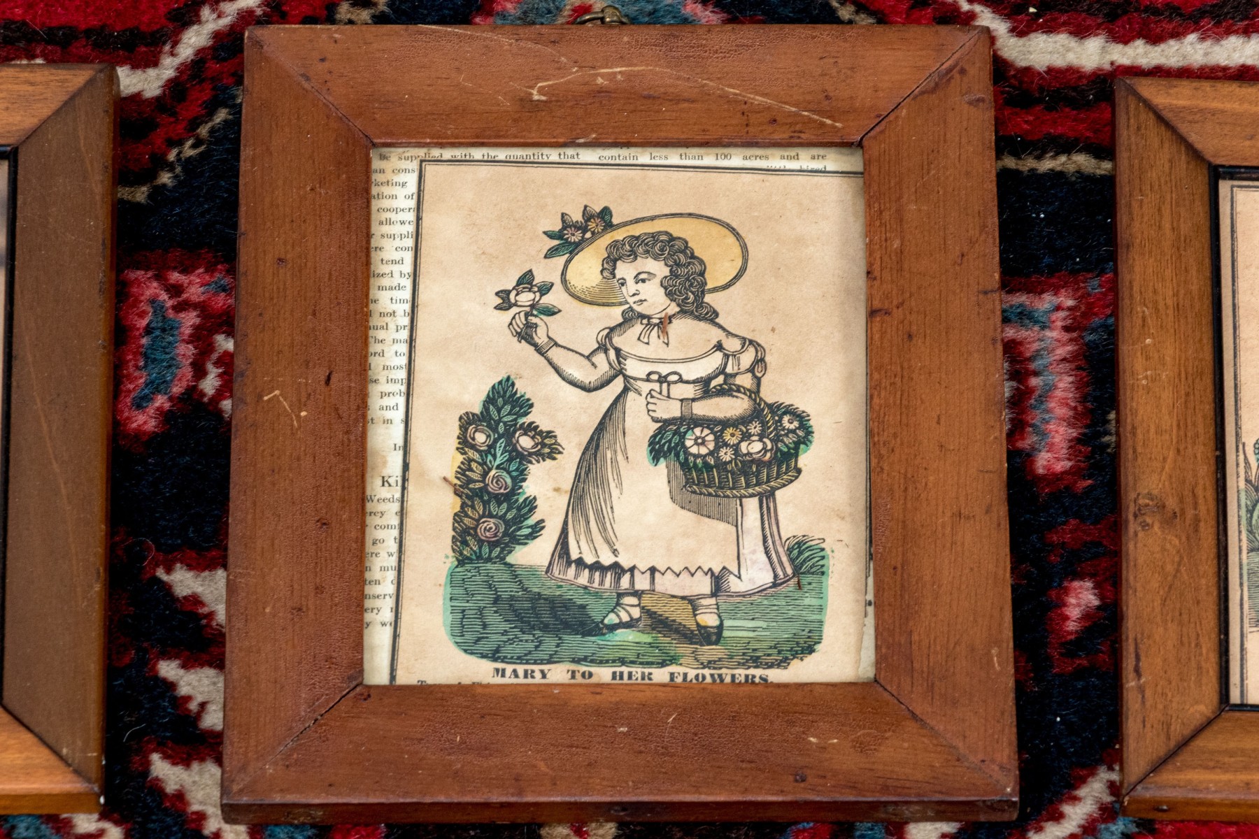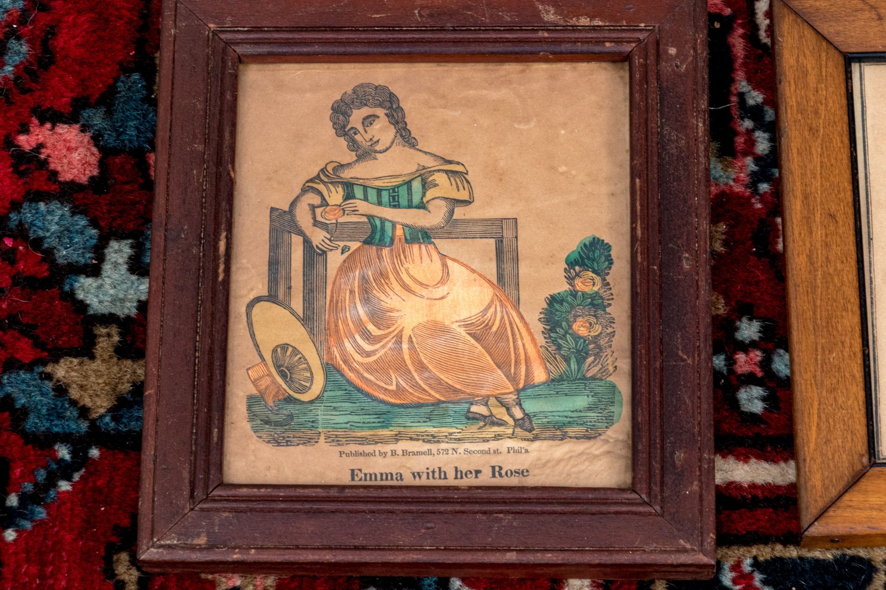 An excellent assortment of twenty-four antique hand-colored prints depicting various figures in fashionable attire, all framed. most all are hand colored.
