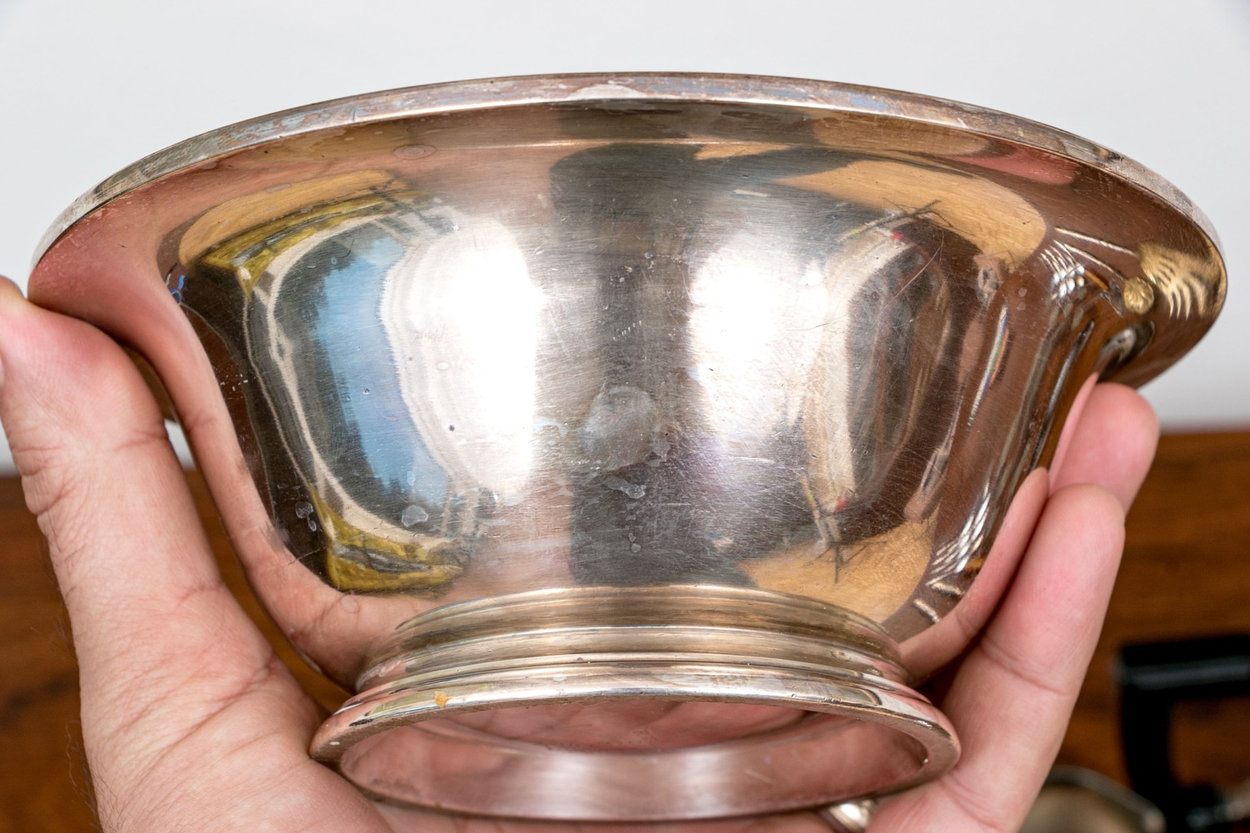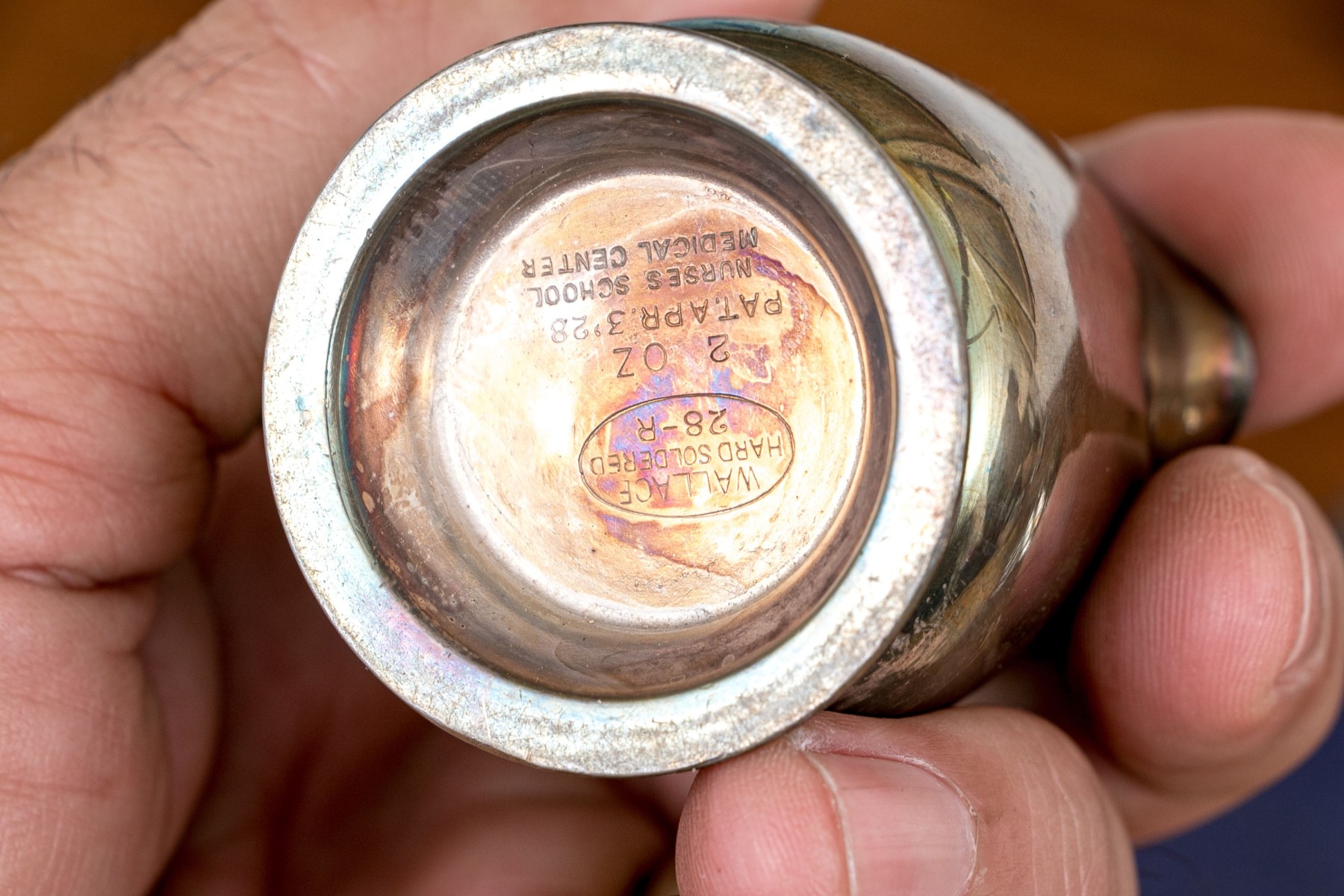 - An R. Wallace marked silver soldered footed bowl