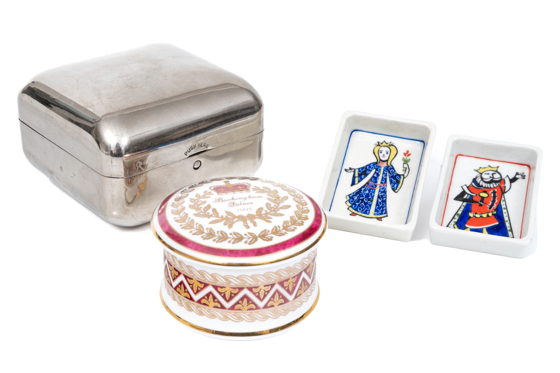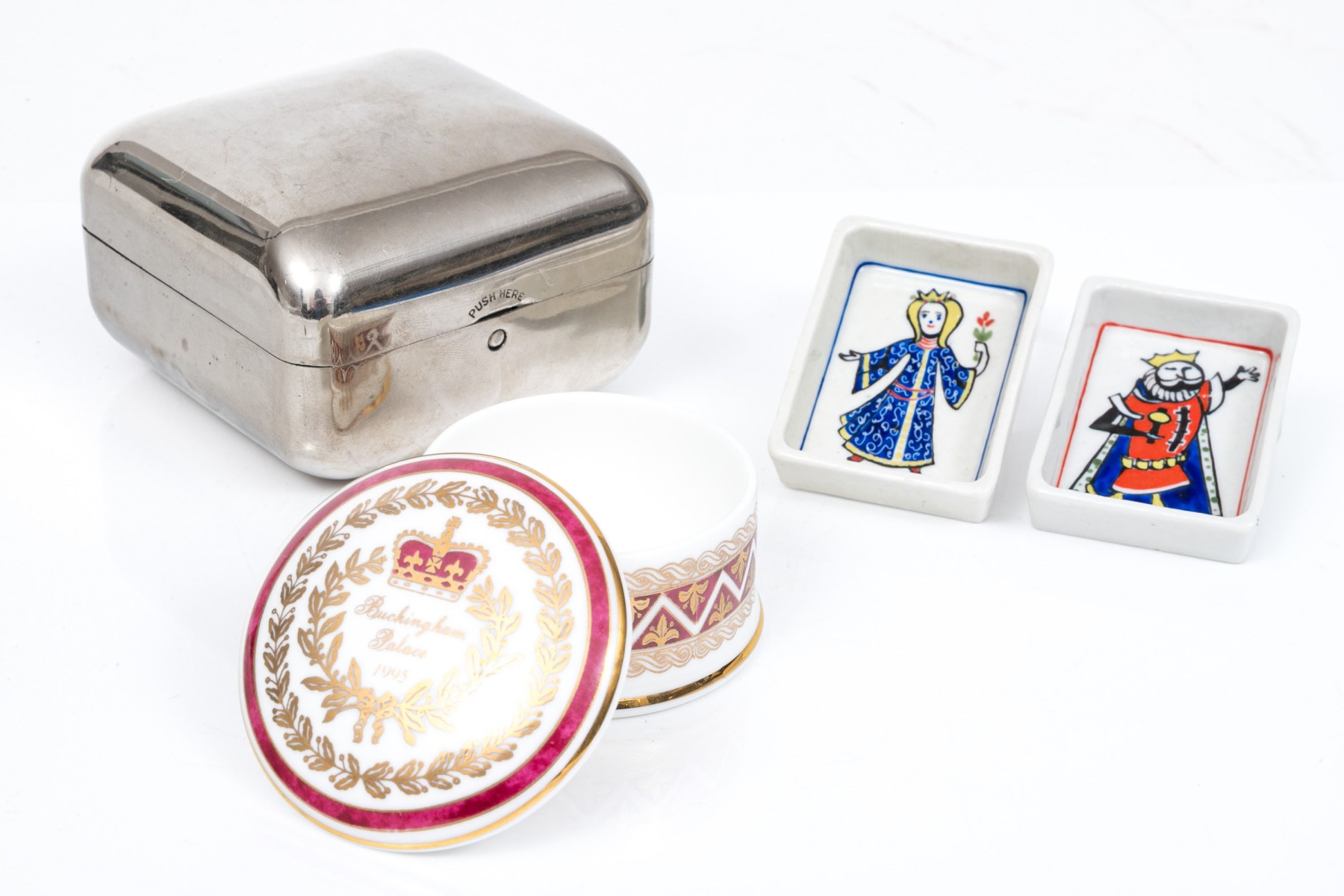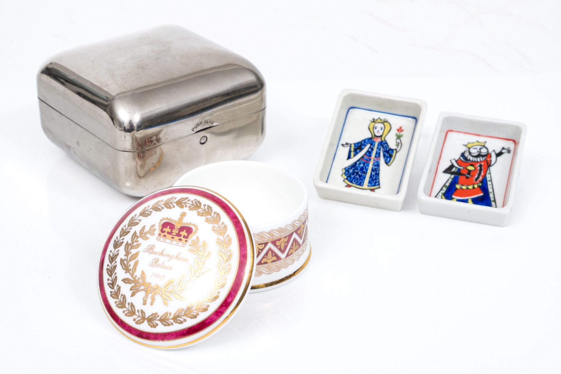 Collection of porcelain dishes and boxes with stainless steel boxes.