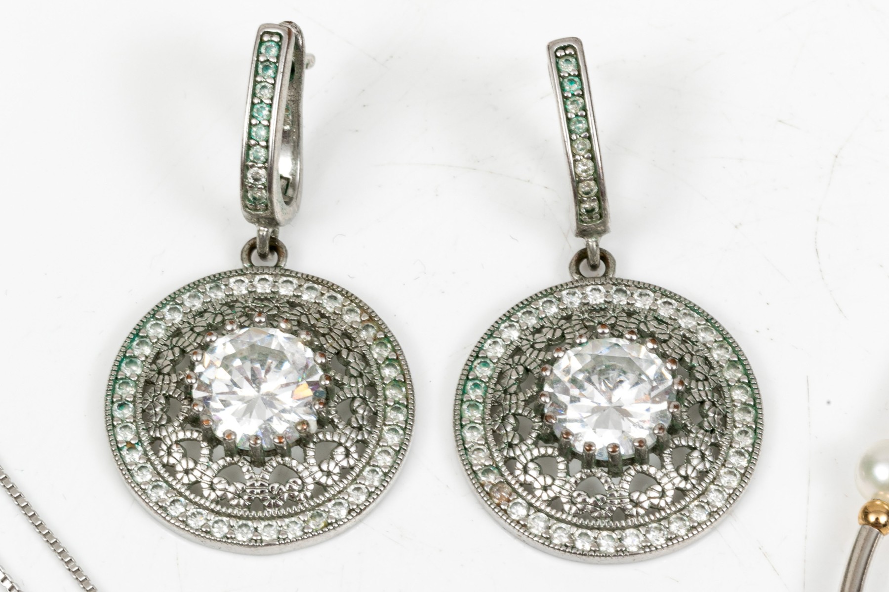 Collection of sterling silver jewelry. Necklaces, bracelet, earrings and rings. Ring sizes 5, 7 and 9.