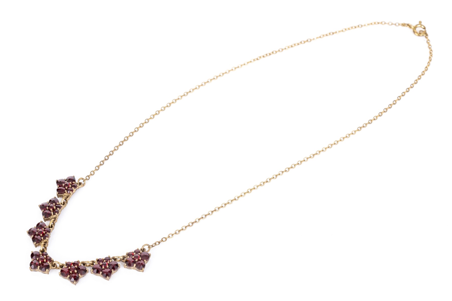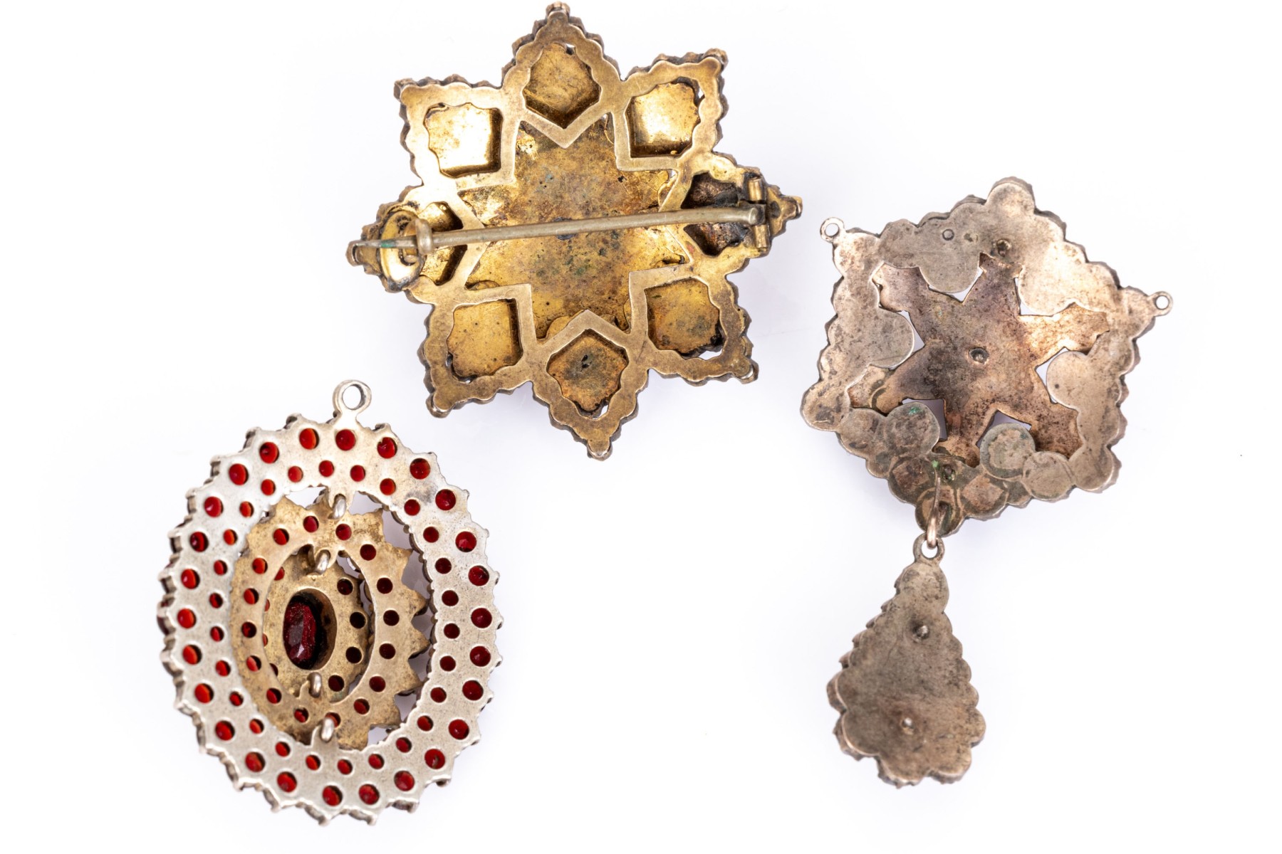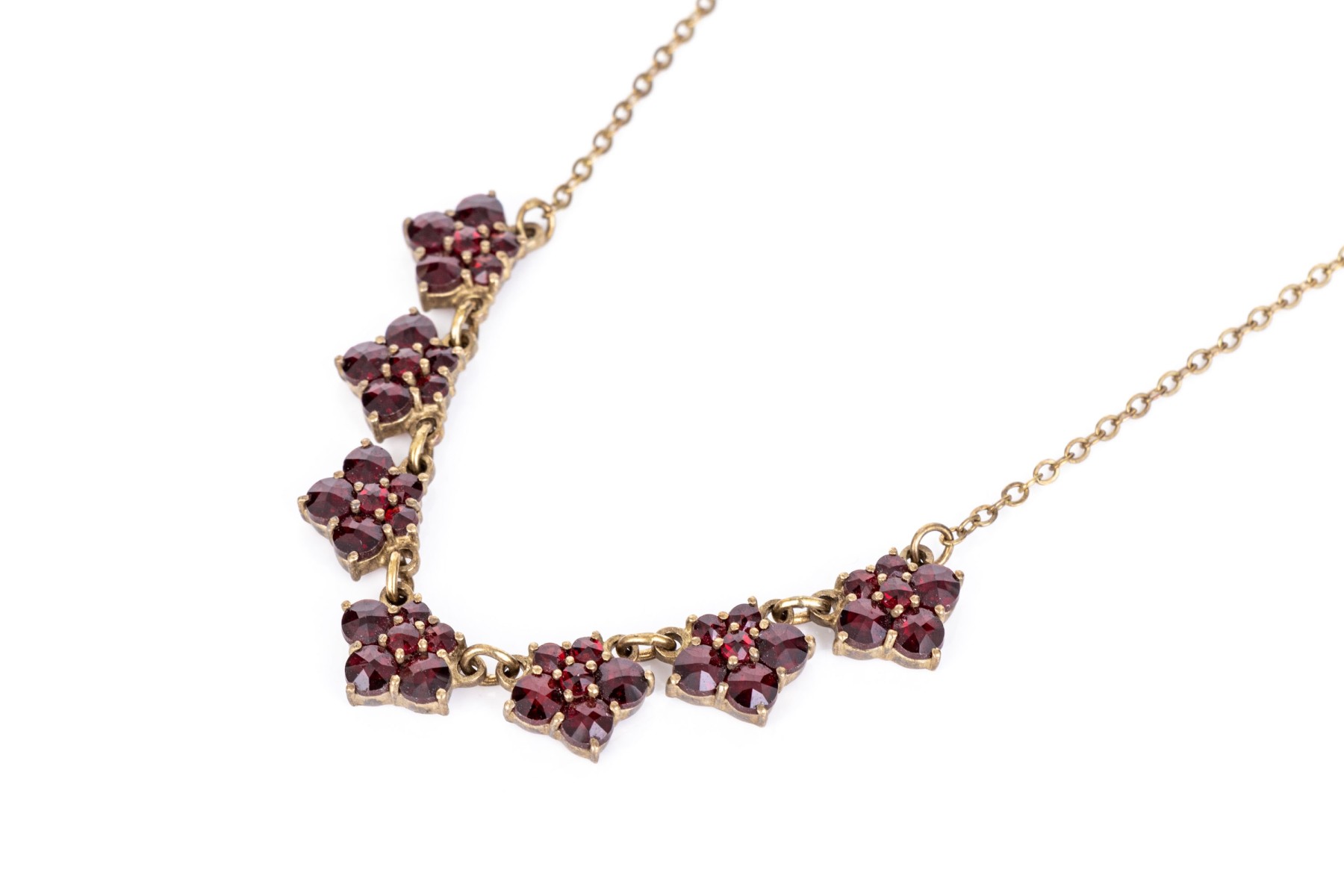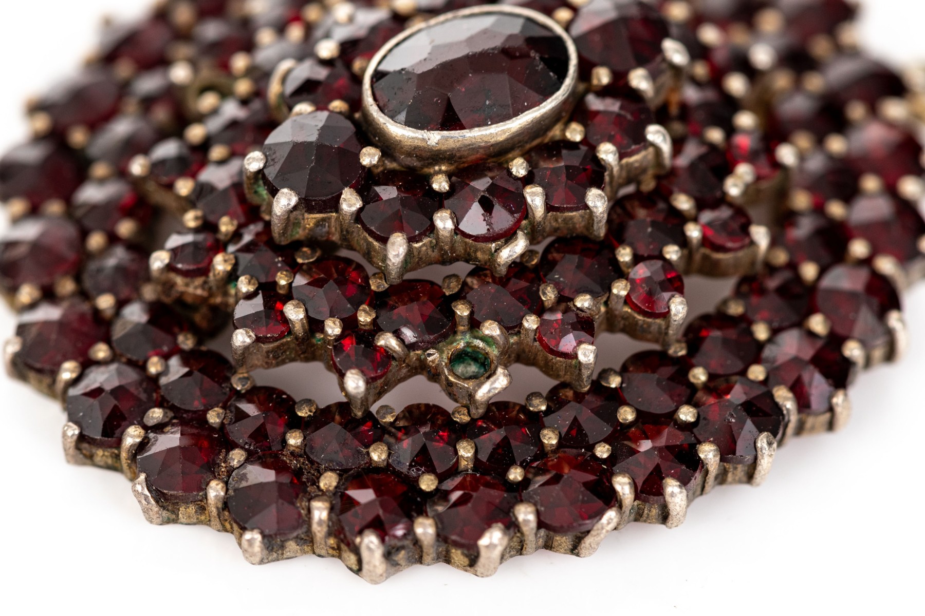 Collection of vintage burgundy Czech crystal motif jewelry pieces, gold filled and silverplated