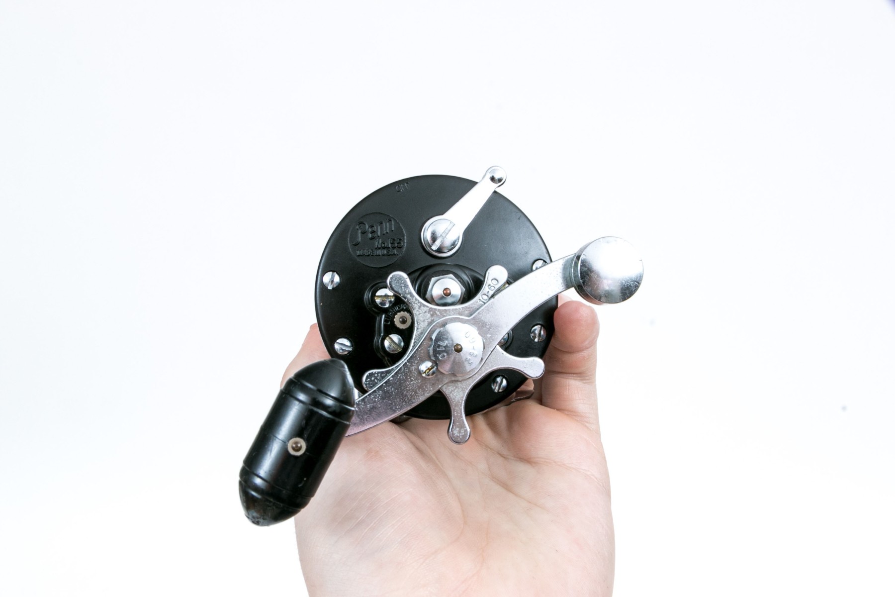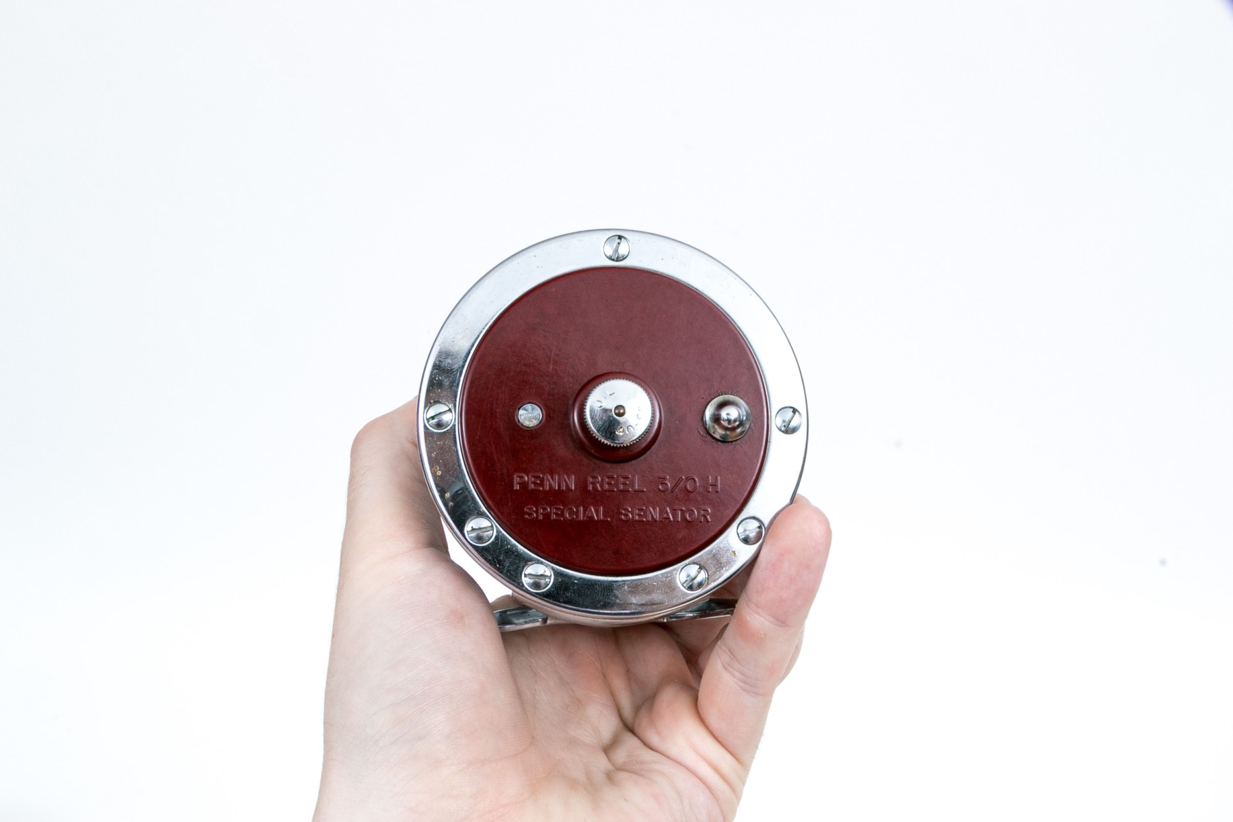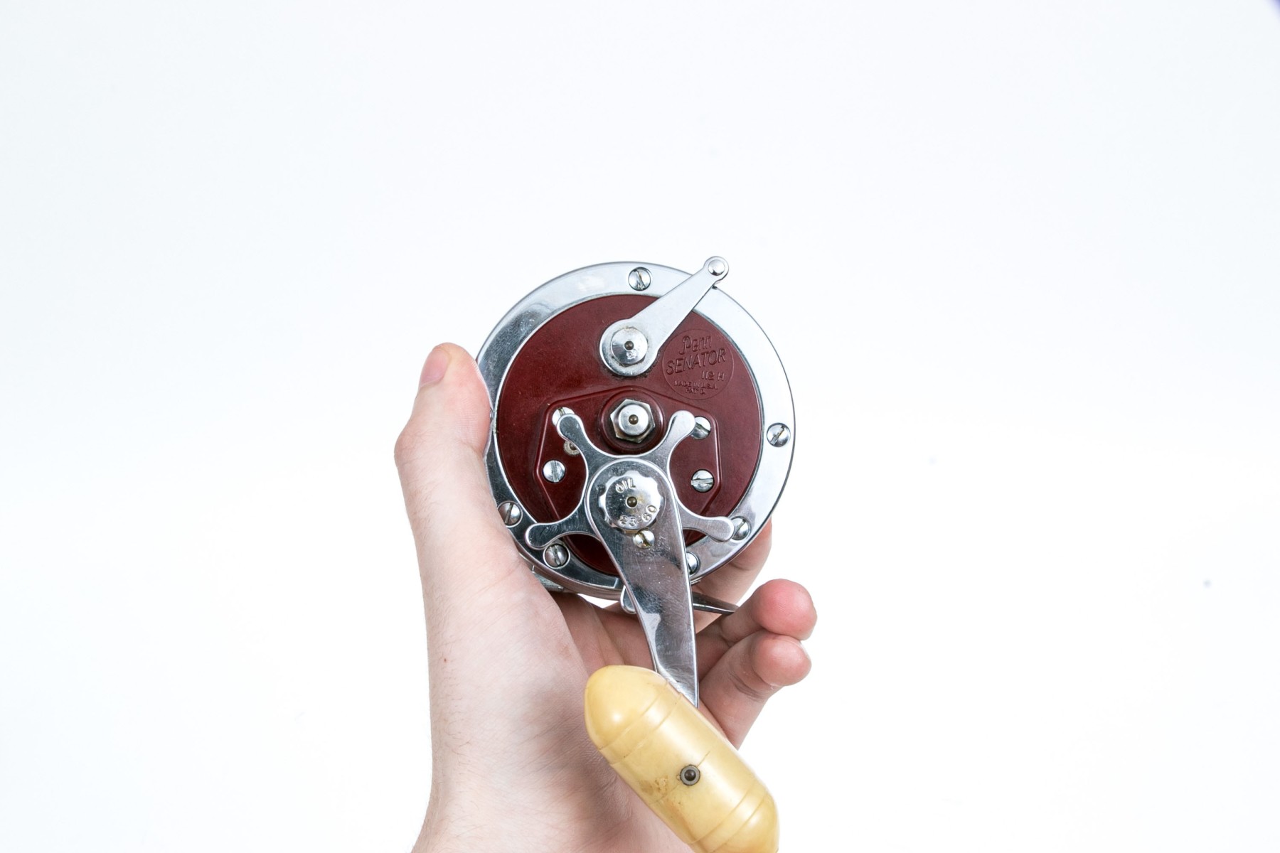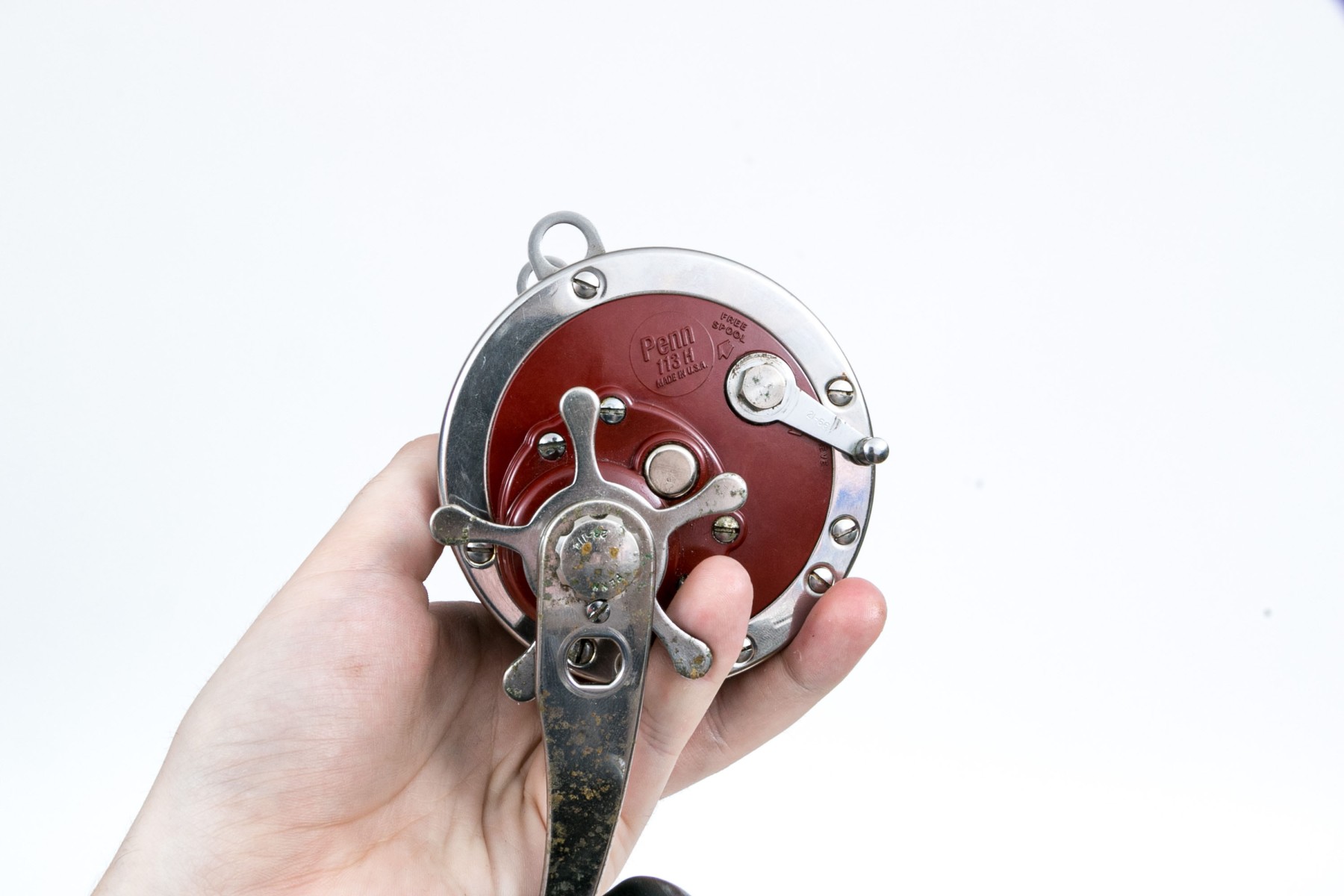 Collection of conventional fishing reels. Penn JigMaster, Penn No155, Ocean City 113. Two Penn Senator 112H and 113H.