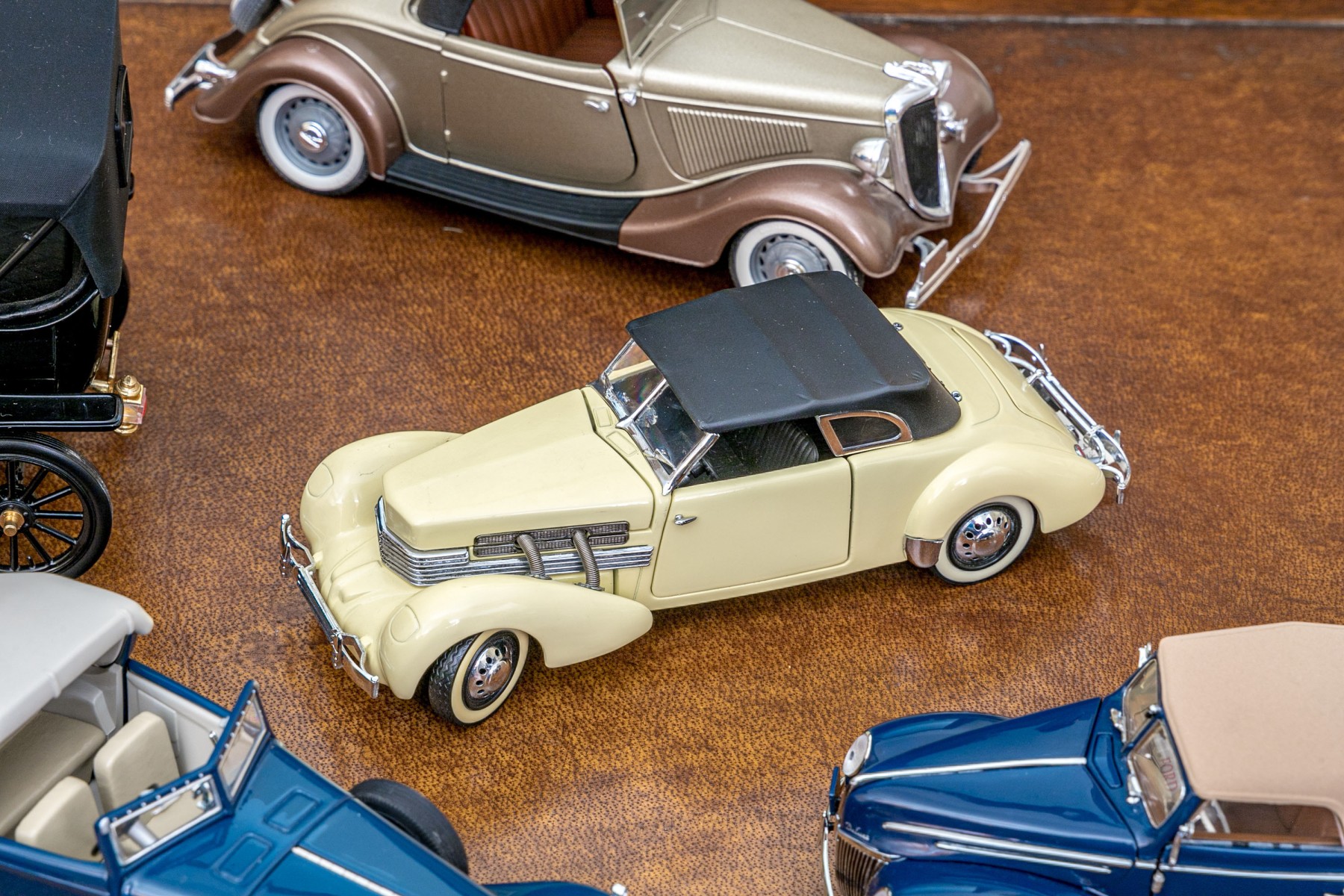 A wonderful variety of twelve vintage die-cast toy cars. Some are marked Franklin Mint and a couple are marked Chinese.