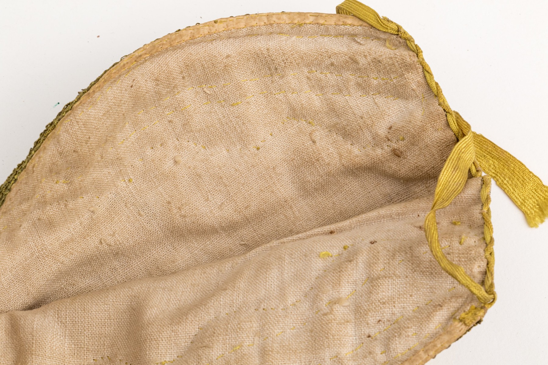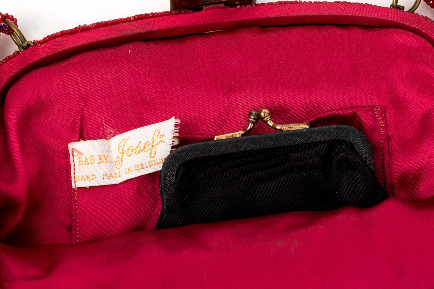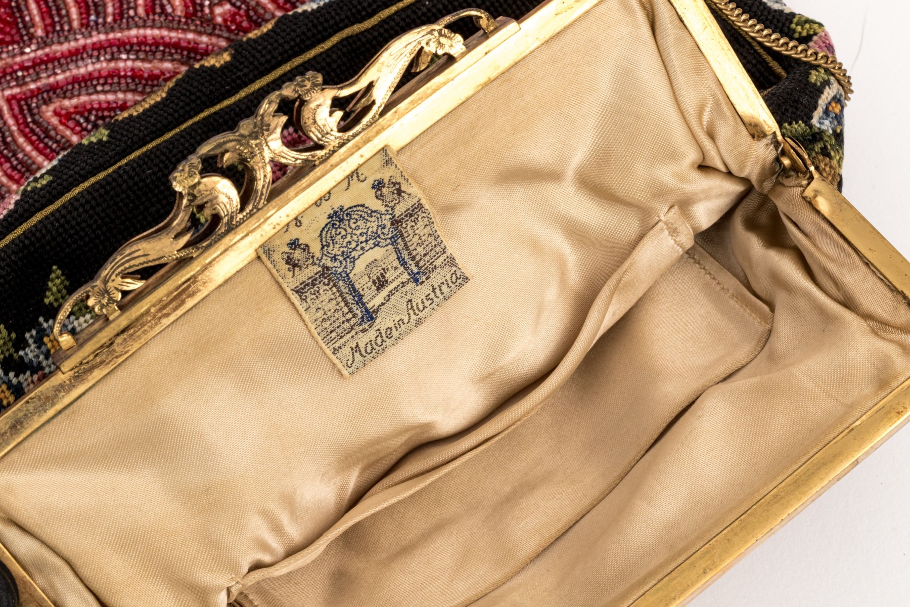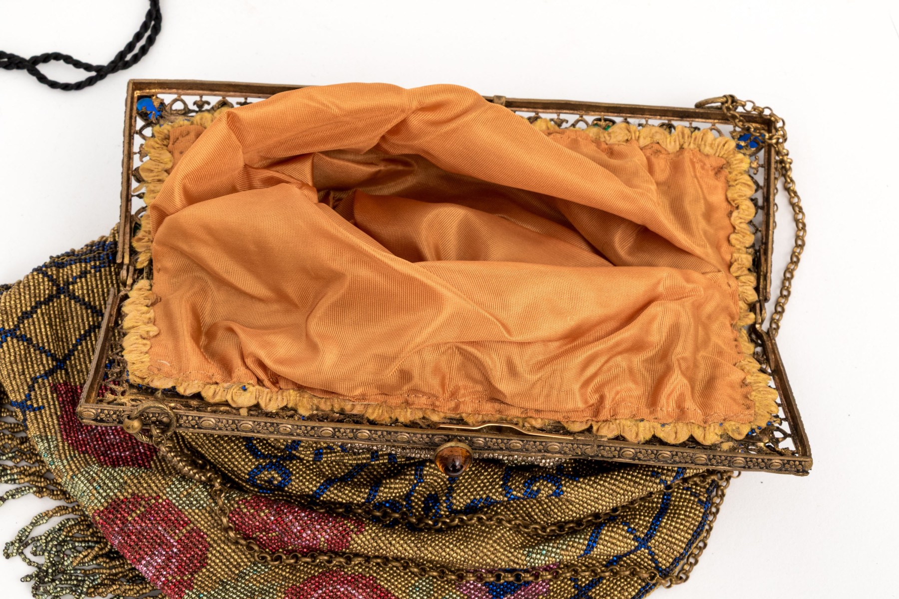a stone embellished beaded bag with fringe and chain, lined, boxed
