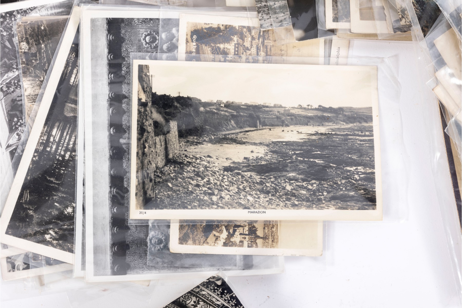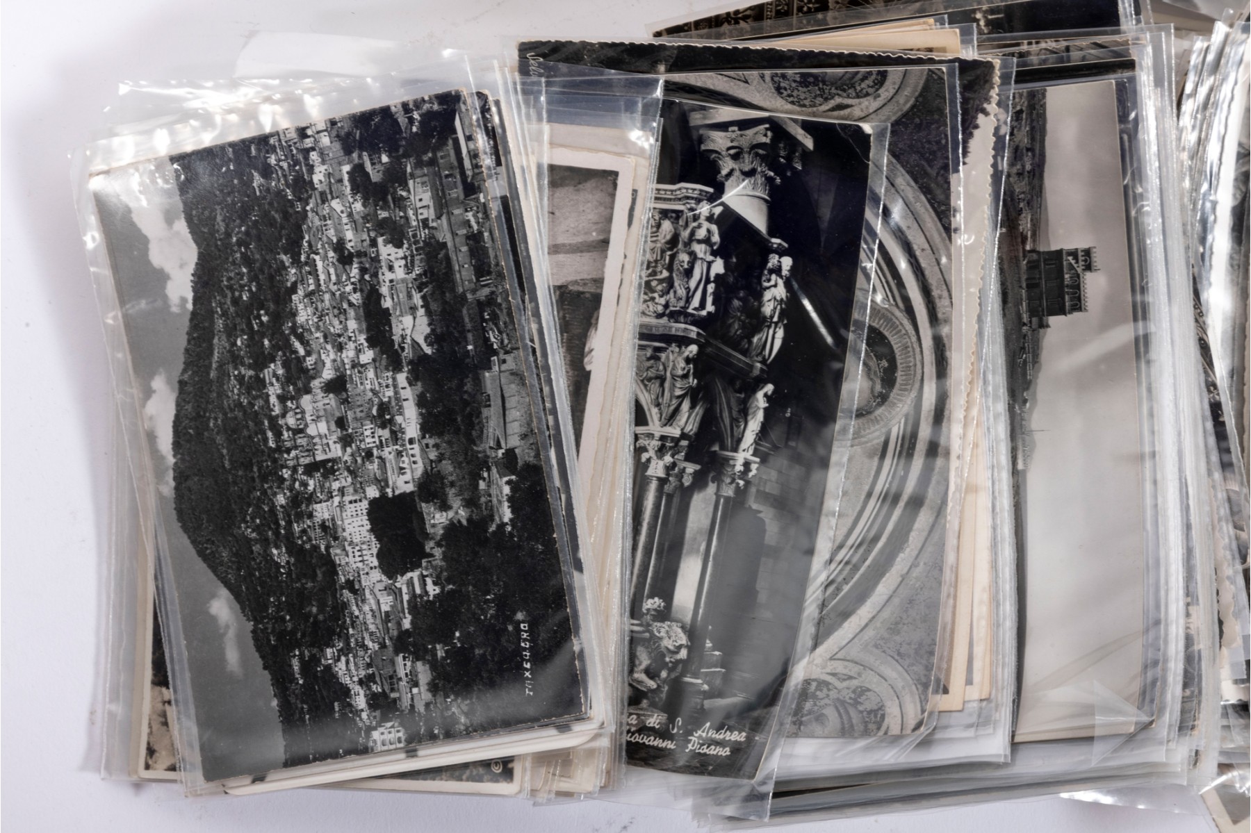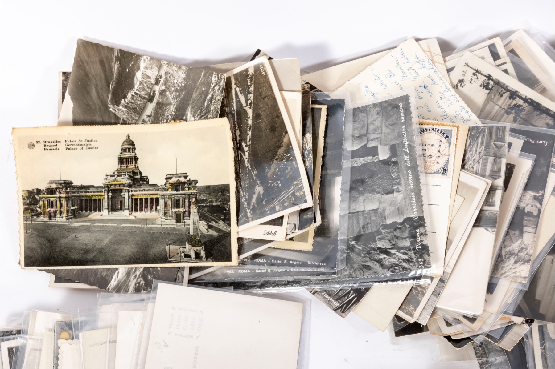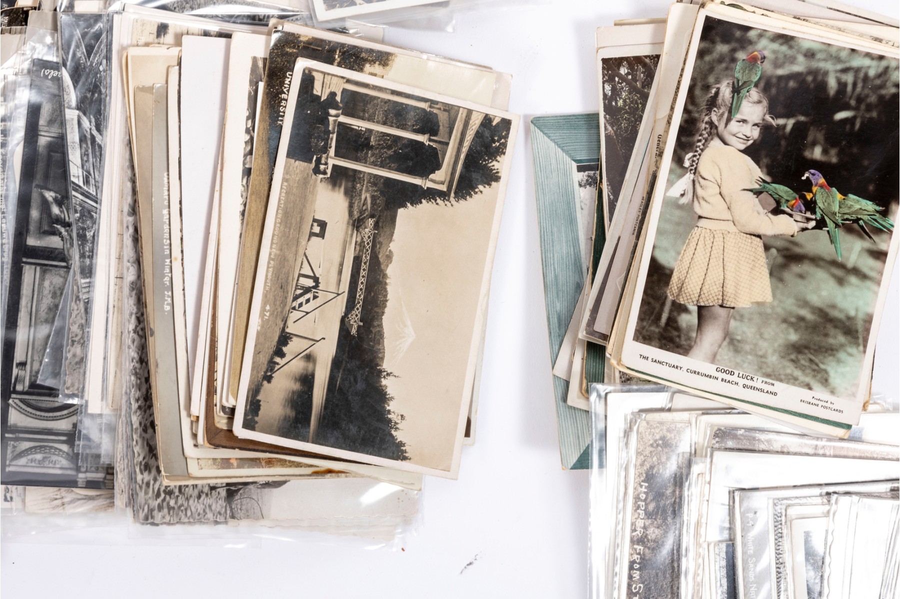 A large collection of vintage post cards showcasing a multitude of photo locales in black & white. Contents as shown, see photos for details.
