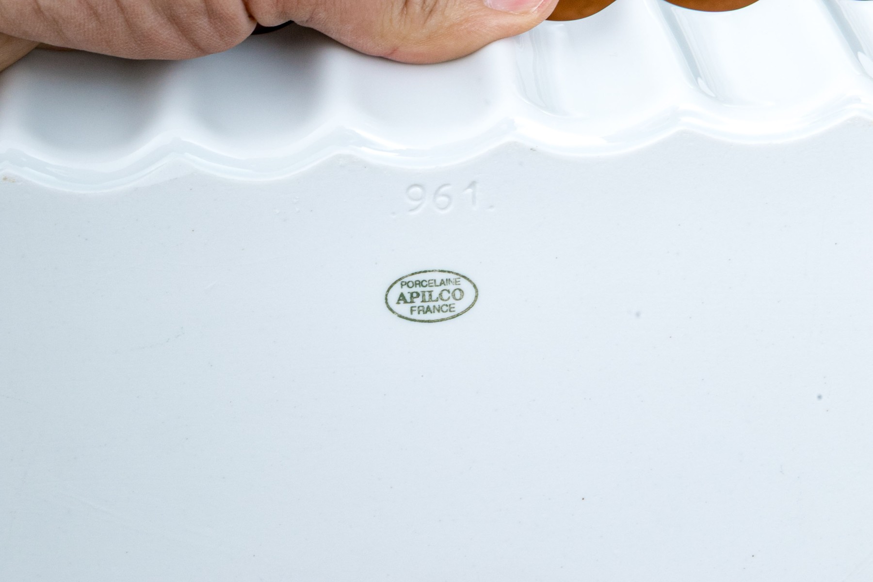French Apilco rectangular bowl with scalloped rim: 13 3/4" L x 9 1/2" W x 2" H