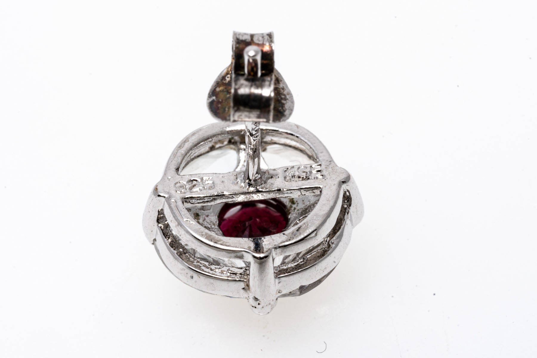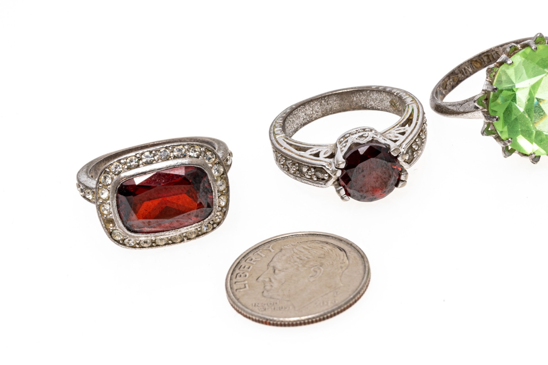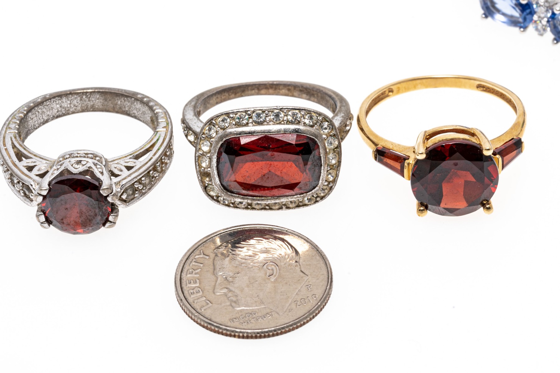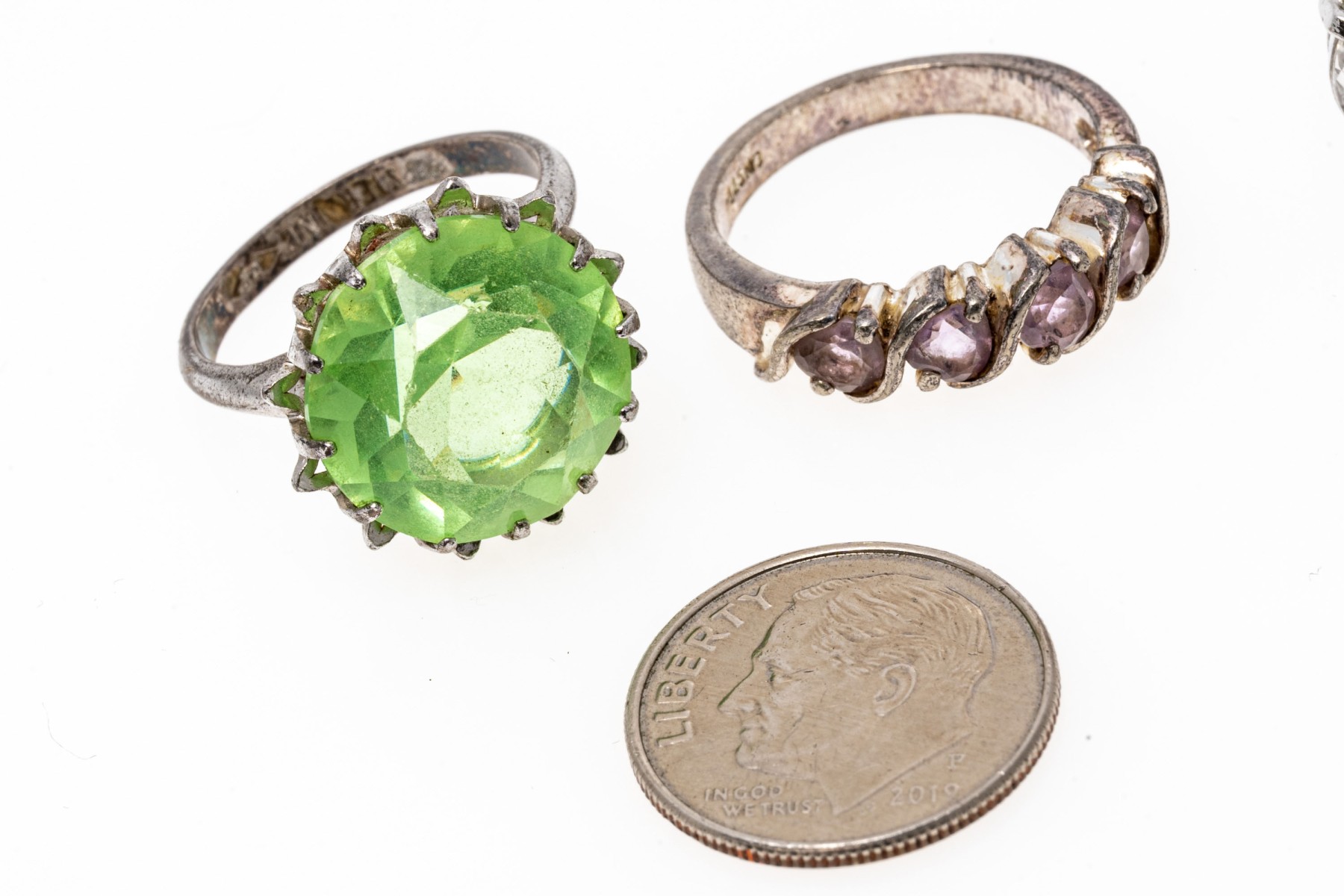 Collection of sterling silver jewelry set with colorful cubic zirconia stones. Necklace, bracelet, earrings and rings. Ring sizes 6, 6.75, 7 and 6.